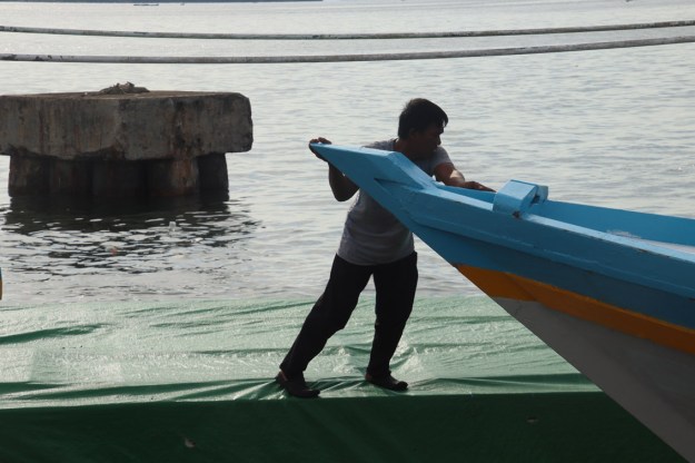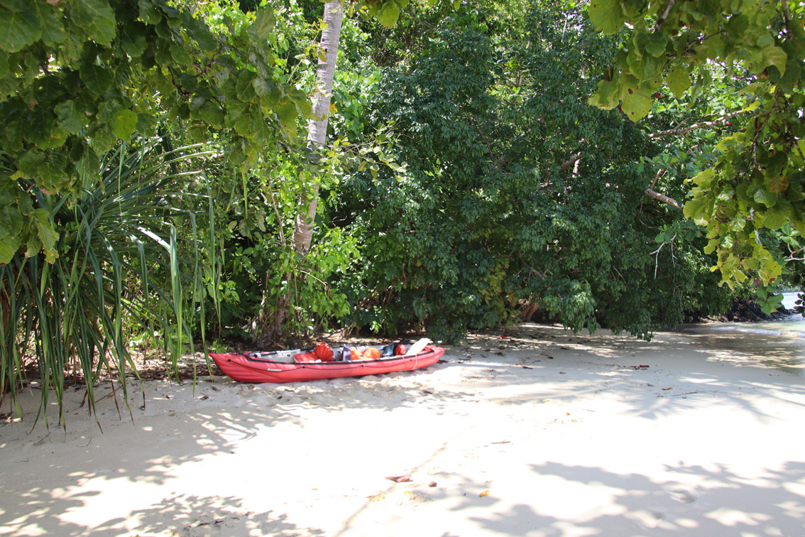 Pour explorer les alentours en respectant le calme de cette belle nature nous gonflons le canoë (réparé à Fulaga) , il fuit encore un peu mais pour les eaux plates de la baie et des mangroves çà devrait le faire.