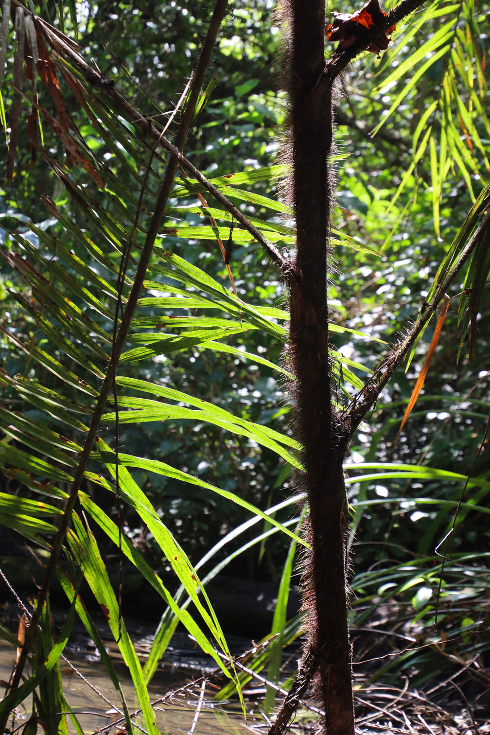 Nous sommes entourés de toutes sortes d’oiseaux. On les entend tout proche, parfois on en aperçoit quelques uns qui se faufilent dans la frondaisons, on entrevoit ici quelque chose qui ressemble à un pigeon , là à un perroquet, là encore un corbeau ou un merle on voit même un échassier genre héron passer au dessus des arbres oiseaux mais pas moyen d’en photographier un seul, ils sont trop rapides et le feuillage trop dense .