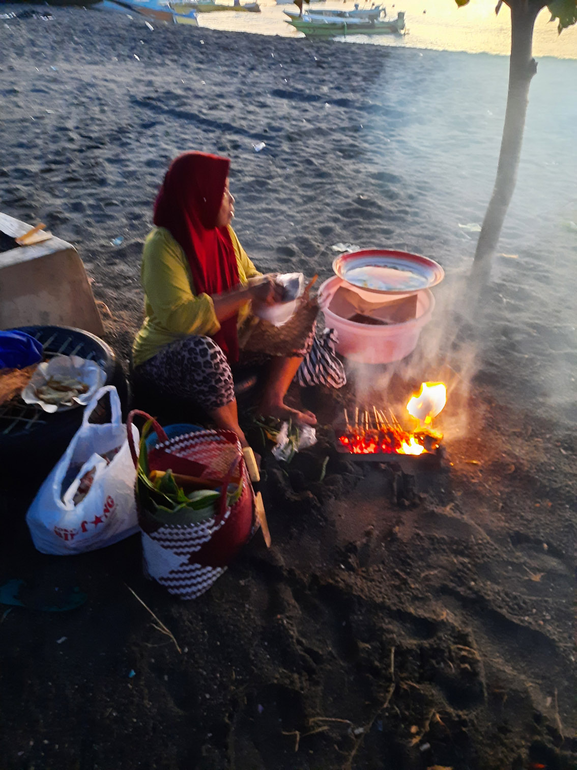 On fait aussi une journée courses à Mataram la capitale de l’île de Lombok, essentiellement pour acheter des fournitures pour les travaux mais aussi de l’alimentation et accessoirement une courte visite aux artisans qui travaillent le bambou. La route entre Tanjung et Mataram traverse une zone de forêt montagneuse et passe un col d’où on a un superbe point de vue sur la vallée et la côte. L’endroit est peuplé de très nombreux singes en quête de fruits ou de friandises jetés par les passants.