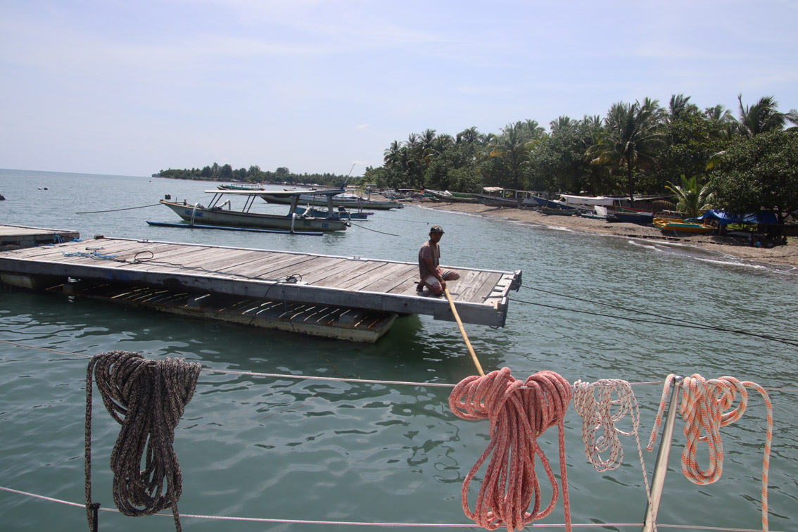Pendant ce temps les rotules de safran on été commandées chez le fournisseur en France. Il doit les fabriquer spécialement avant de les expédier mais bon, il ne faut que quelques minutes pour les remettre en place, du moment qu’elles arrivent avant qu’on ait fini tout le reste, pas de soucis. On avait aussi commandé un nouvel IridiumGo en Angleterre pour remplacer le précédent détruit par le gonflement de sa batterie, il est arrivé en moins de 10 jours et on a payé la taxe d’importation directement au chauffeur d’ojek venu le livrer espérons que çà se passe aussi bien pour les rotules!