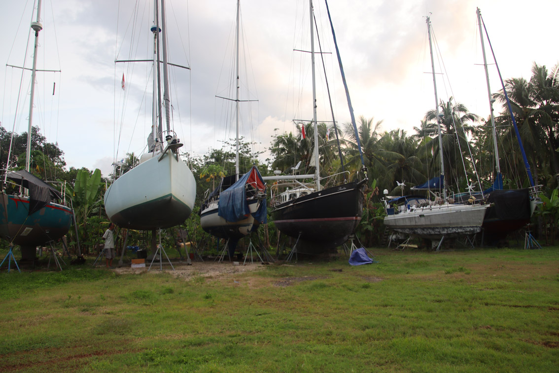 La Marina est aussi un hôtel, le parking à bateau est une grande pelouse entouré de cocotier et à la fin de la journée de travail on peut aller nager à la plage avant de se doucher et d’aller manger au restaurant de l’hôtel. Un cadre beaucoup plus agréable et relaxant que tous les chantiers ou nous avons pu passer en Europe ou dans le pacifique.