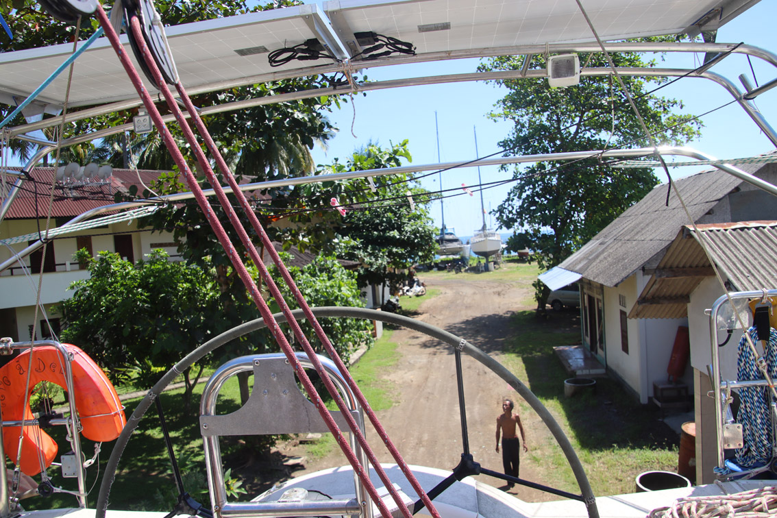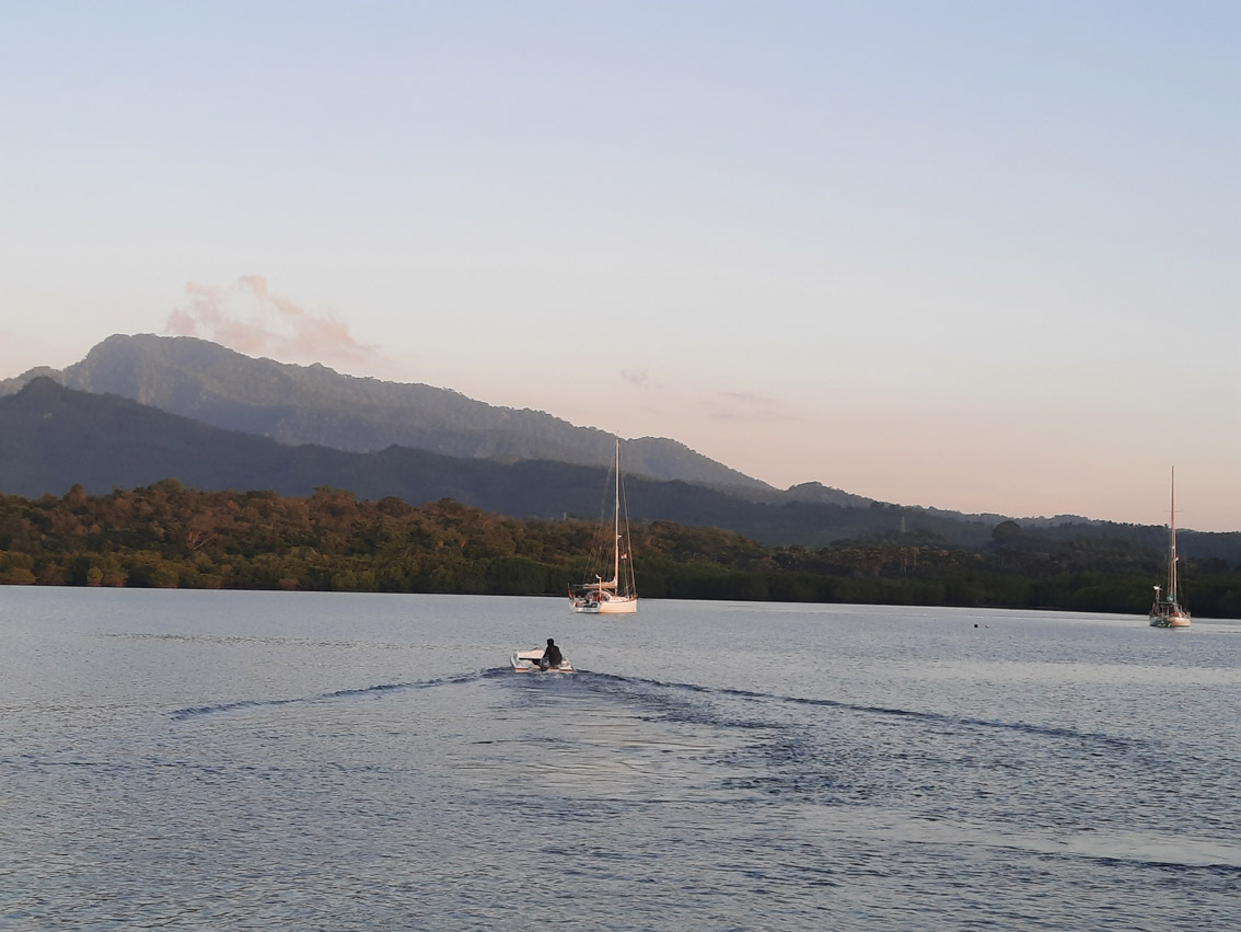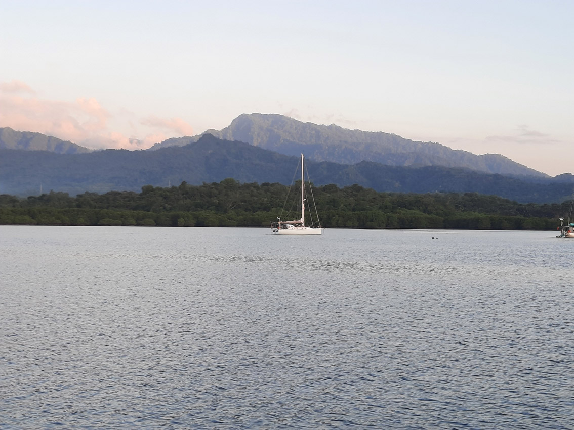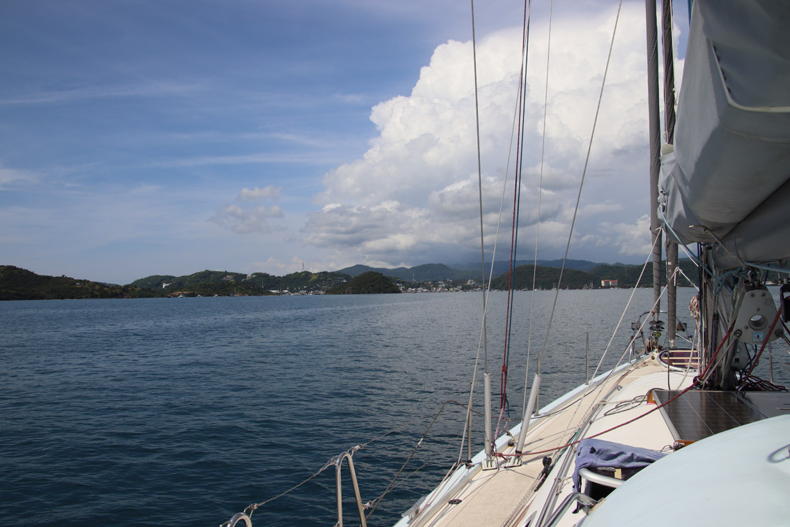Vendredi 20/5, 4:00 du matin nous sommes réveillés par un orage très violent, la foudre frappe à quelques mètres du bateau mais la pluie diluvienne nous permet de remplir nos réservoirs avant de s’arrêter aussi vite qu’elle était venue. Puisque nous sommes debout de bonne heure, autant y aller. Il n’est pas 7 heures quand nous franchissons la passe.
