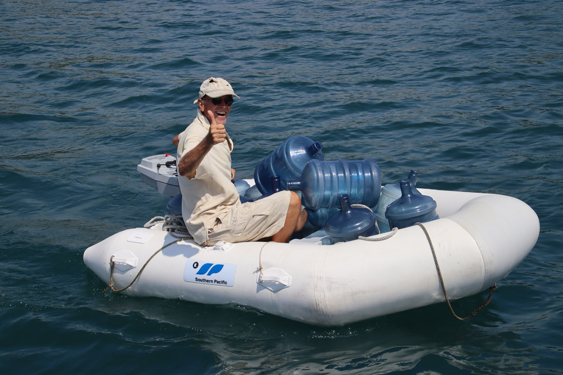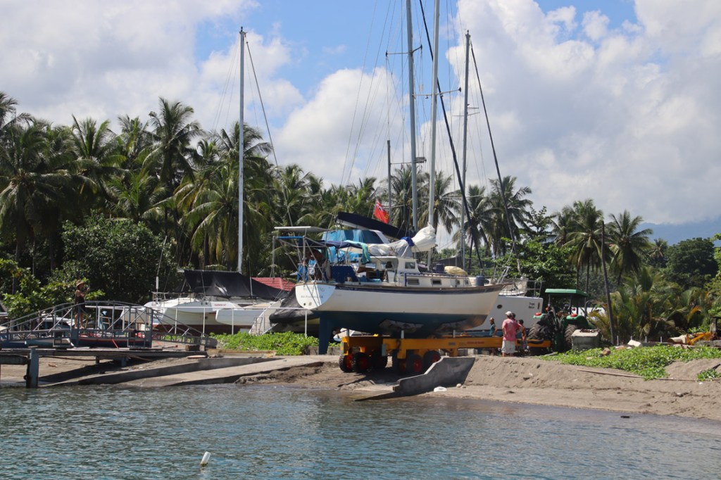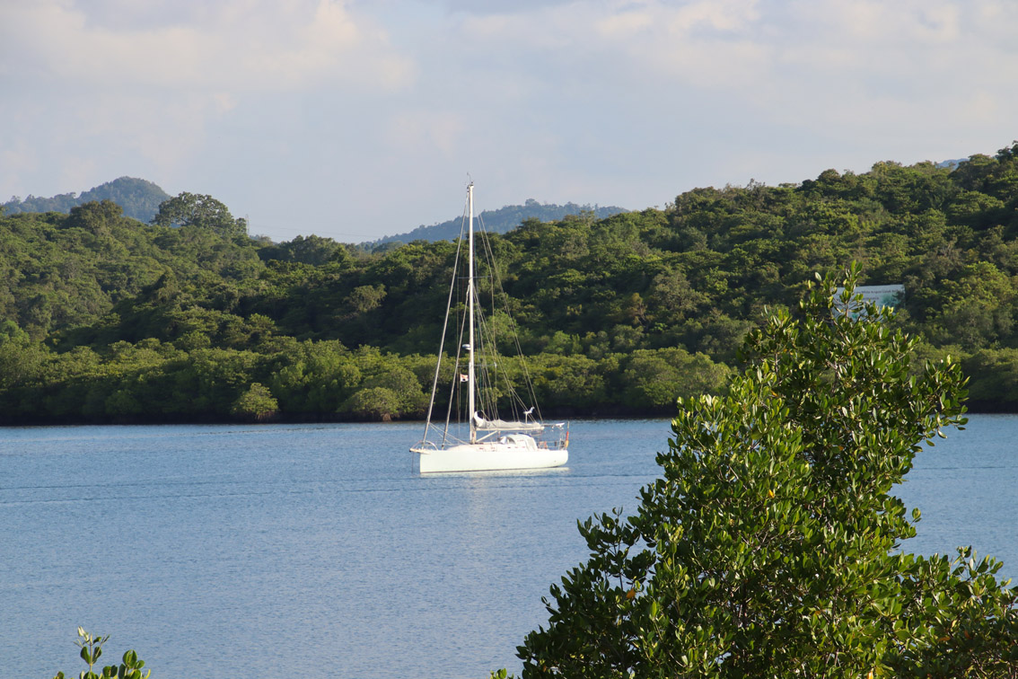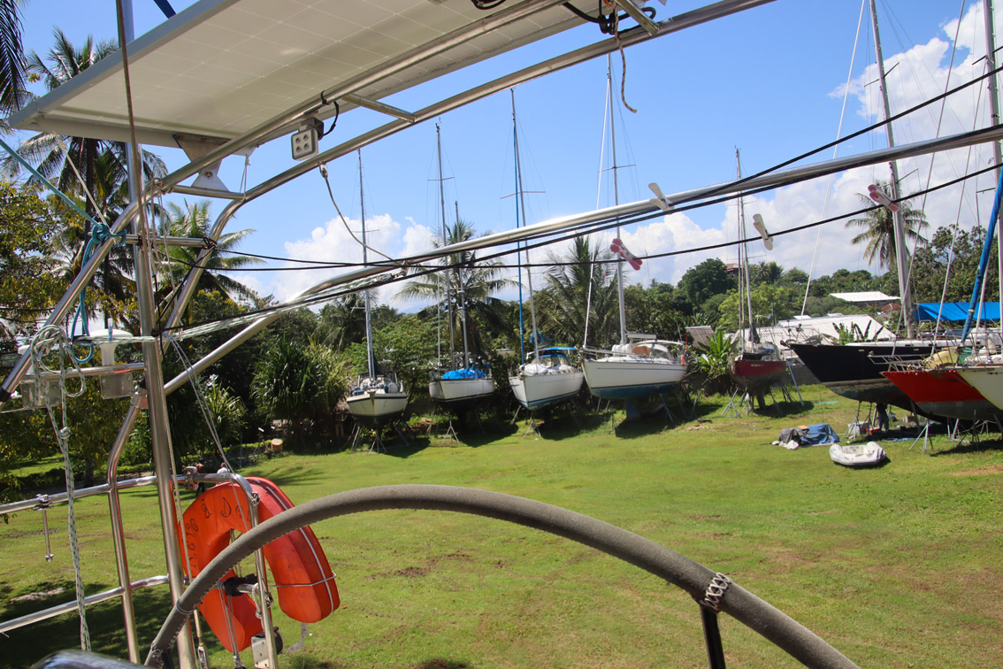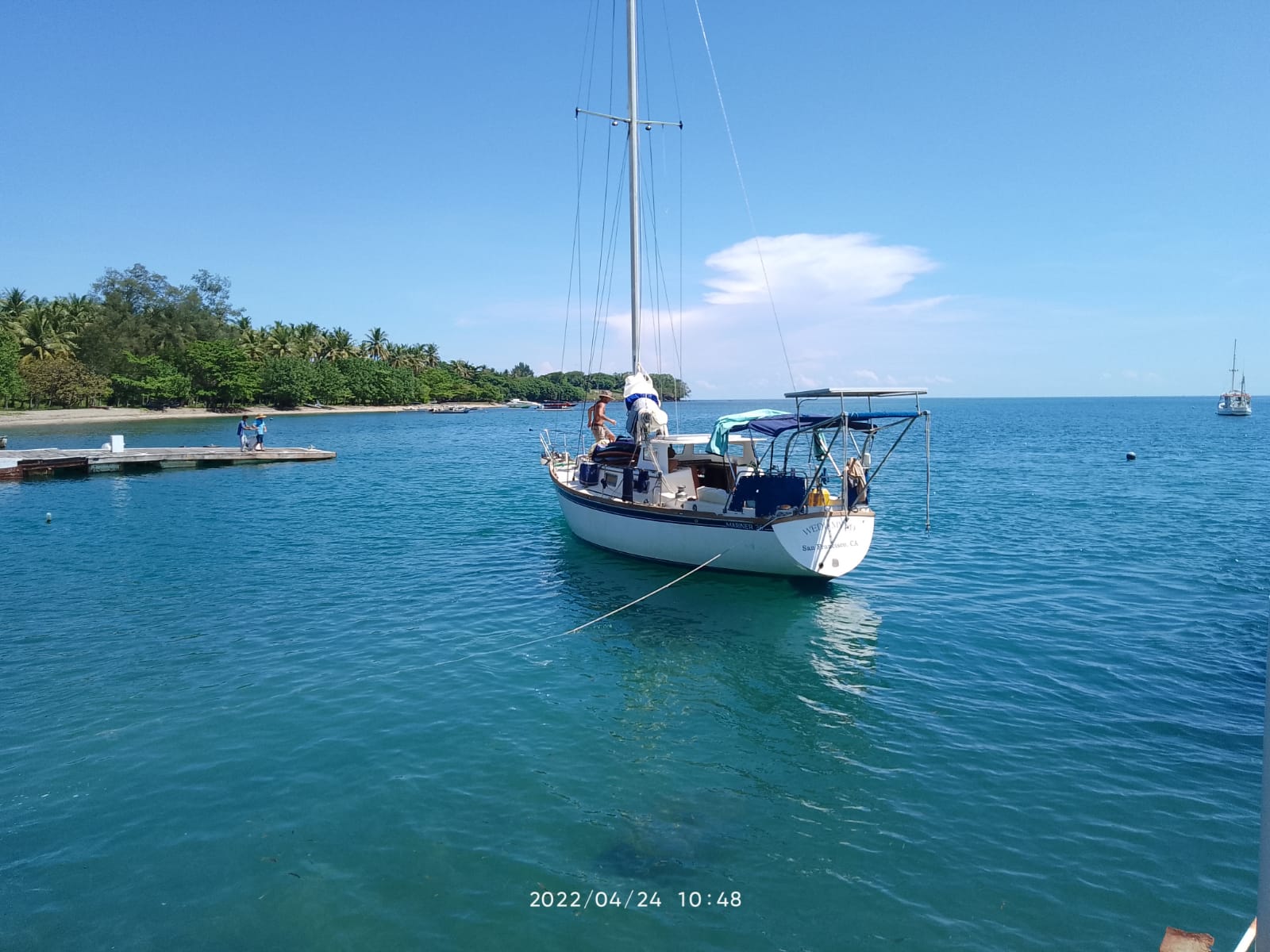 Vendredi 20/5, 4:00 du matin nous sommes réveillés par un orage très violent, la foudre frappe à quelques mètres du bateau mais la pluie diluvienne nous permet de remplir nos réservoirs avant de s’arrêter aussi vite qu’elle était venue. Puisque nous sommes debout de bonne heure, autant y aller. Il n’est pas 7 heures quand nous franchissons la passe.