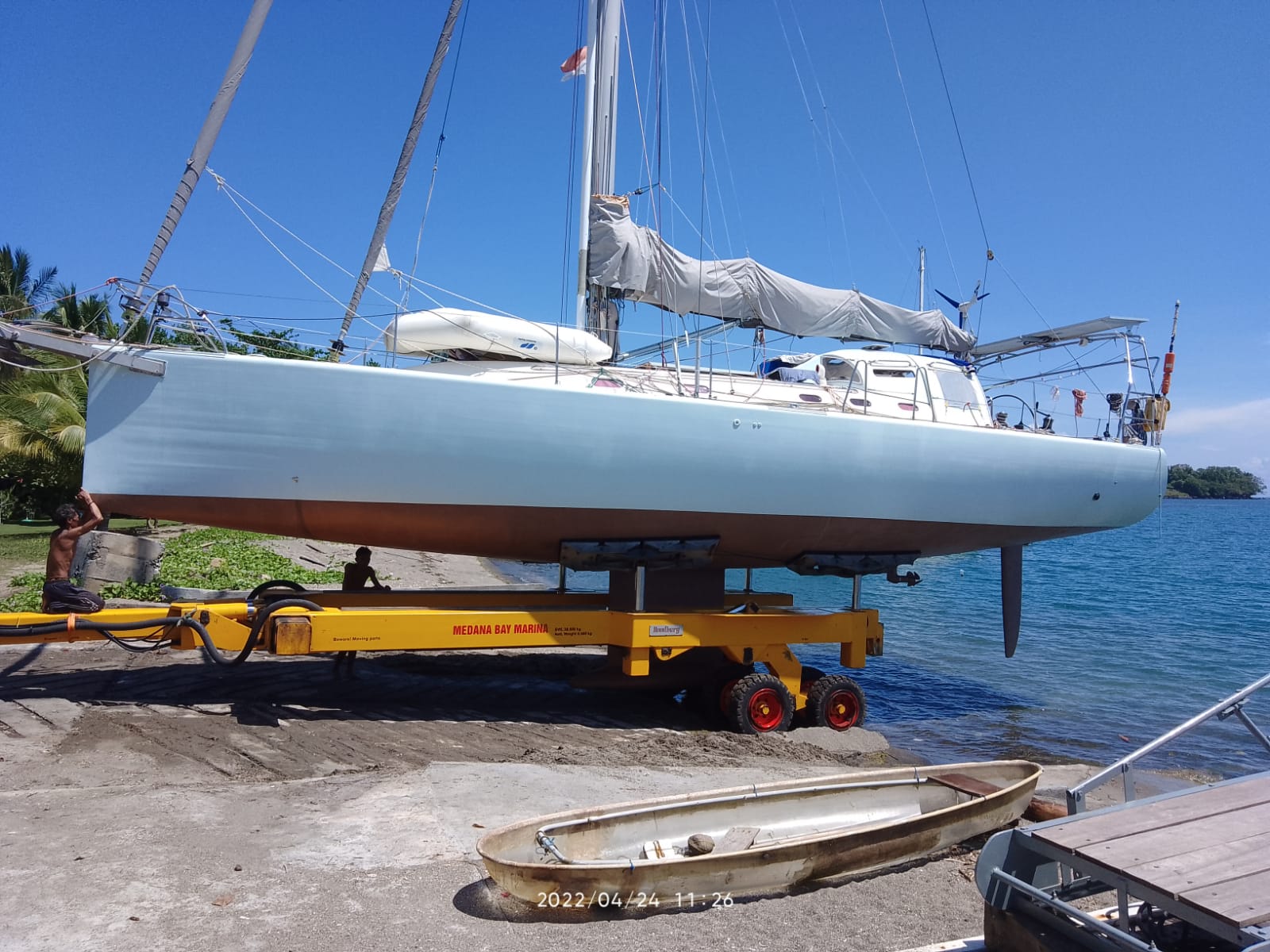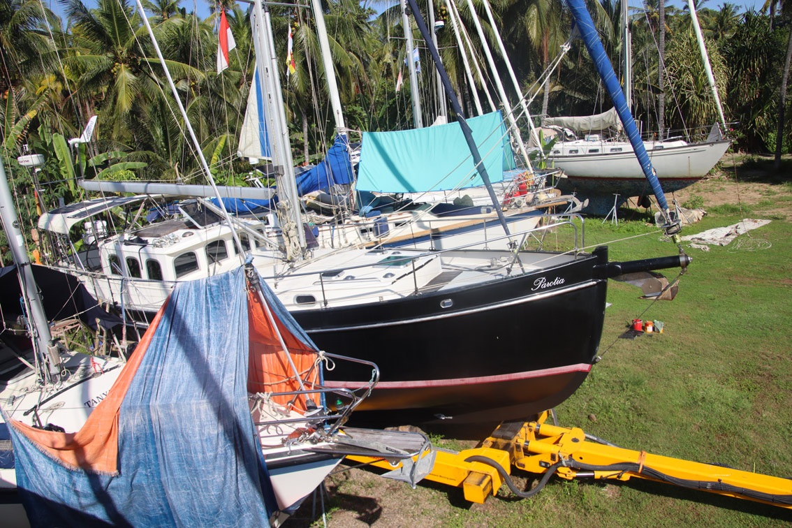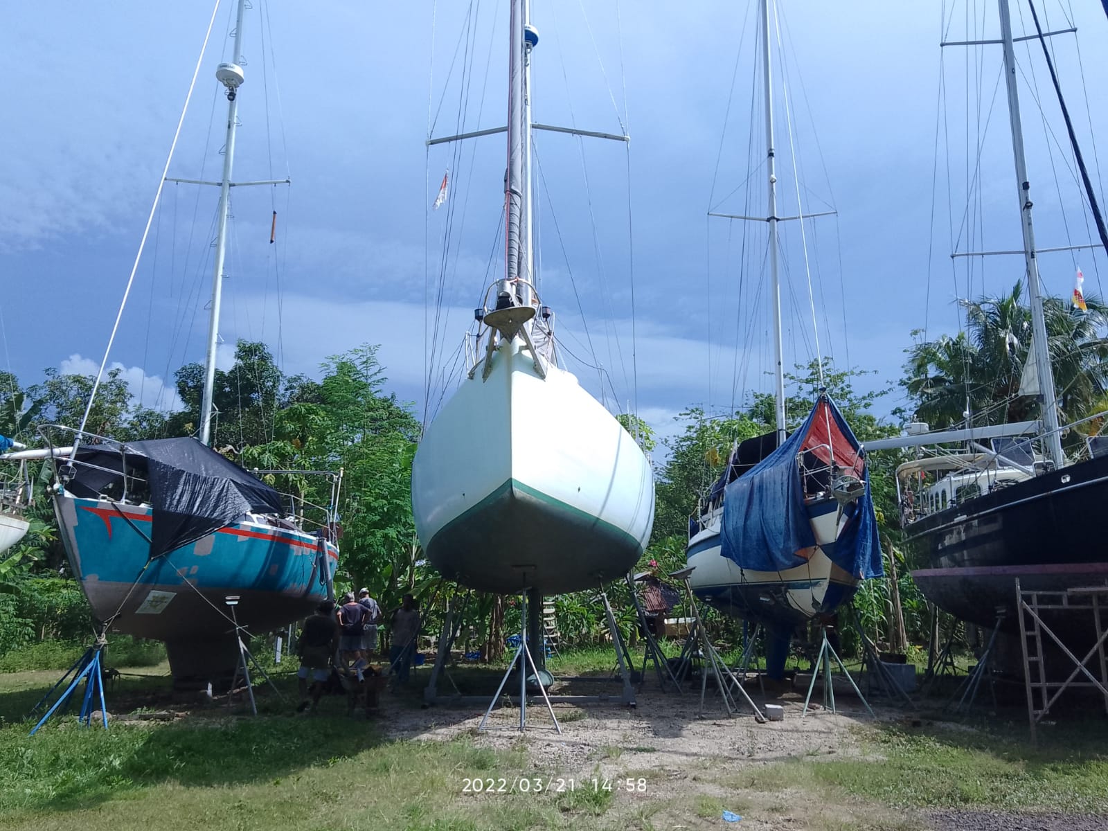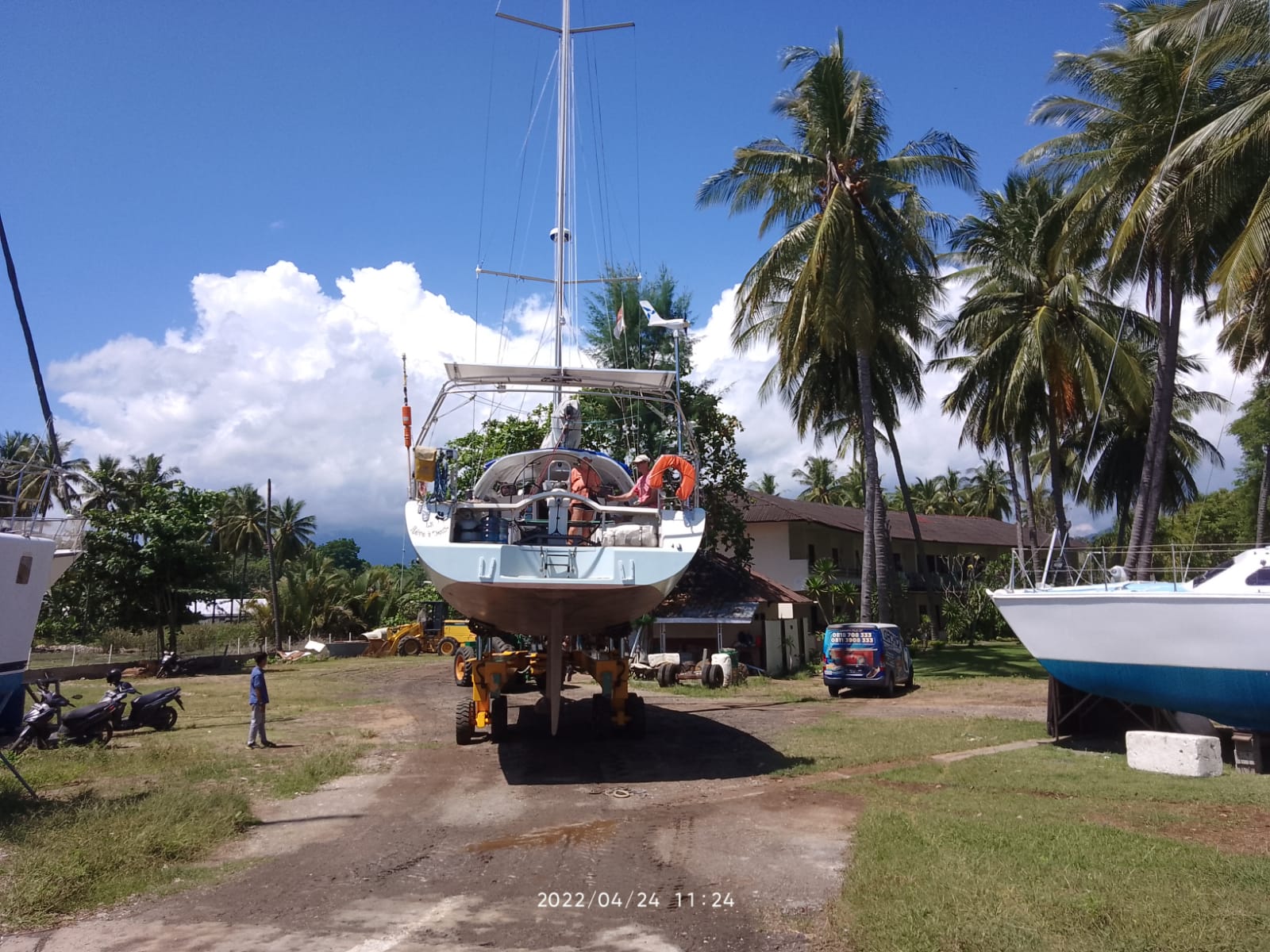 Quelques courses chez Pepito un super marché de type occidental relativement bien achalandé mais sans plus (pour l’Indonésie jusqu’à présent la palme revient toujours au Saga de Sorong) plus pour voir ce qu’ils avaient que par réel besoin. L’après midi nous vidons les jerrycans de gasoil qui nous restent dans le reservoir et allons à terre pour les remplir. Aucun problème pour trouver une voiture et un chauffeur mais les stations du coin ne vendent que du Solar (bio diesel à l’huile de palme, très mauvaise combustion) ou au mieux du DEXlite (jaune foncé et très gras) il faut aller jusqu’à Seririt à 15 km de là pour trouver du DEX (le carburant diesel le plus propre disponible dans le pays, équivalent de notre Euro 4) Nous en ramenons 165 litres il fait déjà bien nuit quand le dernier Jerrycan est rangé au fond du coffre. Ce sera toujours çà de moins à faire avant notre grand départ le mois prochain.