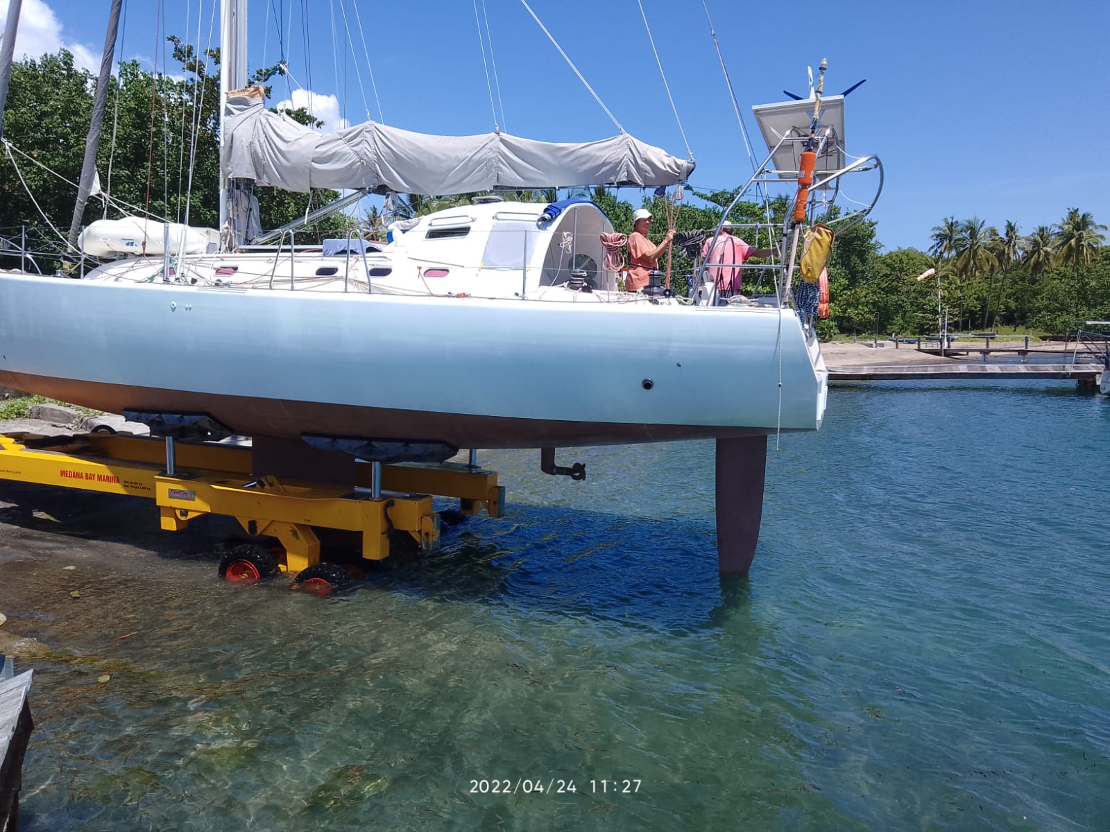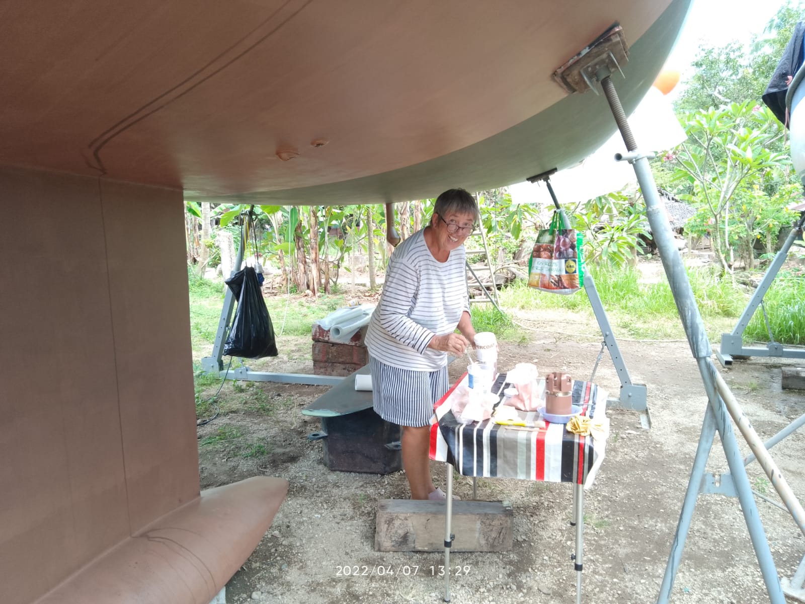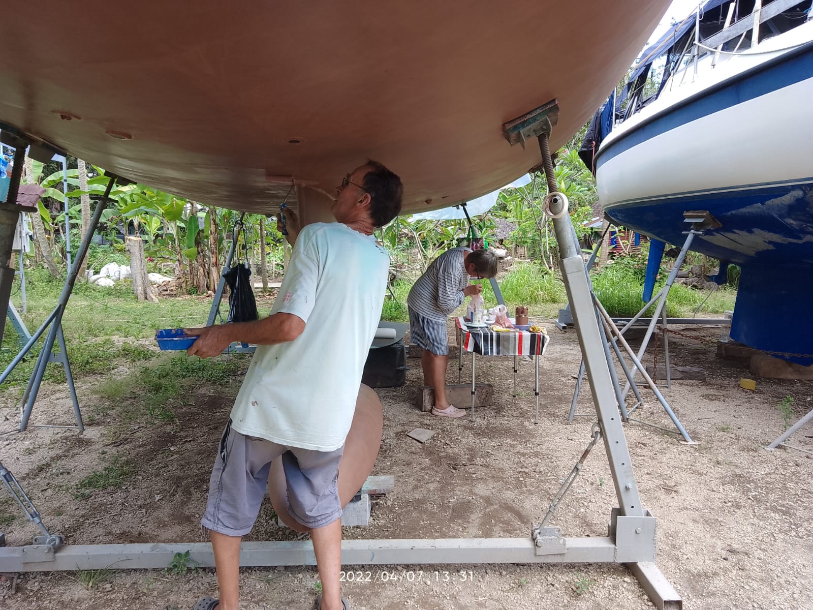 Quelques courses chez Pepito un super marché de type occidental relativement bien achalandé mais sans plus (pour l’Indonésie jusqu’à présent la palme revient toujours au Saga de Sorong) plus pour voir ce qu’ils avaient que par réel besoin. L’après midi nous vidons les jerrycans de gasoil qui nous restent dans le reservoir et allons à terre pour les remplir. Aucun problème pour trouver une voiture et un chauffeur mais les stations du coin ne vendent que du Solar (bio diesel à l’huile de palme, très mauvaise combustion) ou au mieux du DEXlite (jaune foncé et très gras) il faut aller jusqu’à Seririt à 15 km de là pour trouver du DEX (le carburant diesel le plus propre disponible dans le pays, équivalent de notre Euro 4) Nous en ramenons 165 litres il fait déjà bien nuit quand le dernier Jerrycan est rangé au fond du coffre. Ce sera toujours çà de moins à faire avant notre grand départ le mois prochain.