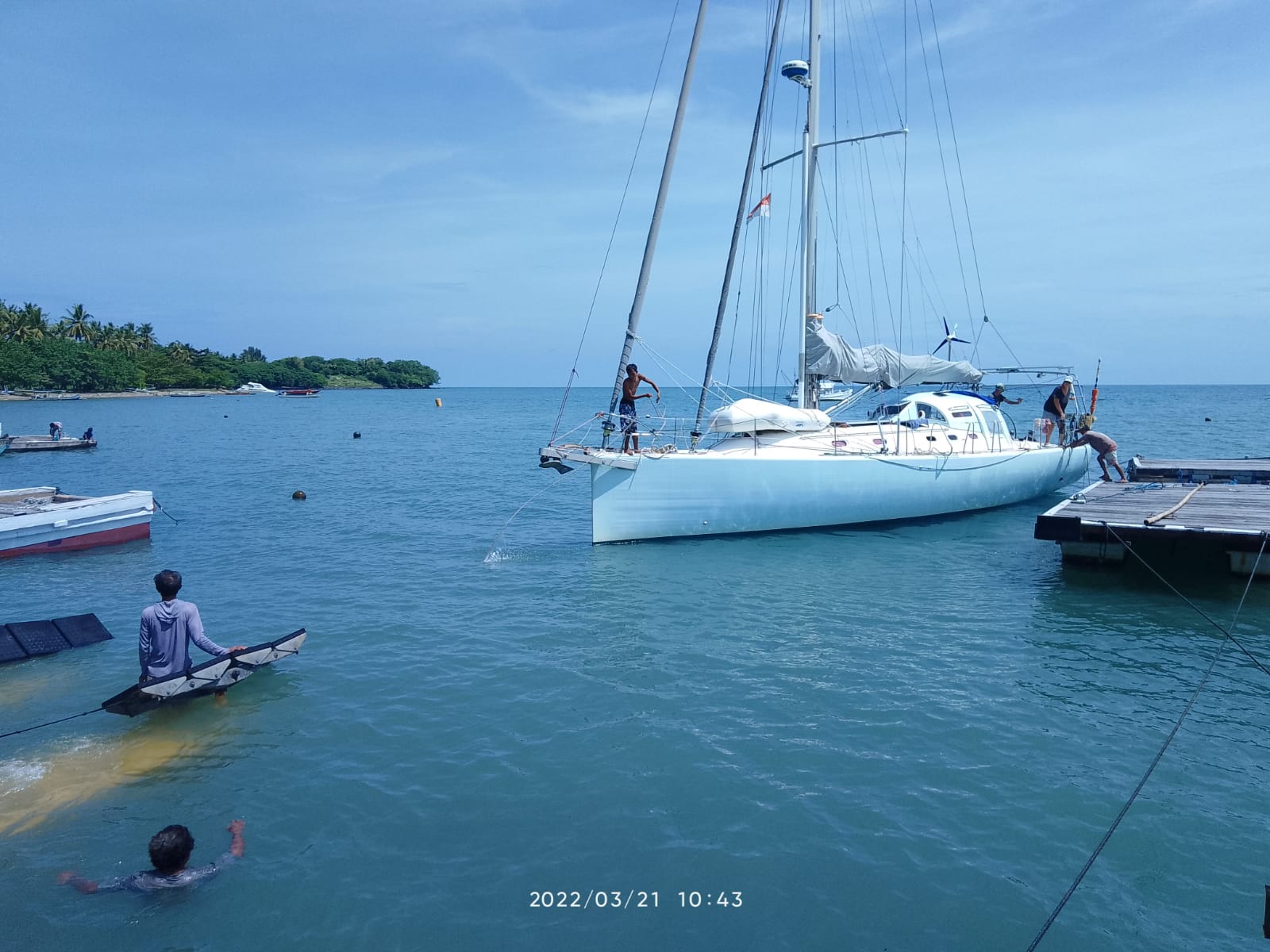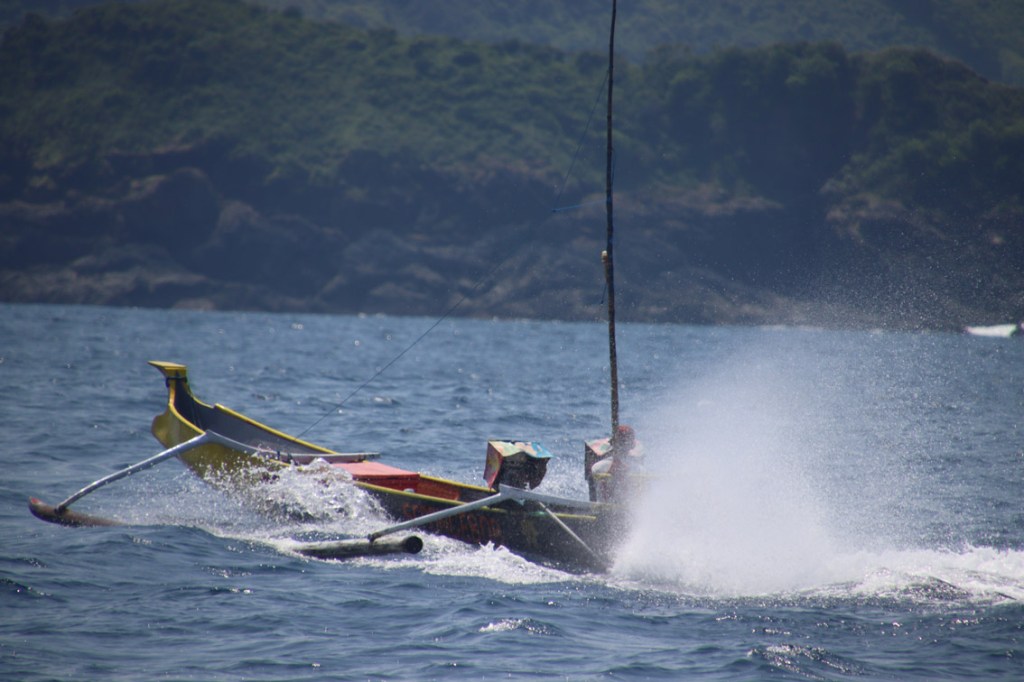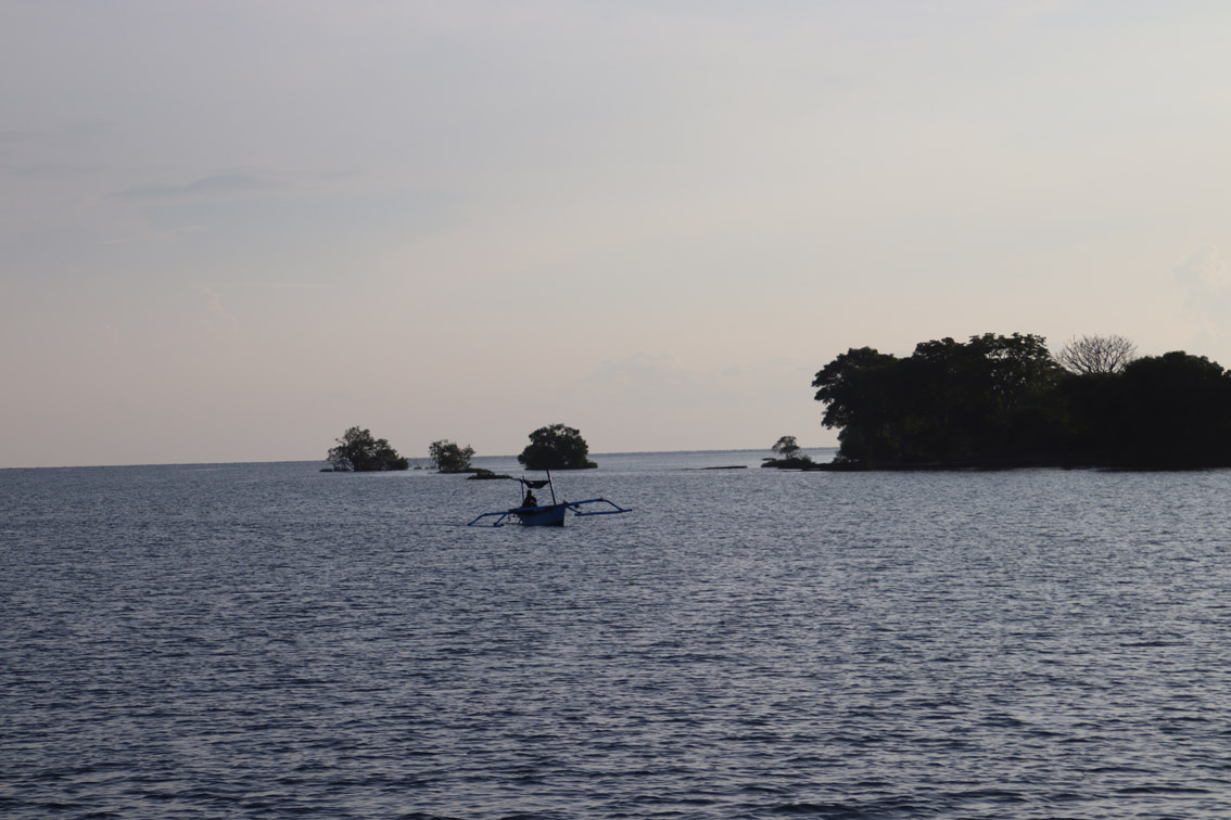 On nous avait parlé de Lovina comme étant une escale fantastique, nous allons donc voir çà. Il est 6:30 heures le vendredi 13 mai 2022 quand nous quittons le mouillage de Medana pourtant les brises évanescentes ne nous permettrons pas de couvrir les 75 milles du parcours avant la nuit et loin sans faut. Au large de la côte nord de Bali il y a de nombreux dispositifs de concentration de poisson. Certain sont bien éclairés beaucoup mal et certains pas du tout. C’est donc au radar que nous nous frayons un chemin. Fort heureusement la mer et parfaitement plate et ces petits radeaux de bambou nous renvoie des échos étonnamment clairs mais nous savons qu’à la moindre vague ils deviendrons parfaitement invisibles.
