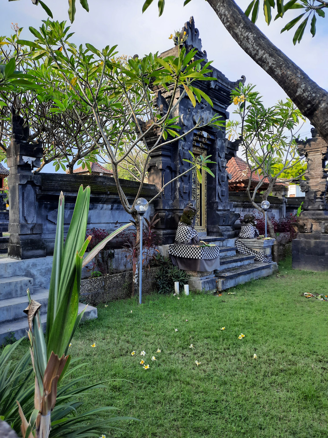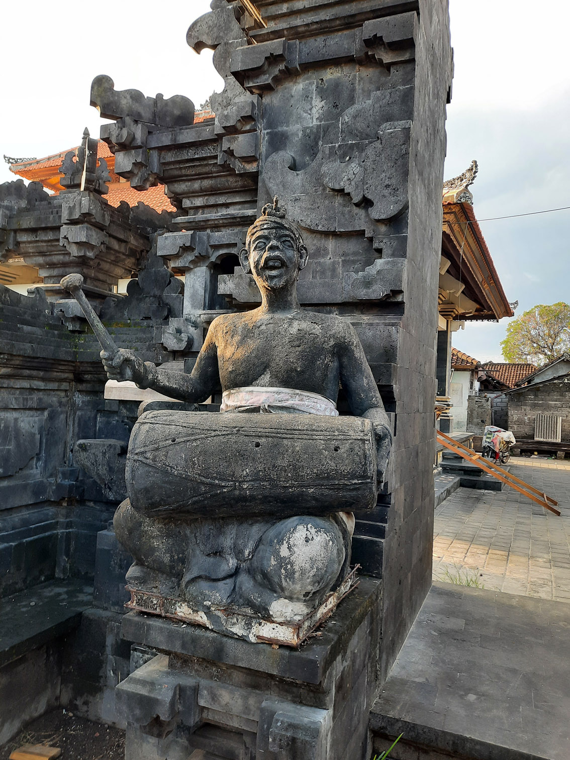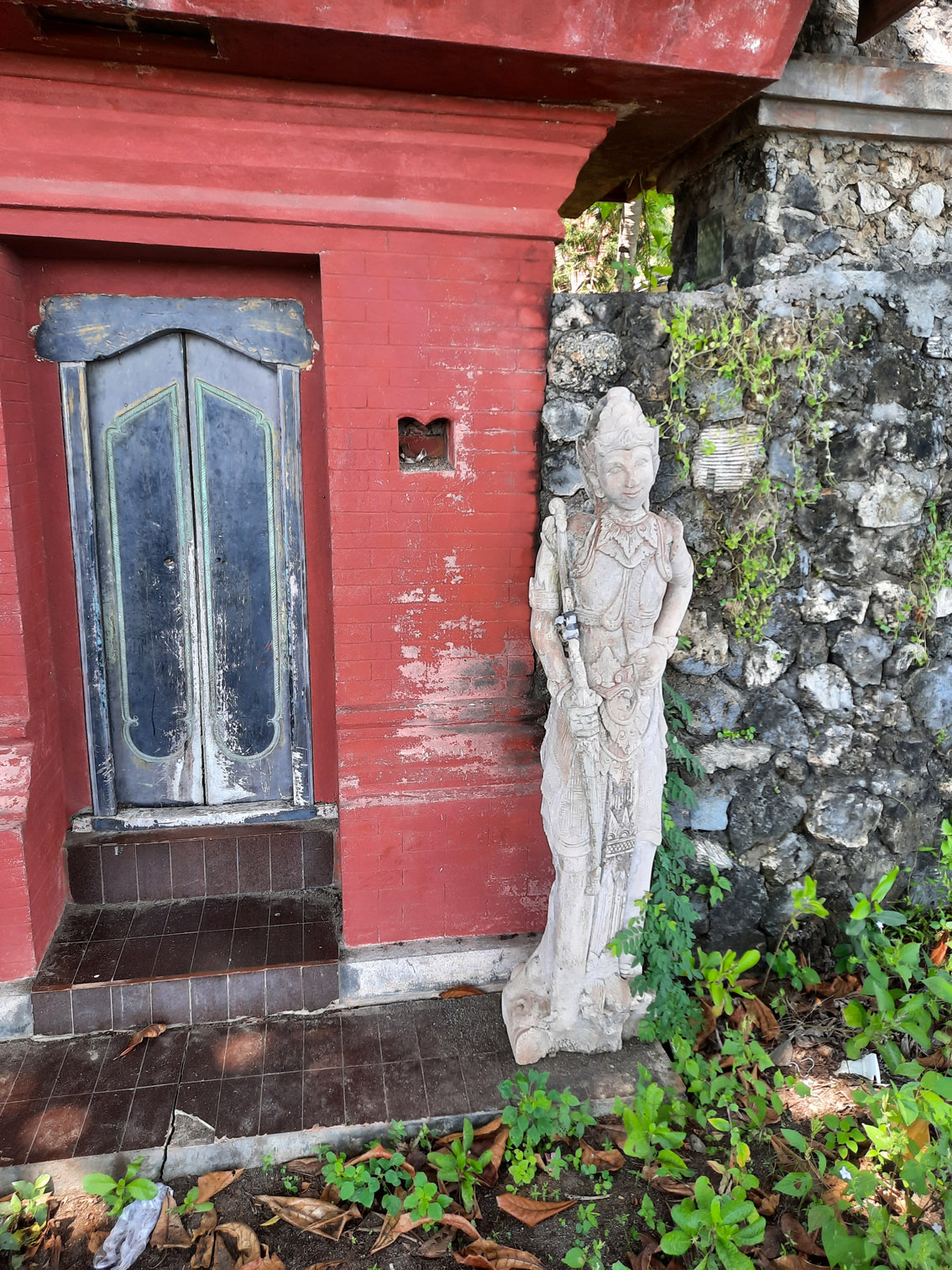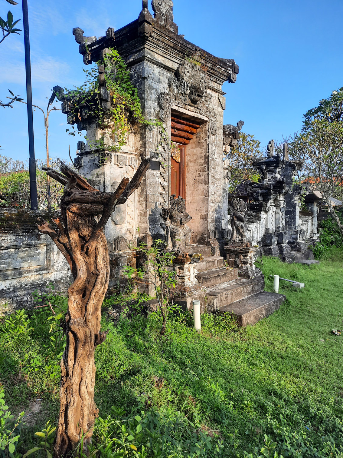 La première chose qui frappe quand on descend à terre c’est les fioritures et autres scultures d’inspiration hindou qui ornent tous les bâtiments fussent-ils temples, commerces restaurants ou maisons d’habitation. Chaque île d’Indonésie est vraiment un pays à part ! La deuxième chose c’est le désespoir des habitants qui ont dû survivre tant bien que mal à ces deux années de COVID,eux dont l’économie est entièrement basée sur le tourisme. Du coup ils sautent littéralement sur le premier étranger qu’ils voient (aujourd’hui c’est nous:() pour lui vendre des bijoux traditionnels, des perles, des fruits, de la boisson, une promenade en bateau pour aller voir les dauphins ou en voiture pour aller voir les cascades ou des temples et il est très difficile de leur faire lâcher prise et de les convaincre que pour l’instant on veut juste se dégourdir les jambes le long du bord de mer. Pour les chutes d’eau et les temples on aura tout le temps d’en faire la tournée avec nos amis Régine et Michel à la fin du mois.