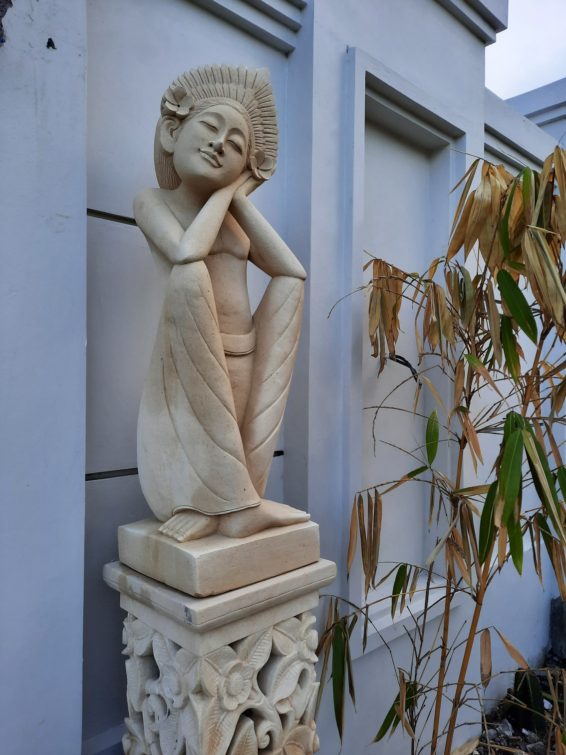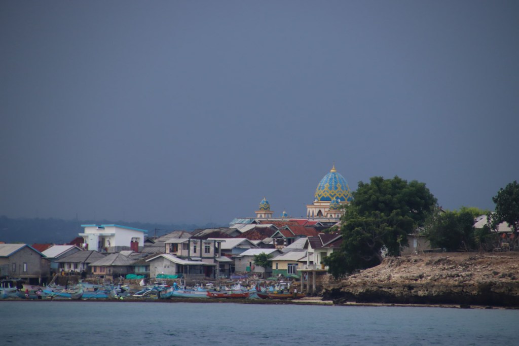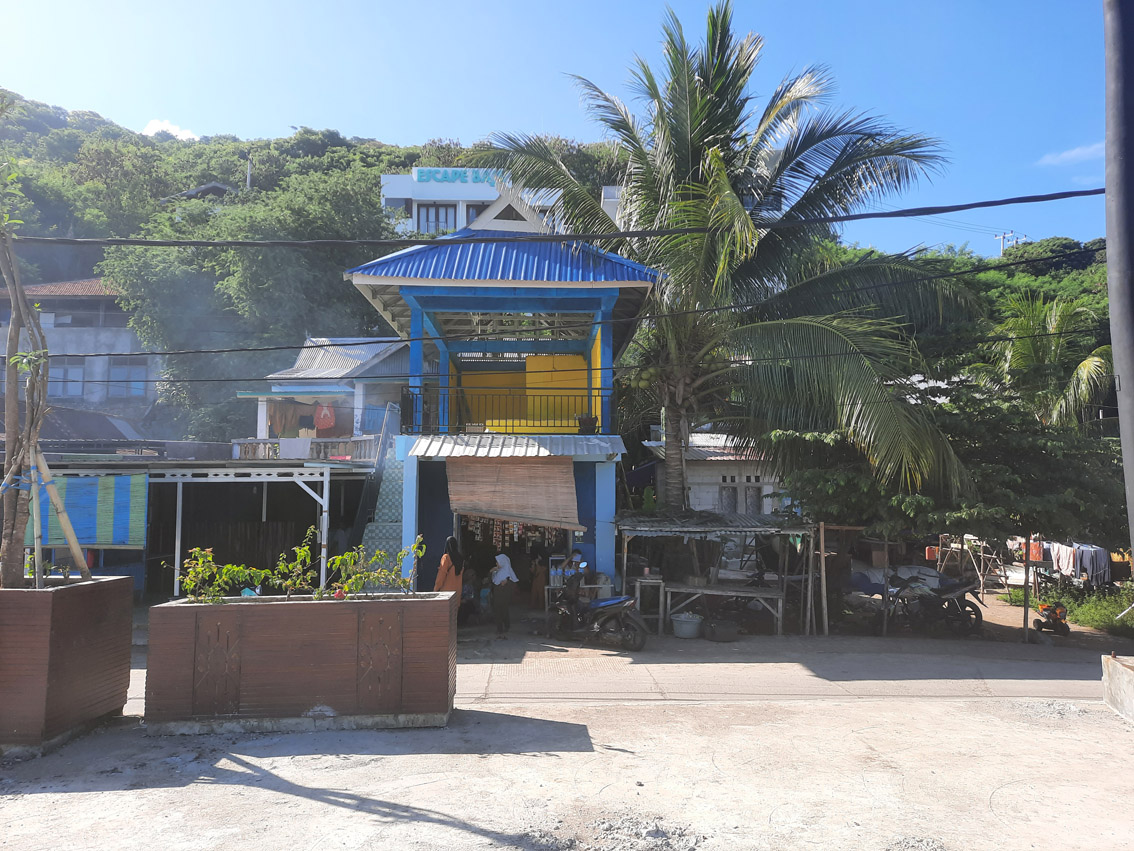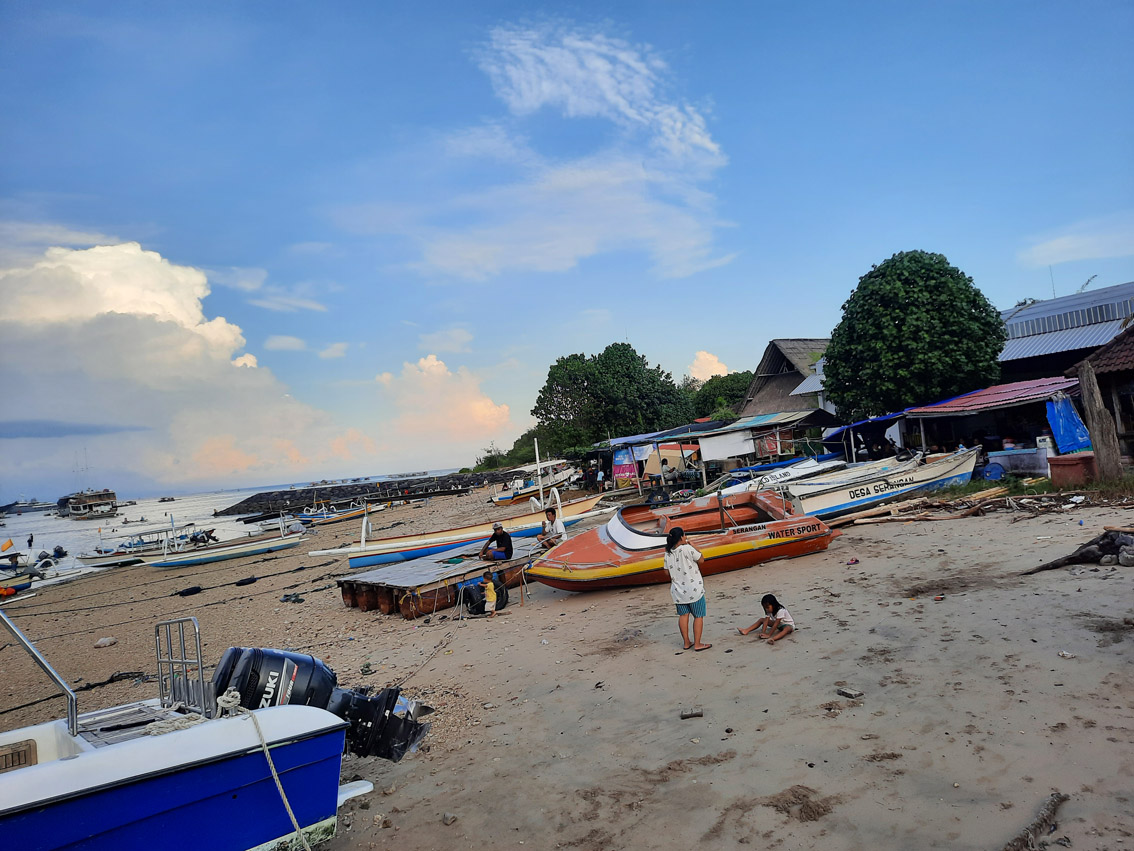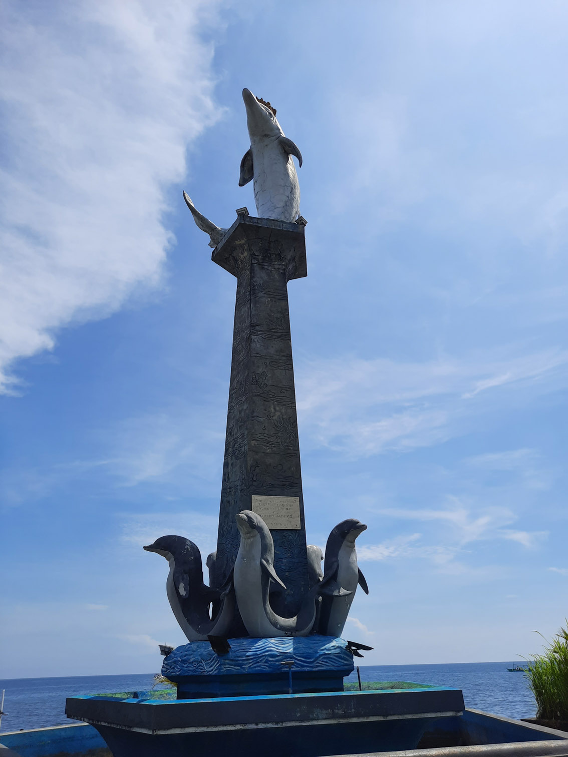 La première chose qui frappe quand on descend à terre c’est les fioritures et autres scultures d’inspiration hindou qui ornent tous les bâtiments fussent-ils temples, commerces restaurants ou maisons d’habitation. Chaque île d’Indonésie est vraiment un pays à part ! La deuxième chose c’est le désespoir des habitants qui ont dû survivre tant bien que mal à ces deux années de COVID,eux dont l’économie est entièrement basée sur le tourisme. Du coup ils sautent littéralement sur le premier étranger qu’ils voient (aujourd’hui c’est nous:() pour lui vendre des bijoux traditionnels, des perles, des fruits, de la boisson, une promenade en bateau pour aller voir les dauphins ou en voiture pour aller voir les cascades ou des temples et il est très difficile de leur faire lâcher prise et de les convaincre que pour l’instant on veut juste se dégourdir les jambes le long du bord de mer. Pour les chutes d’eau et les temples on aura tout le temps d’en faire la tournée avec nos amis Régine et Michel à la fin du mois.