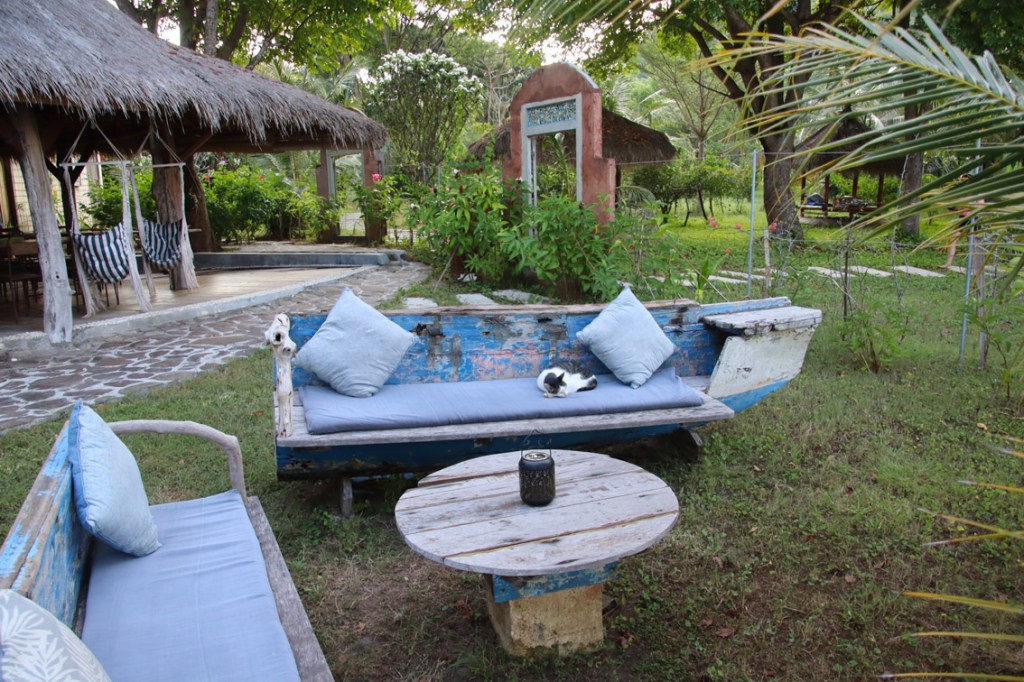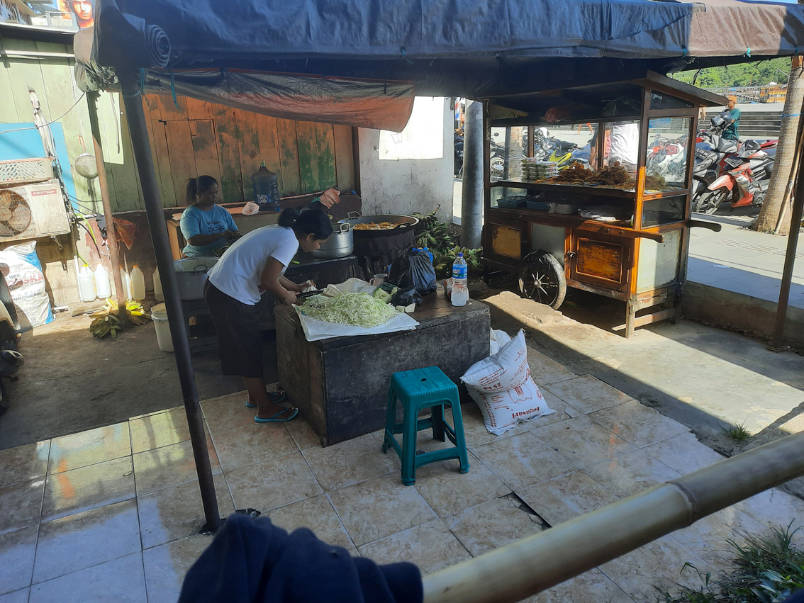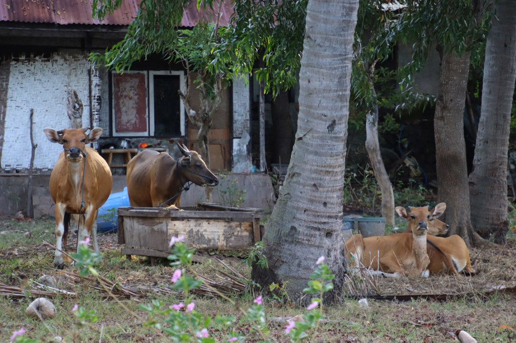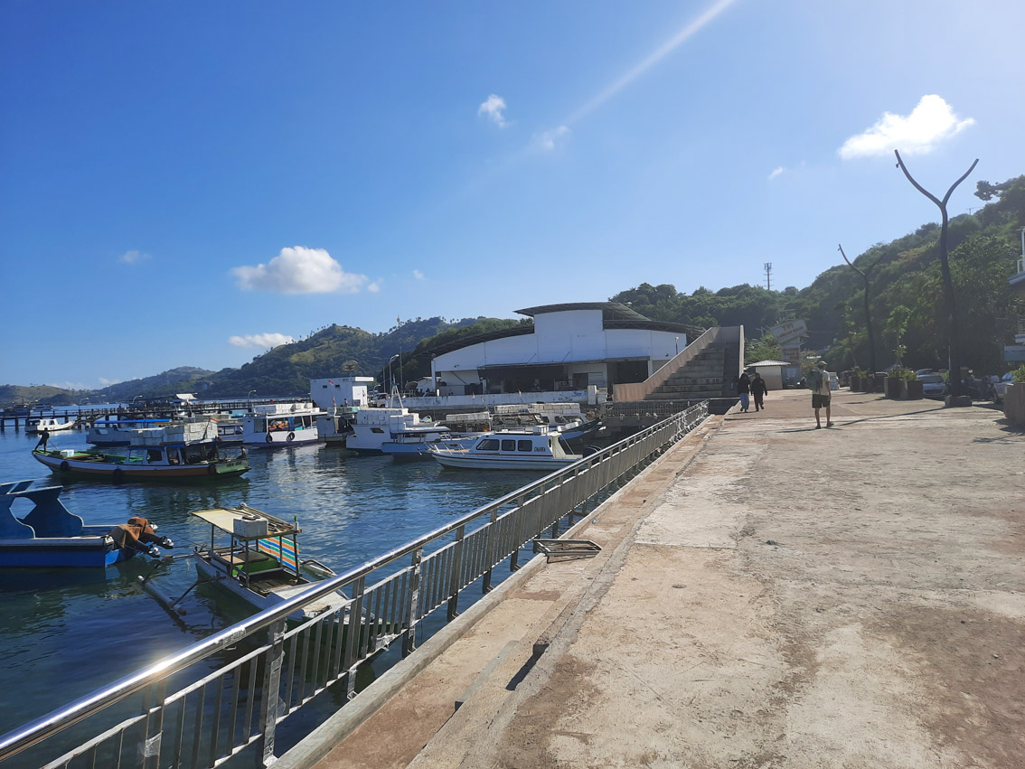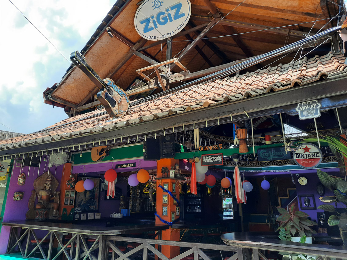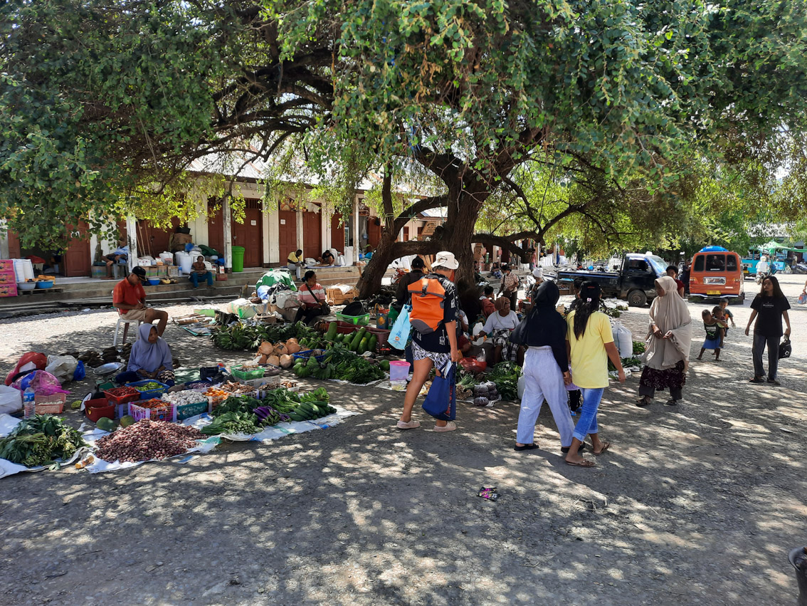 La première chose qui frappe quand on descend à terre c’est les fioritures et autres scultures d’inspiration hindou qui ornent tous les bâtiments fussent-ils temples, commerces restaurants ou maisons d’habitation. Chaque île d’Indonésie est vraiment un pays à part ! La deuxième chose c’est le désespoir des habitants qui ont dû survivre tant bien que mal à ces deux années de COVID,eux dont l’économie est entièrement basée sur le tourisme. Du coup ils sautent littéralement sur le premier étranger qu’ils voient (aujourd’hui c’est nous:() pour lui vendre des bijoux traditionnels, des perles, des fruits, de la boisson, une promenade en bateau pour aller voir les dauphins ou en voiture pour aller voir les cascades ou des temples et il est très difficile de leur faire lâcher prise et de les convaincre que pour l’instant on veut juste se dégourdir les jambes le long du bord de mer. Pour les chutes d’eau et les temples on aura tout le temps d’en faire la tournée avec nos amis Régine et Michel à la fin du mois.