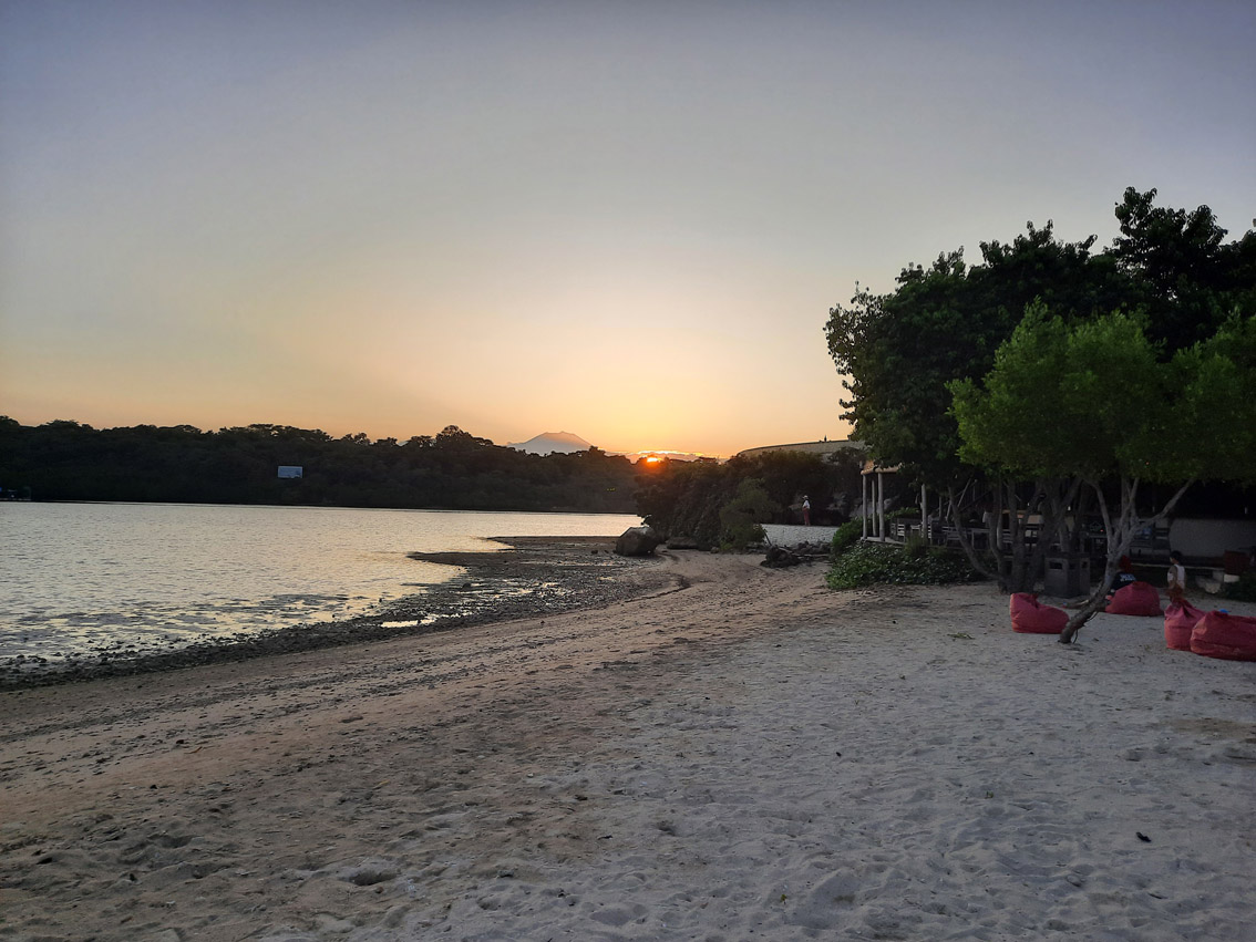Avant de rentrer au bateau nous allons nous offrir un excellent homard à l’ail et un mérou grillé dans un restaurant de Serangan (tous deux délicieux, les serveurs étaient très gentils mais ne connaissaient vraiment pas le métier) puis nous flânons dans les ruelles et assistons au coucher de soleil sur la lagune.