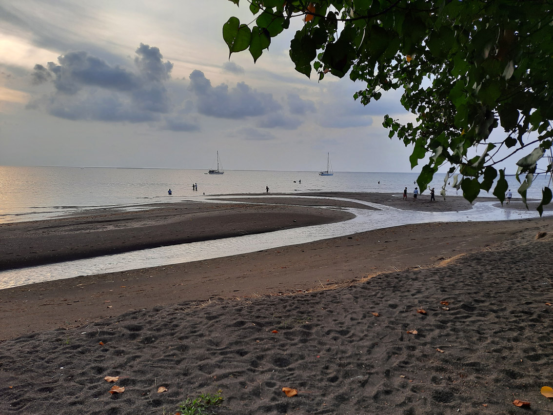 Il est minuit quand nous arrivons à Lovina (de son vrai nom Kalibubuk) La large baie aux fonds remontant tout doucement vers la plage ne pose aucun problème pour une arrivée de nuit surtout qu’il n’y a aucun autre bateau d’ancré.