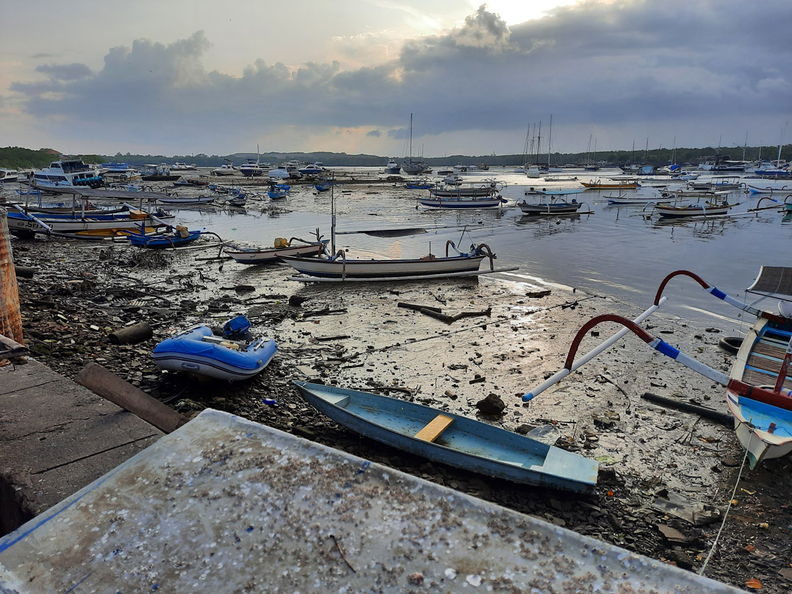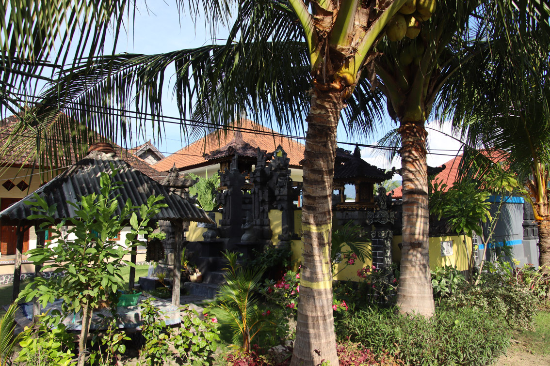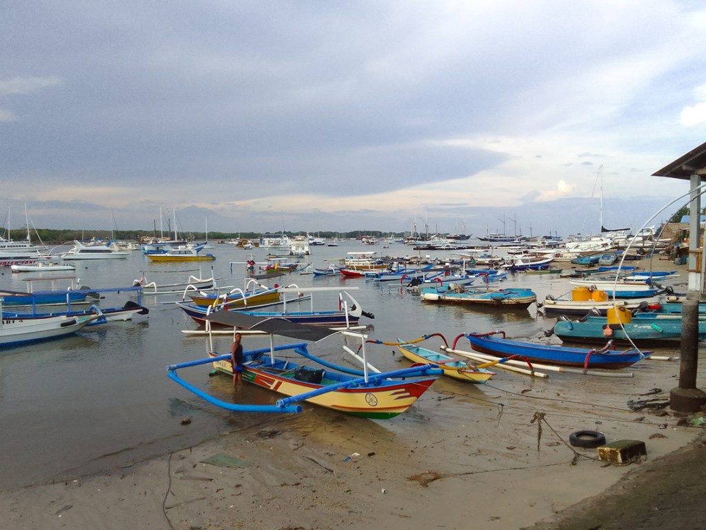 La passe d’entrée de la baie de Serangan est facile et bien balisée. La baie est complètement remplie de «live aboards» dont beaucoup sont manifestement en travaux. Après avoir tourné en rond pendant un moment nous trouvons finalement un corps mort libre que les bateaux voisins nous confiment qu’on peut utiliser. Le village de Serangan très active malgré le peu de touristes est plutôt une bonne surprise avec ses ruelles bordées de temples et le canal séparant la presqu’île de l’îlot voisin réserve de tortues.