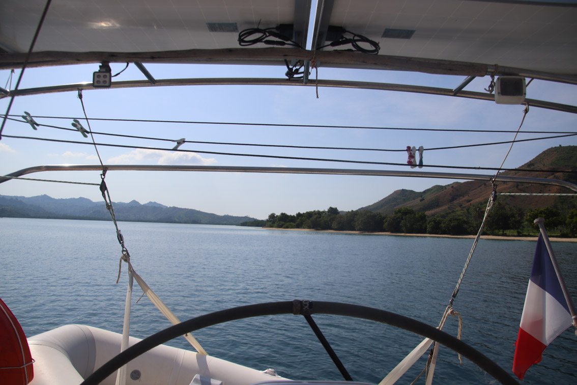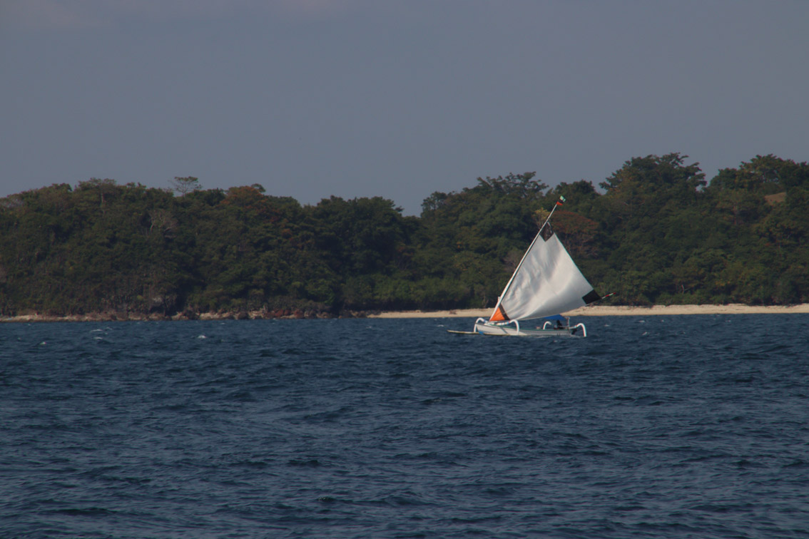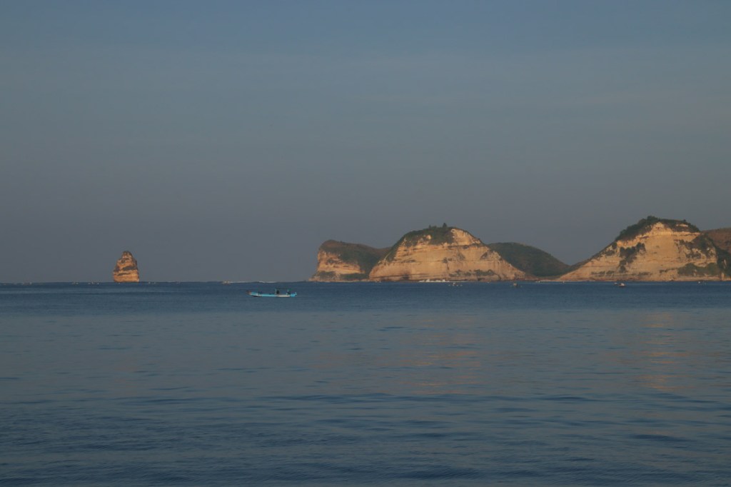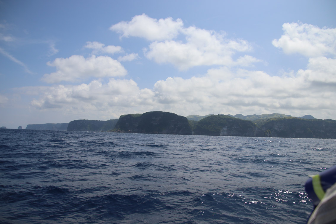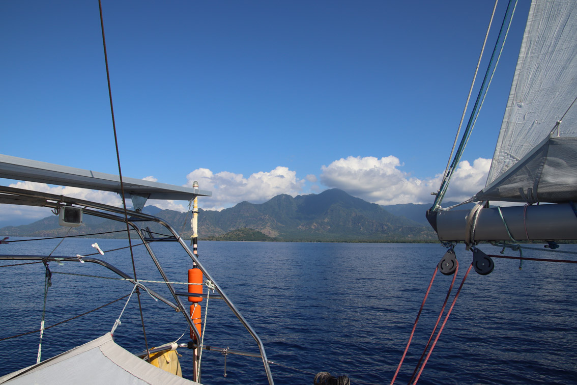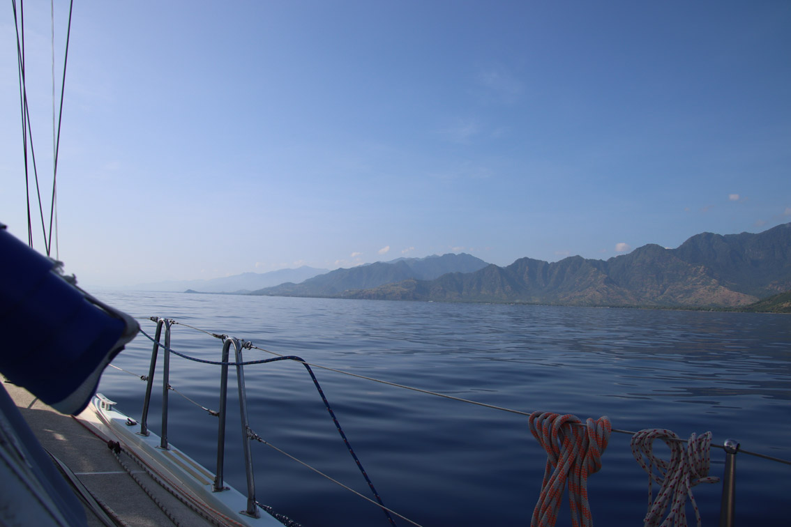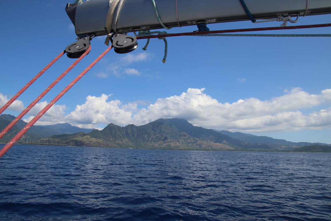 Au lever du jours nous sommes au nord de l’île de Lembongan, soit une progression de 15 milles en 8 heures, quand finalement le courant s’inverse avec la marée et les derniers milles sont avalés rapidement.