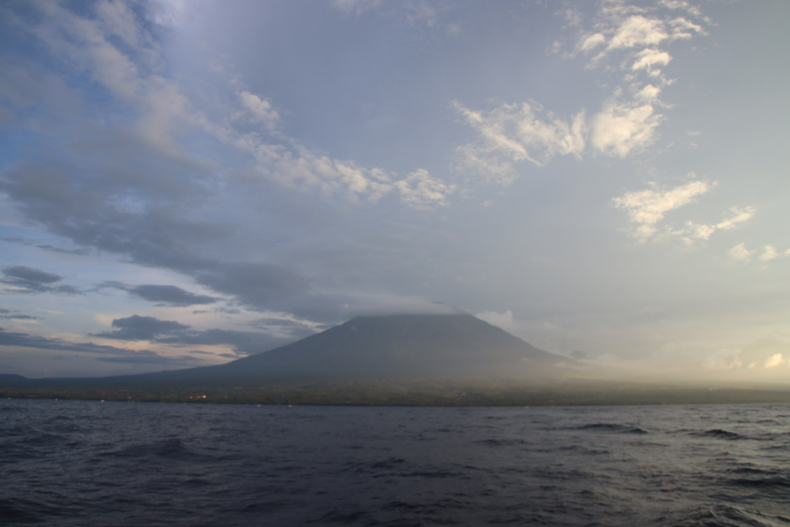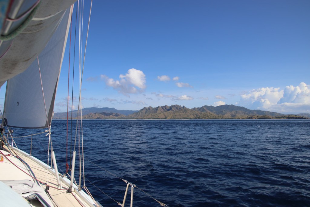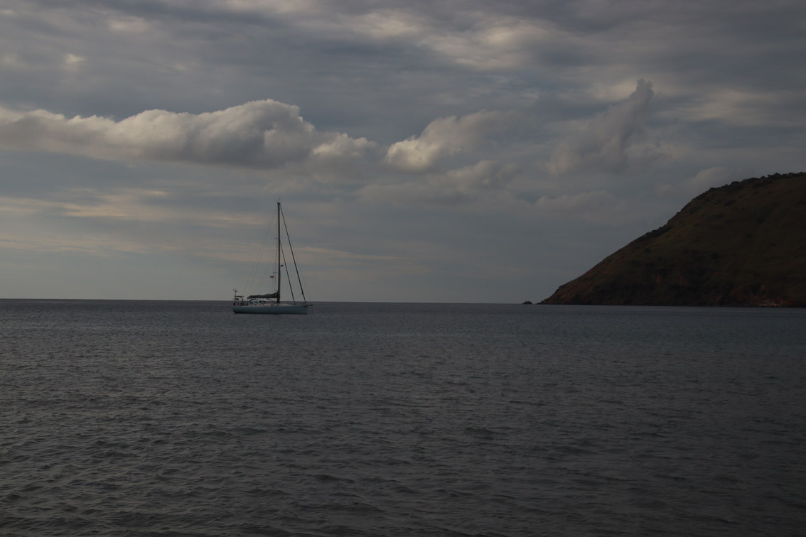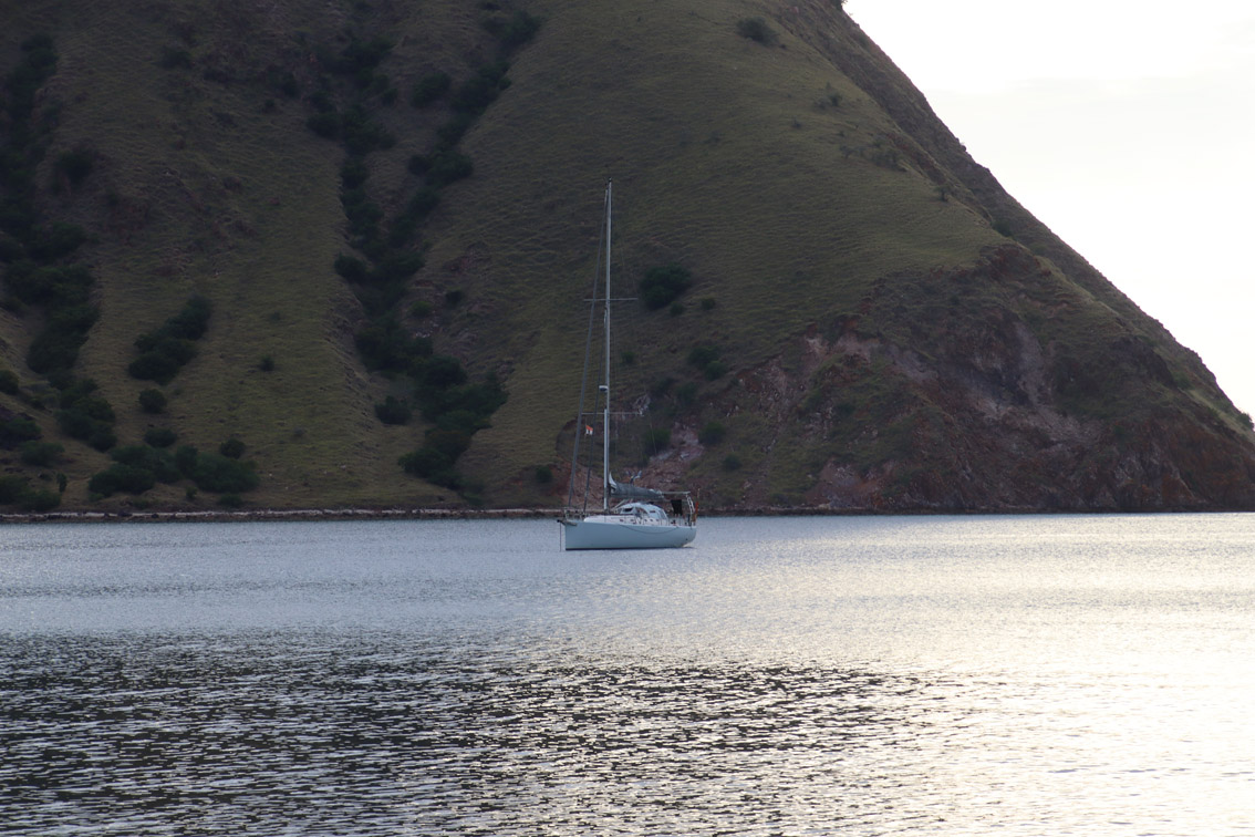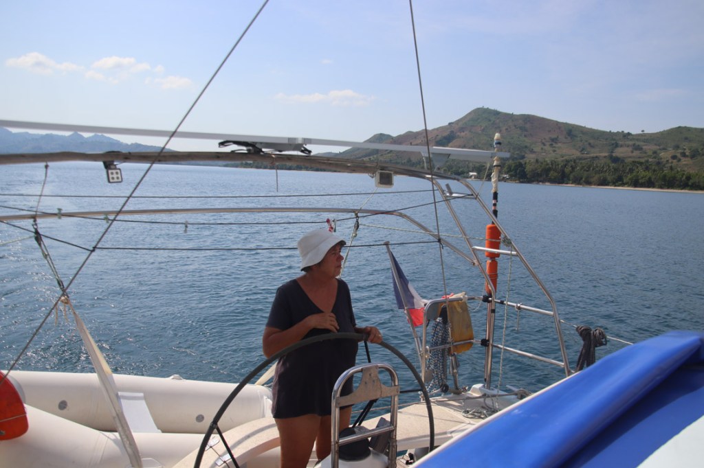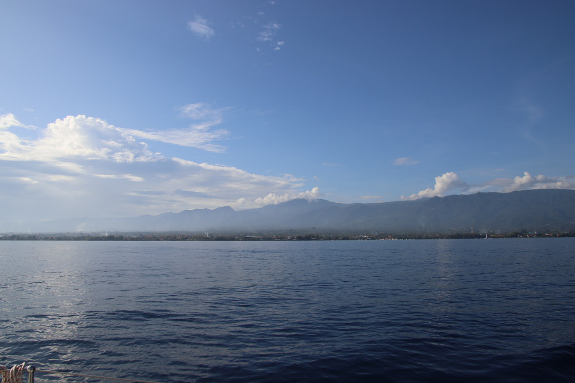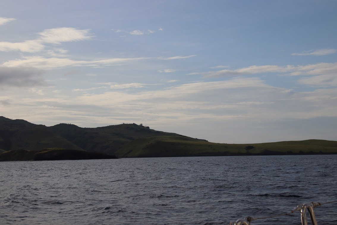 Au lever du jours nous sommes au nord de l’île de Lembongan, soit une progression de 15 milles en 8 heures, quand finalement le courant s’inverse avec la marée et les derniers milles sont avalés rapidement.