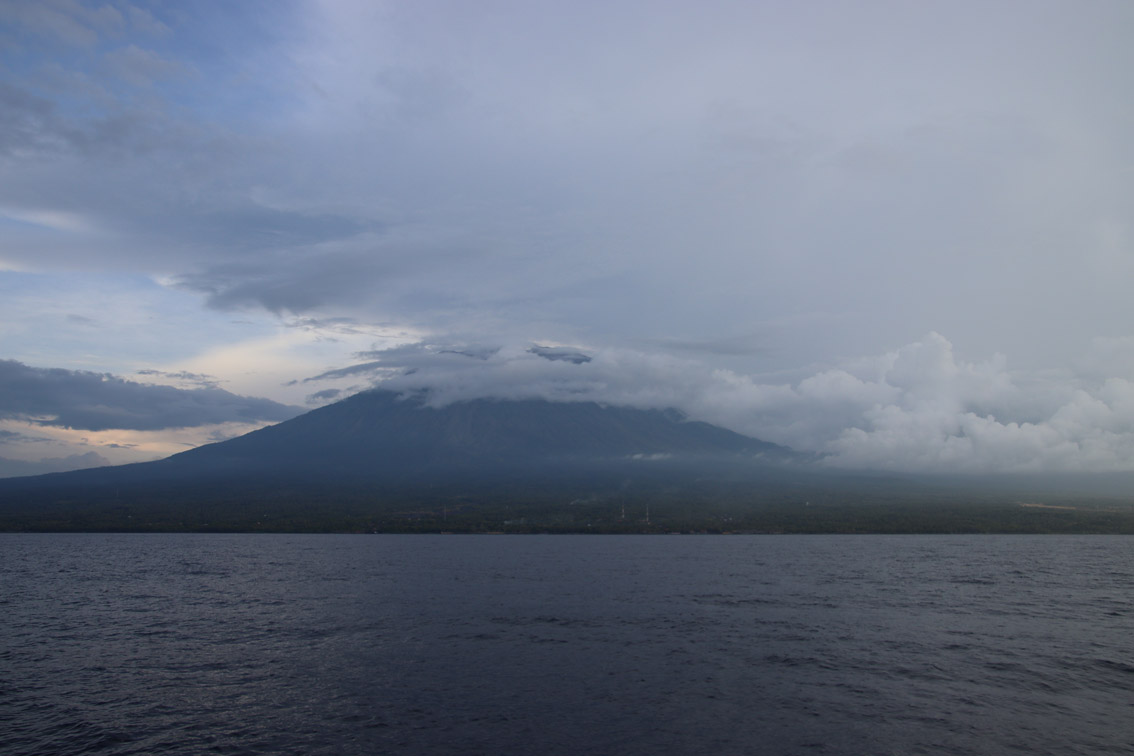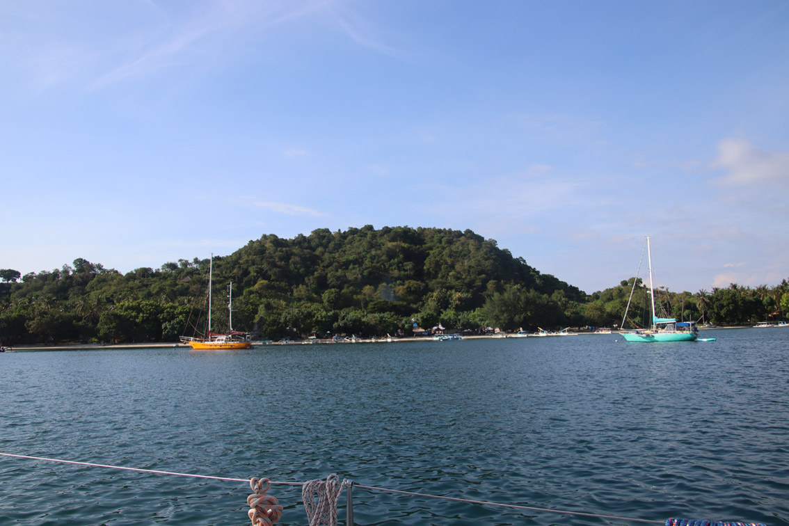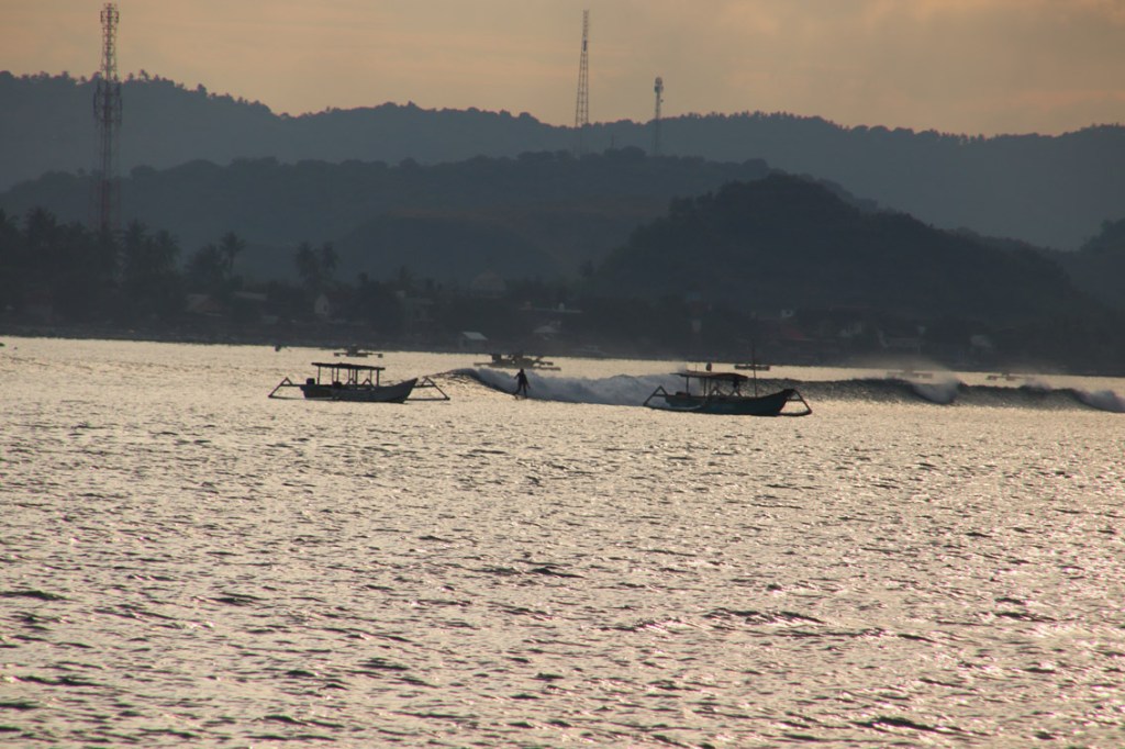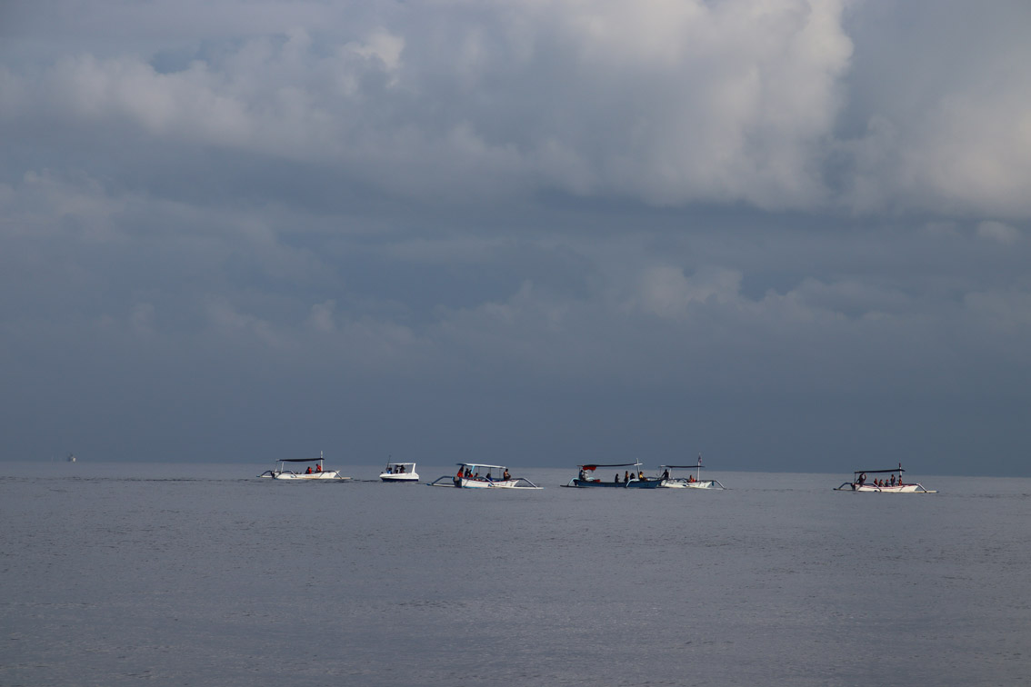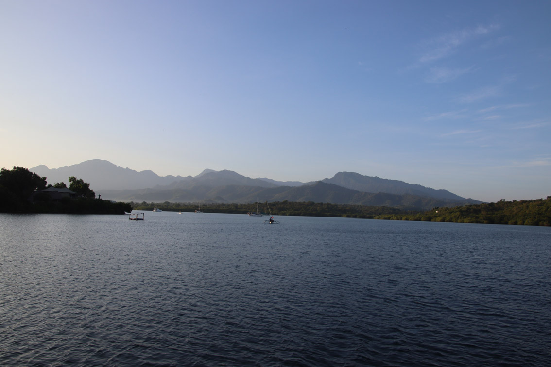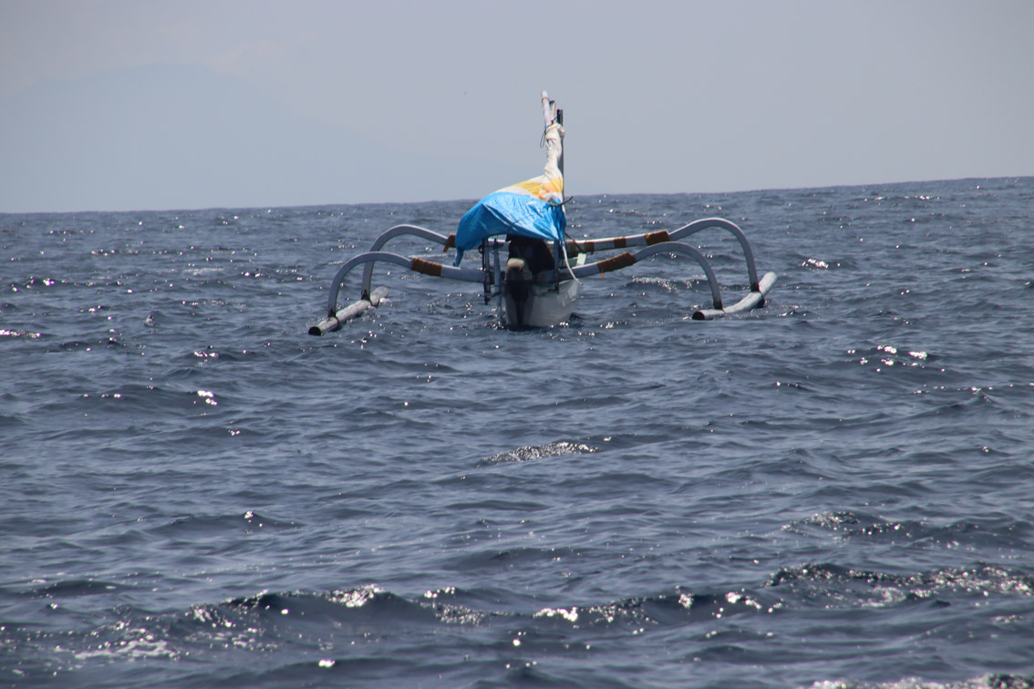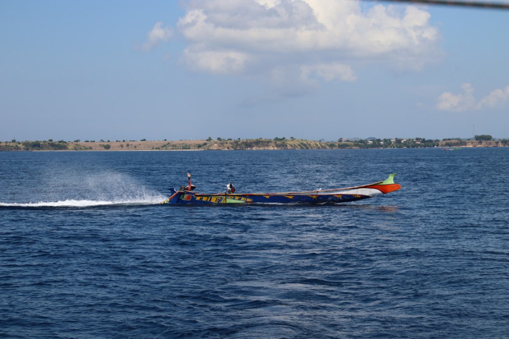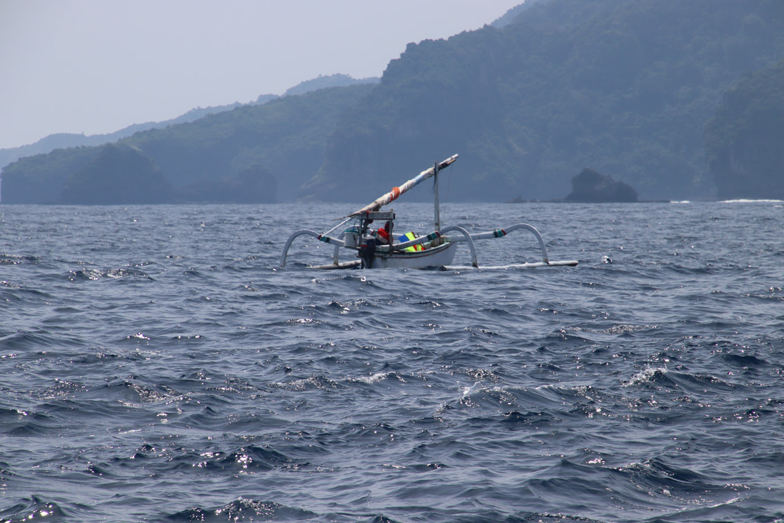 Au lever du jours nous sommes au nord de l’île de Lembongan, soit une progression de 15 milles en 8 heures, quand finalement le courant s’inverse avec la marée et les derniers milles sont avalés rapidement.