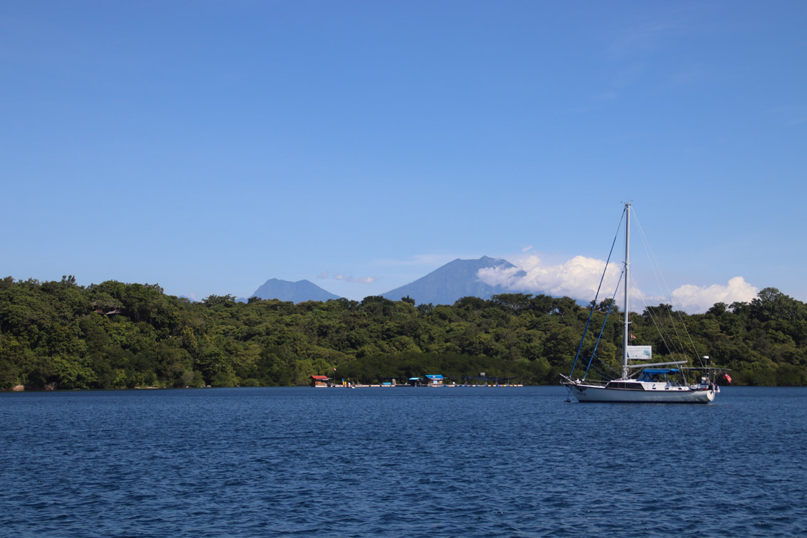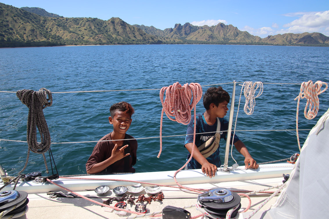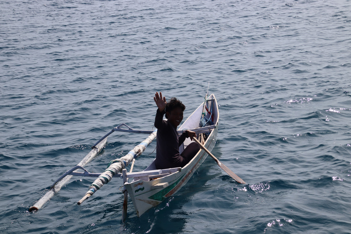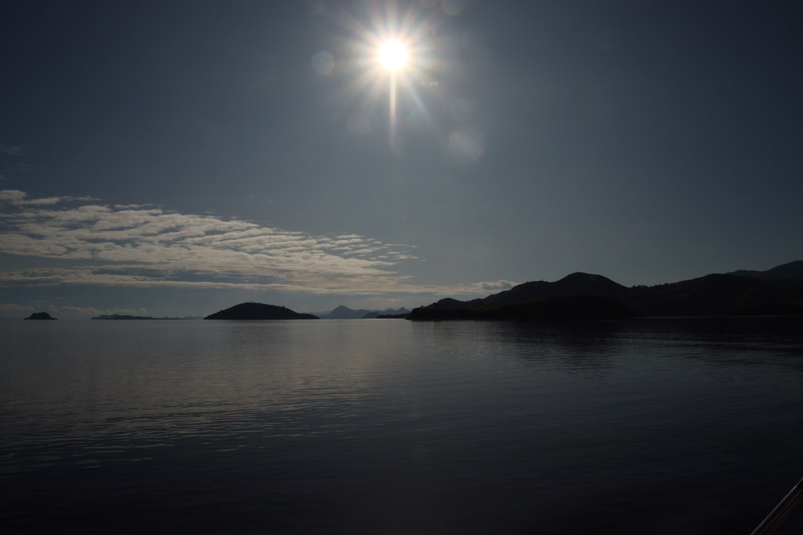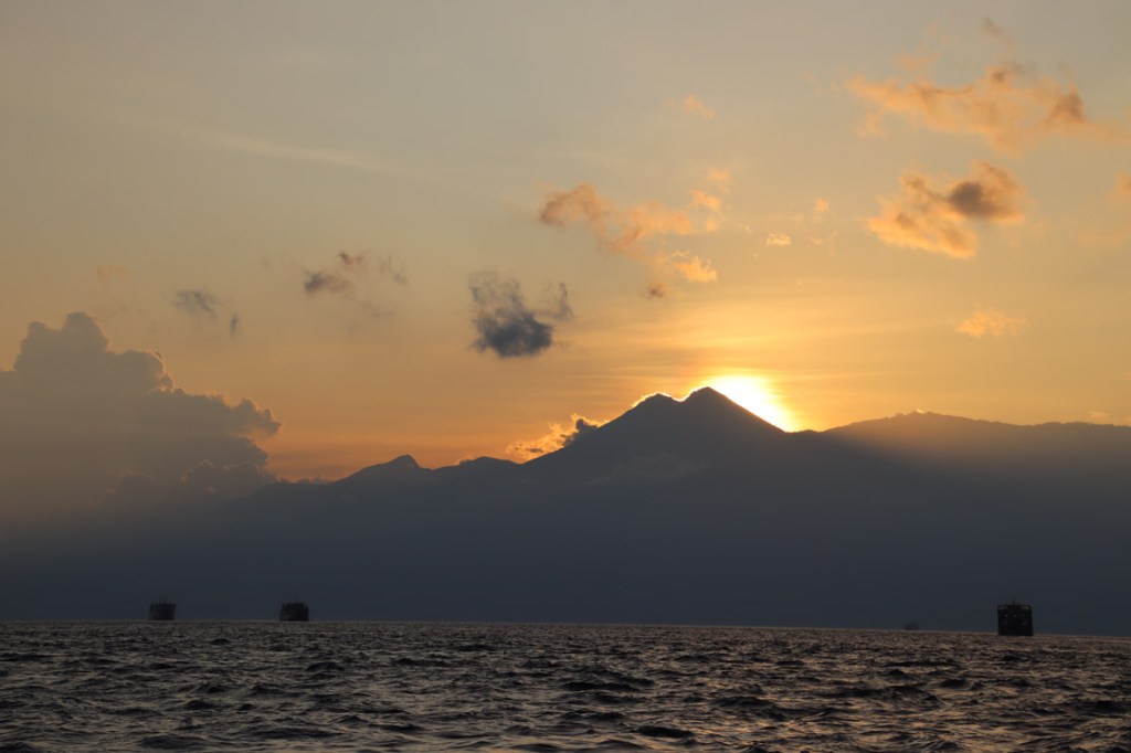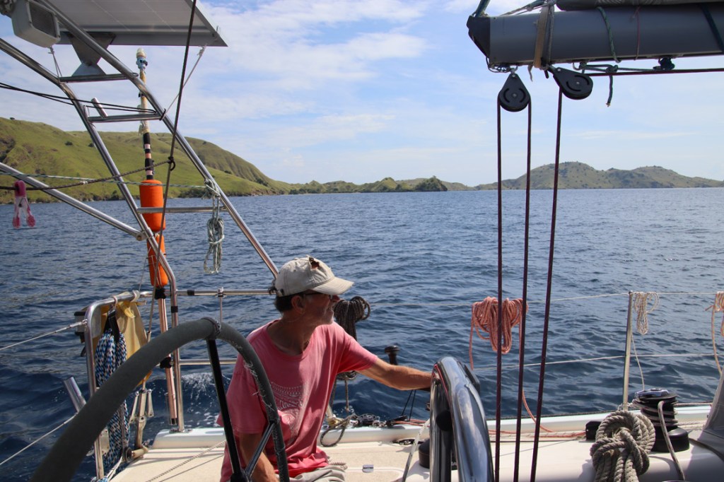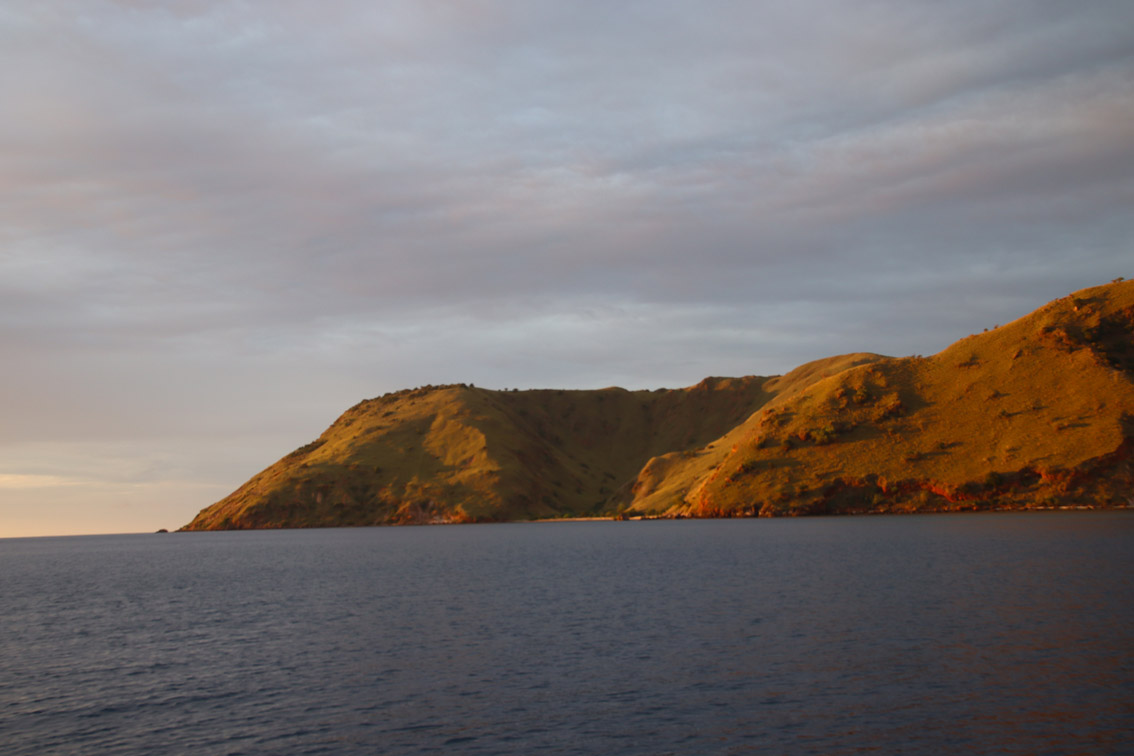 Au lever du jours nous sommes au nord de l’île de Lembongan, soit une progression de 15 milles en 8 heures, quand finalement le courant s’inverse avec la marée et les derniers milles sont avalés rapidement.