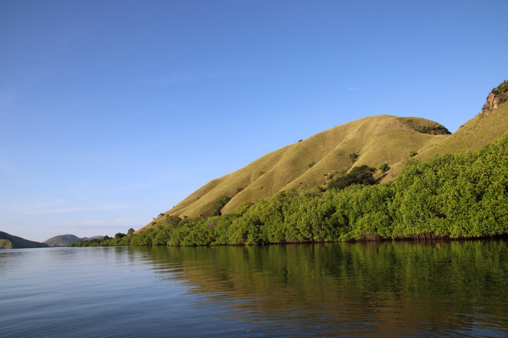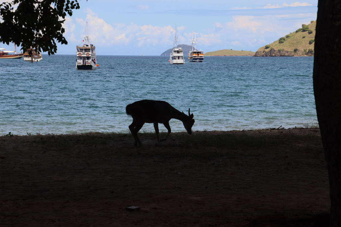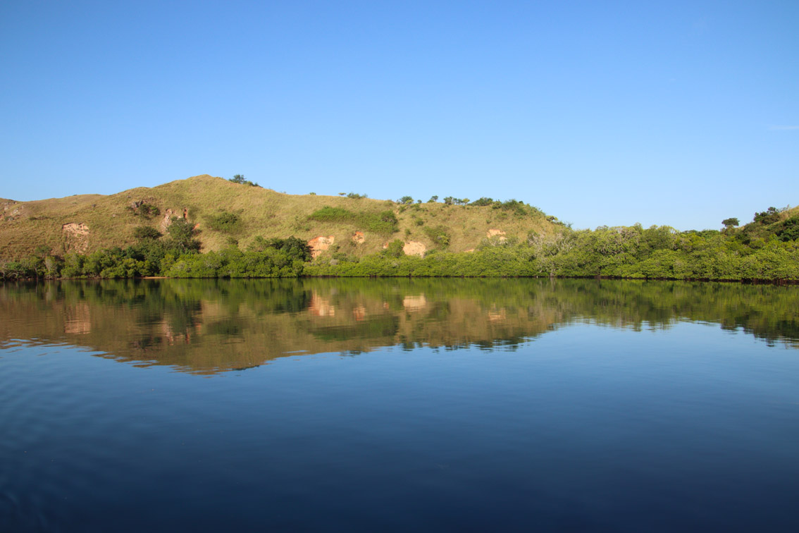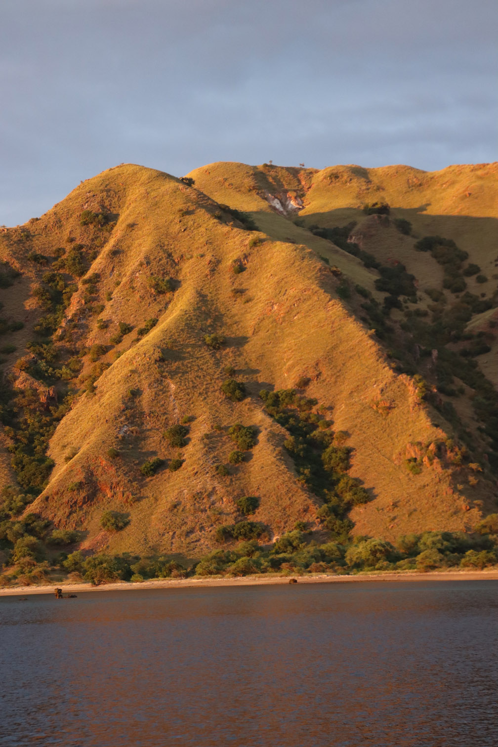 Dimanche matin nous levons l’ancre direction la pointe Ouest de l’île. Le vent est faible mais on a tout le temps alors on s’amuse à chasser les risées . Il est 17:00 quand nous ancrons au milieu de la petite baie de Banyuwedang. C’est une très jolie baie parfaitement protégée de tous les vents, on y rentre par une passe étroite mais sans danger, elle est entourée de mangrove et de collines boisées. La vue depuis le mouillage est époustouflante, à l’Ouest le sommet des volcans de Java flamboient dans le soleil couchant, du sud et à l’Est les sommets découpés des montagnes de Bali sont mis en valeur par les derniers rayons. Dîner au restaurant du Menjangan Dynasty resort, sur la plage. Décors superbe mais repas décevant, prix élevés et portions à peine suffisantes pour une midinette anorexique.