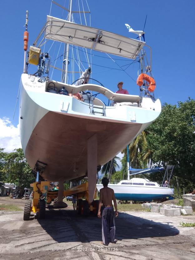 Quelques courses chez Pepito un super marché de type occidental relativement bien achalandé mais sans plus (pour l’Indonésie jusqu’à présent la palme revient toujours au Saga de Sorong) plus pour voir ce qu’ils avaient que par réel besoin. L’après midi nous vidons les jerrycans de gasoil qui nous restent dans le reservoir et allons à terre pour les remplir. Aucun problème pour trouver une voiture et un chauffeur mais les stations du coin ne vendent que du Solar (bio diesel à l’huile de palme, très mauvaise combustion) ou au mieux du DEXlite (jaune foncé et très gras) il faut aller jusqu’à Seririt à 15 km de là pour trouver du DEX (le carburant diesel le plus propre disponible dans le pays, équivalent de notre Euro 4) Nous en ramenons 165 litres il fait déjà bien nuit quand le dernier Jerrycan est rangé au fond du coffre. Ce sera toujours çà de moins à faire avant notre grand départ le mois prochain.
