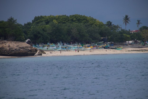 Au lever du jours nous sommes au nord de l’île de Lembongan, soit une progression de 15 milles en 8 heures, quand finalement le courant s’inverse avec la marée et les derniers milles sont avalés rapidement.