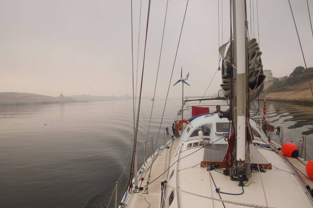 Une fois sortis des embouteillages maritimes de l’entrée/sortie du Canal, Port Saïd contrôle nous appelle en VHF pour connaître notre destination et conclus l’échange par «Rêve à Deux – c’est bon, vous êtes sortis de la zone d’ancrage, vous pouvez augmenter votre vitesse » « Bien compris port control, pas de souci envoyez moi un peu plus de vent … » Et ce sera la caractéristique de cette traversée : on passera 2 jours à chasser la moindre risée. On aura pratiquement toujours le souffle d’air suffisant pour avancer mais jamais plus de 7 nœuds de vent et bien sûr toujours dans l’axe nous obligeant à tirer de bords : résultat la traversée la plus lente de Rêve à Deux : 74 heures pour faire les 206 milles qui séparent Port Saïd de Pafos notre destination (pour Rêve à Deux 206 milles c’est juste une bonne journée dans l’alizé !) Pas rapide donc mais pas fatiguant non plus et c’est tant mieux car la remontée express depuis la Tanzanie nous a un peu mise sur les rotules. Comme d’habitude nous servons de gite d’étape aux oiseaux de passages. Cette fois c’est une sorte de tout petit passereau mangeur de mouches que nos experts ornithologues identifieront peut-être , nous en hébergerons jusqu’à 4 et ils nous ont bien rendu service en nous débarrassant des mouches Égyptiennes qui avaient décider de faire la traversée avec nous.