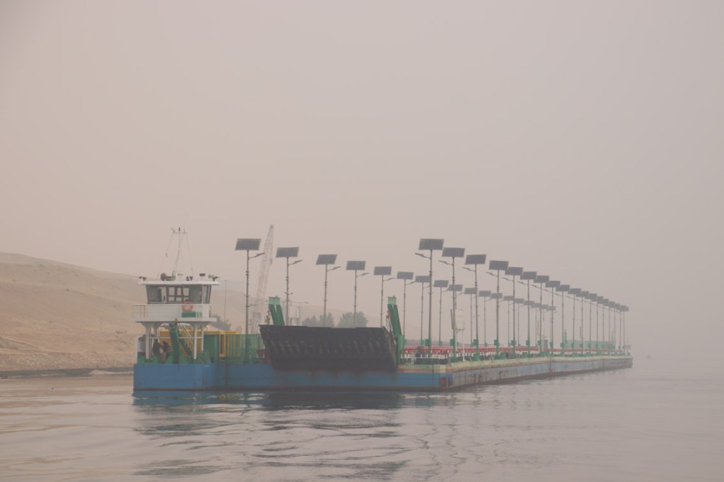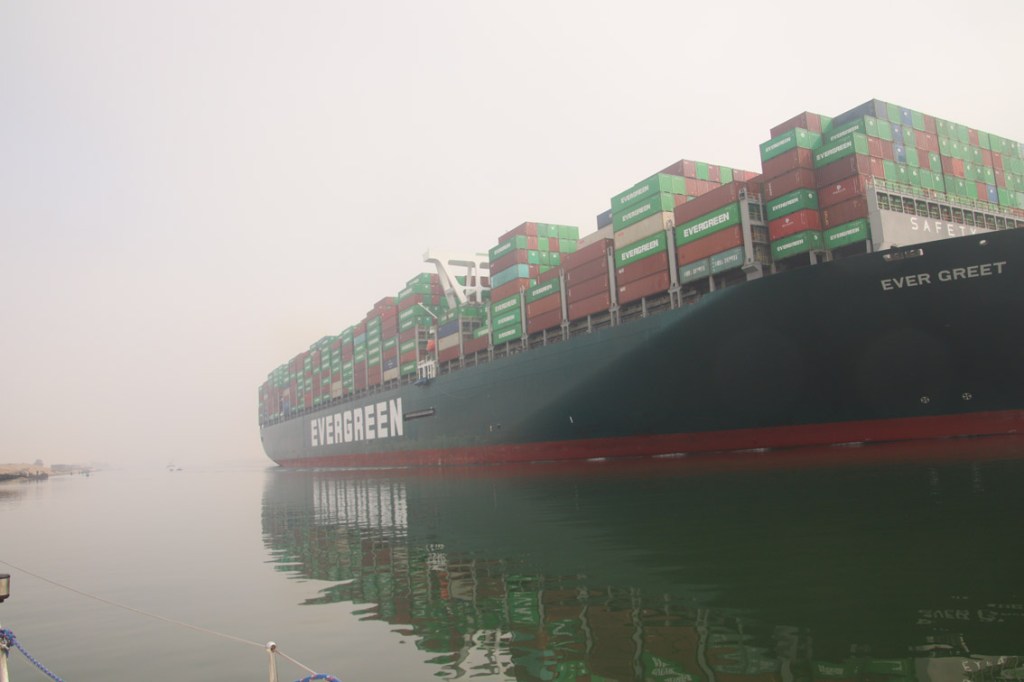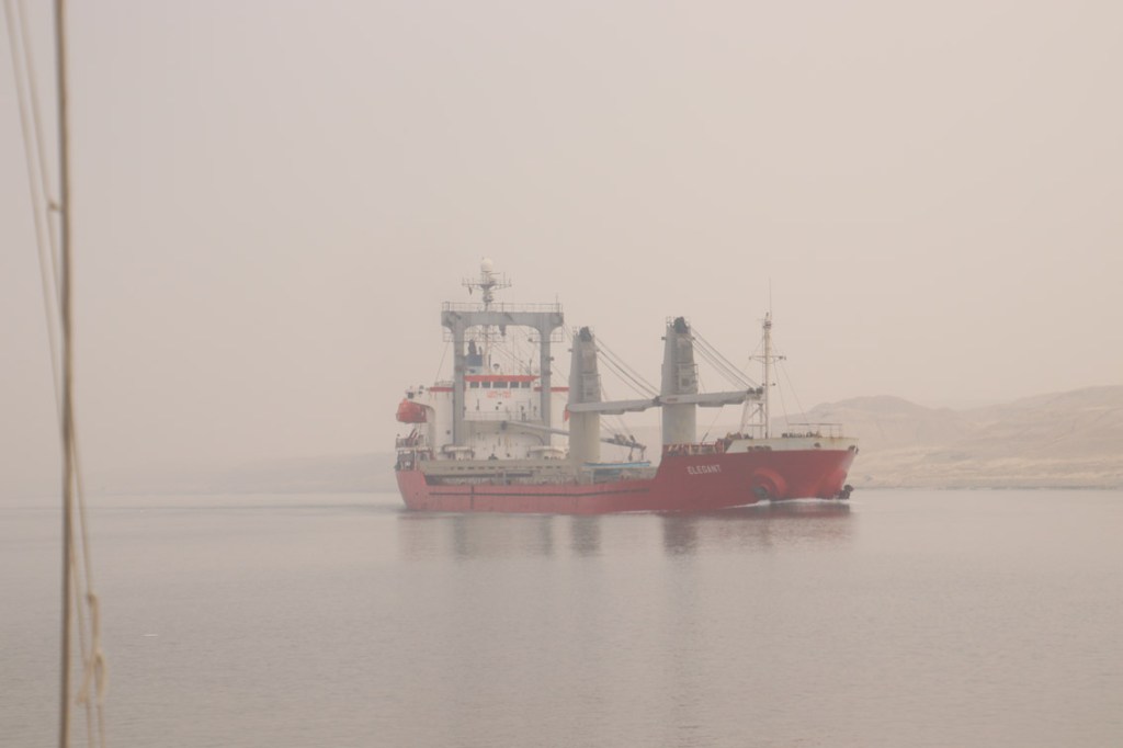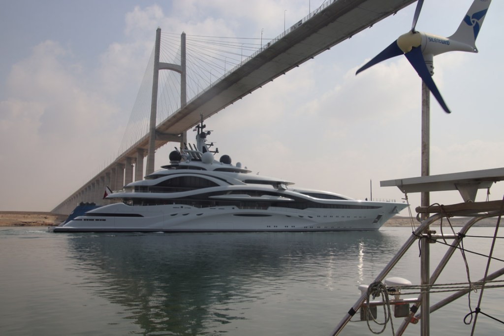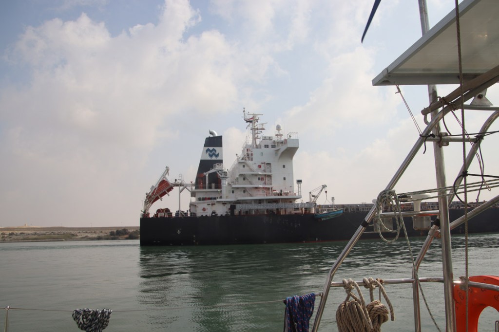 Dans la soirée le trimaran Akron Aoton (ORMA 60 ex Groupama) vient se mettre au ponton à côté de nous. Apparemment il participerais à un relais pour le climat de Glasgow (ville de la COP 26) à Sharm el Sheikh (site de la COP 27) regroupant à chaque étape coureur à pied, cycliste et marins. Mais l’attitude de l’équipage (soft drinks dan verre en plastique) avec paille et le concept du passage du Canal de Suez au moteur dans un bateaux en fibre de carbone n’est pas très écolo…