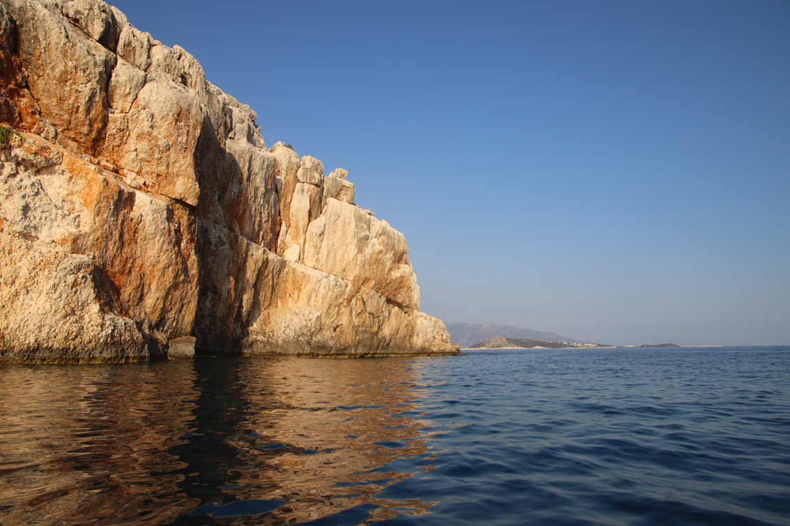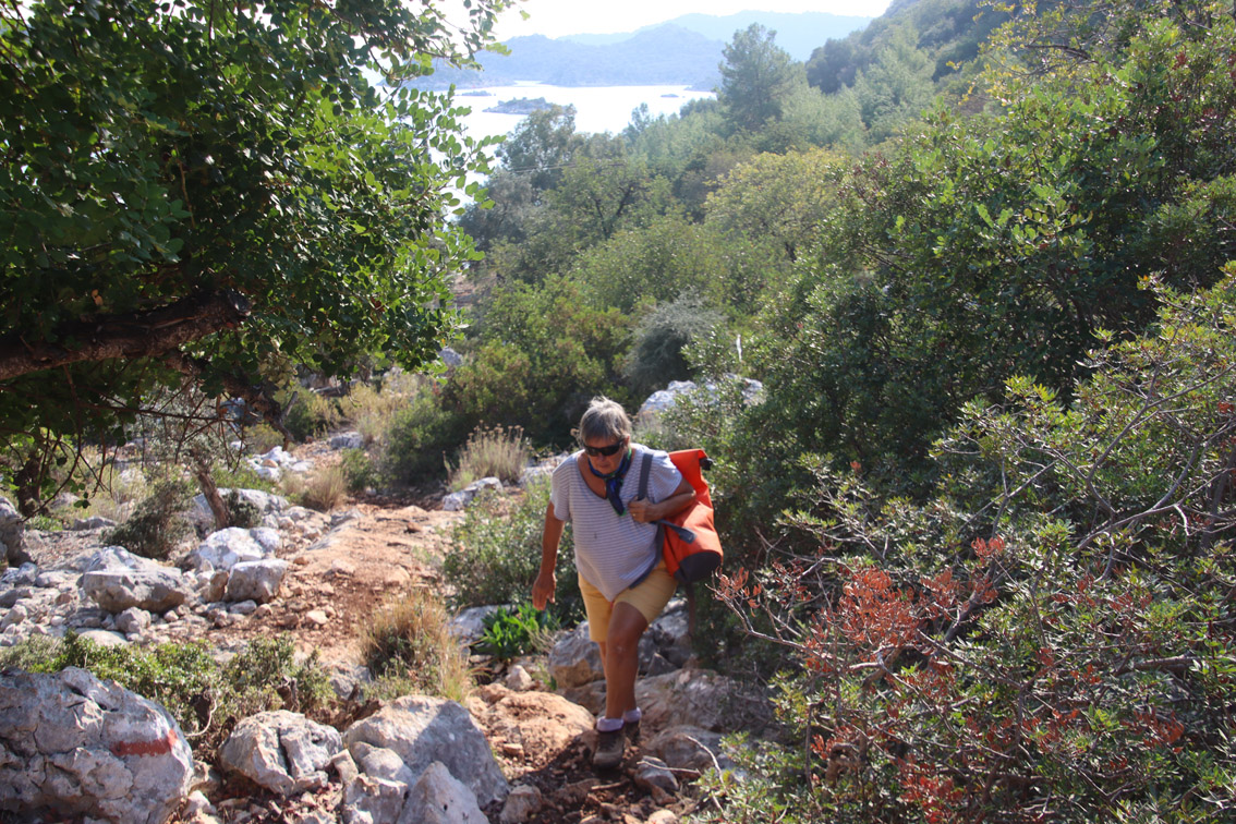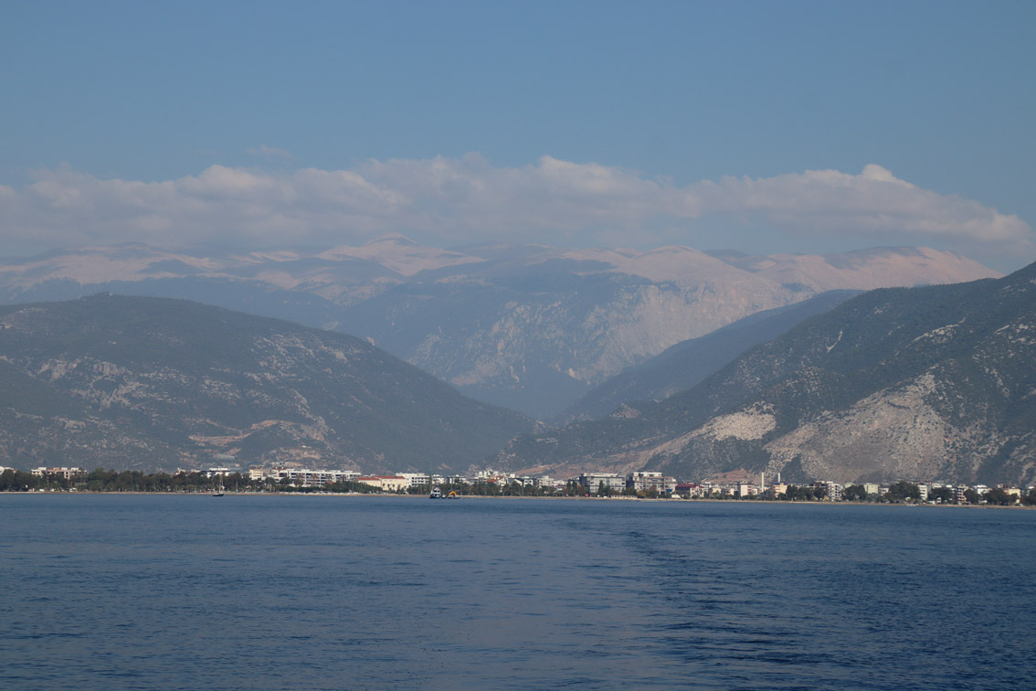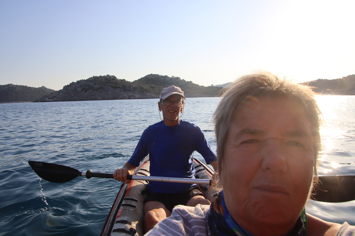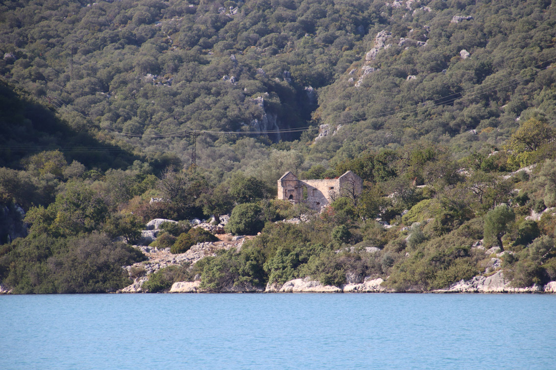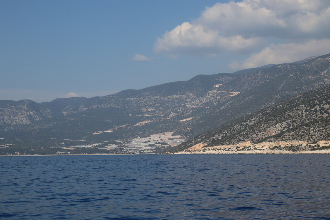 Cette partie de la côte sud-ouest de la Turquie est bordée d’îles et d’îlots et découpée de baies bien protégées formant un vrai labyrinthe: un paradis pour faire du rase cailloux en toute décontraction surtout quand le temps s’y prête comme aujourd’hui: vent faible, mer plate, ciel bleu limpide et la mer transparente . La moindre crique est parait-il constellée de ruines le plus souvent antiques.