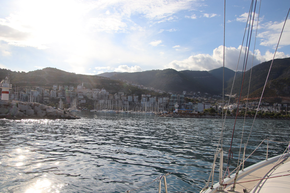 La marina est très grande et assez luxueuse mais à 74 euros la nuit, elle n’est pas donnée (c’est pourtant l’une des moins cher de toute la côte) alors, comme le dédouanement c’est bien passé on va essayer de repartir dès demain matin. On passe aussitôt au distributeur prendre des livres Turques , on achète une carte SIM à la boutique d’à côté, on fait quelques courses et on lave le bateau. Après une bonne nuit de repos et une bonne douche on refait le plein de gaz oil ( à 1,43 euros le litre au lieu de 2,30 à Chypre, sur 200 litres, çà valait le coup d’attendre) et c’est reparti: à nous la côte Turque .