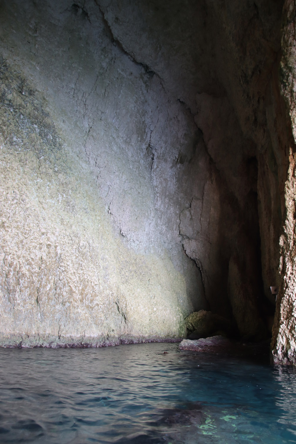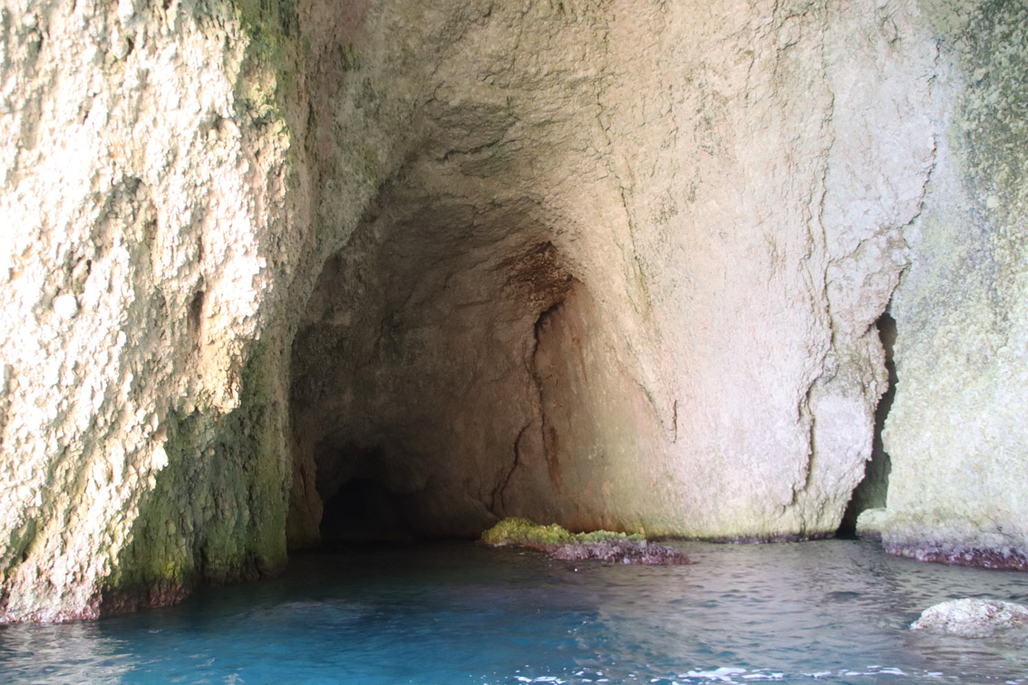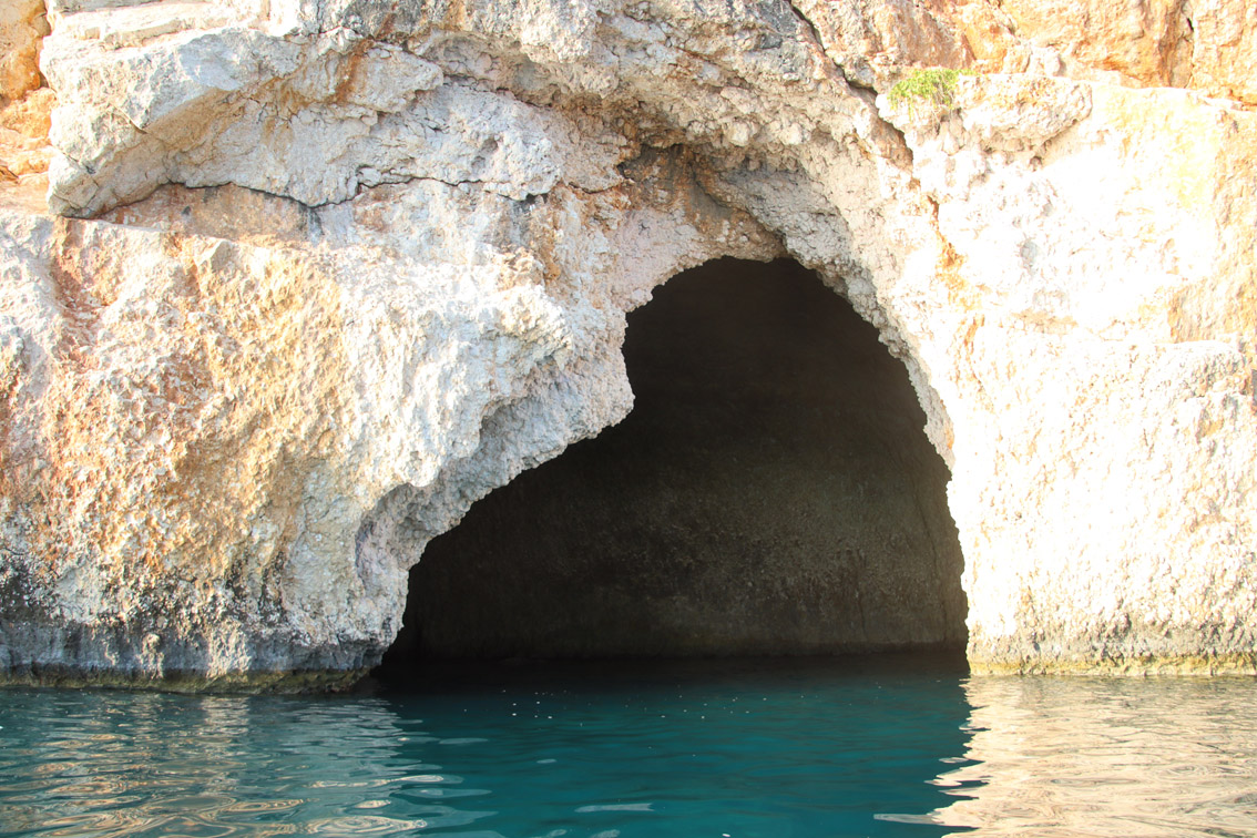 l’endroit est truffé de ruines et de grottes nous avons plaisir à suivre les chemins des chèvres et à explorer les îlots en kayak (ici la grotte de Korsan Magarasi)