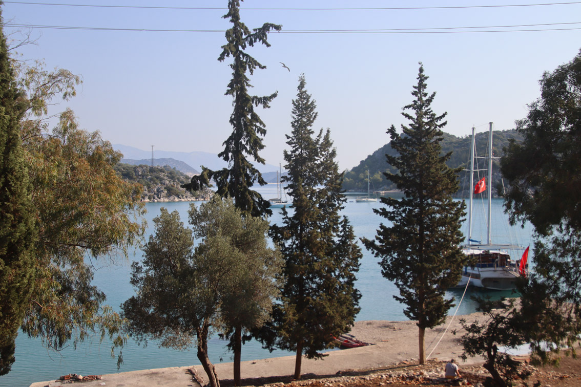 Sans perdre de temps et mettons le cap sur Kekova et plus précisément la baie de Gökkaya, une petite crique coincée entre plusieurs îlots (Asrili et Kisneli et la terre, une sorte de minuscule port naturel parfaitement protégé, loin de toute route ou habitation: l’endroit idéal pour décompresser un jour ou deux et s’acclimater à l’atmosphère « vacances » que dégage cette côte.