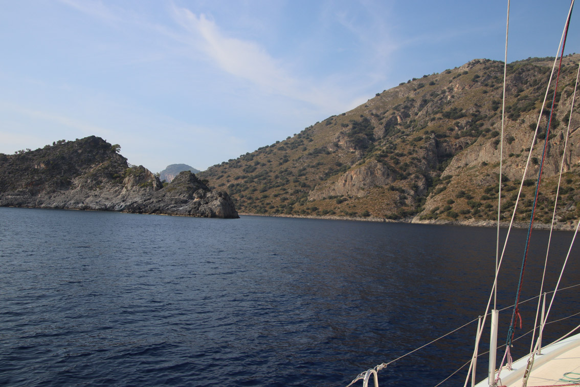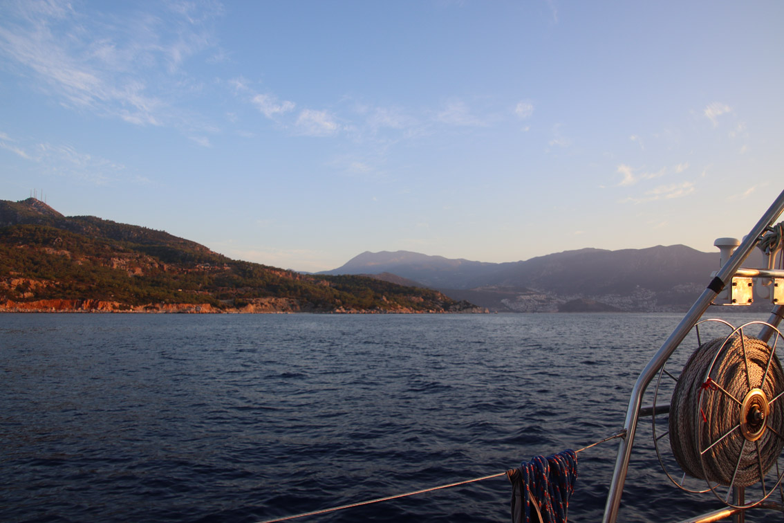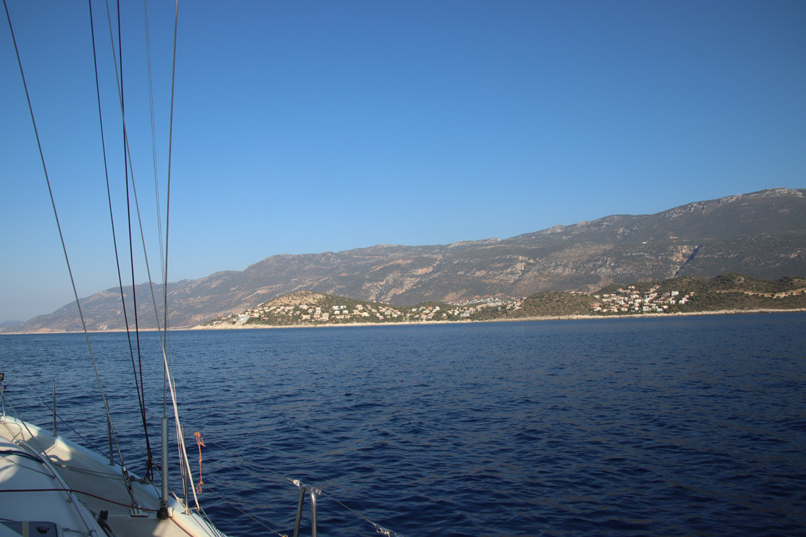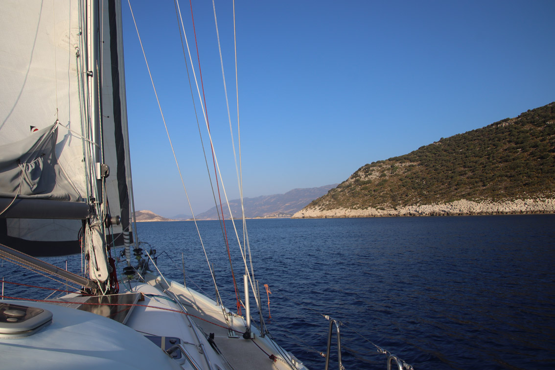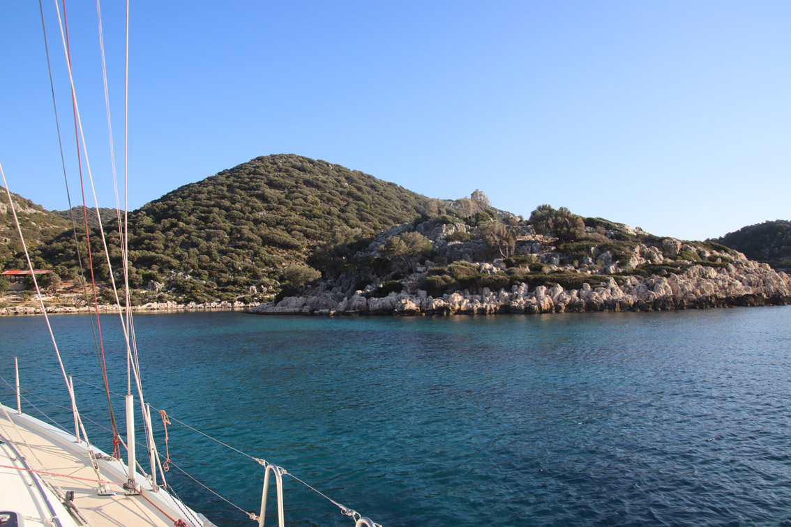 Départ aux aurores pour la baie suivante à une trentaine de milles. Nous serons toujours sur la côte de l’antique Lycie mais dans la Turquie d’aujourd’hui nous allons passer de la province d’Antalya à celle de Muğla.