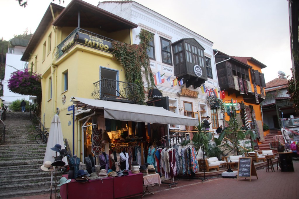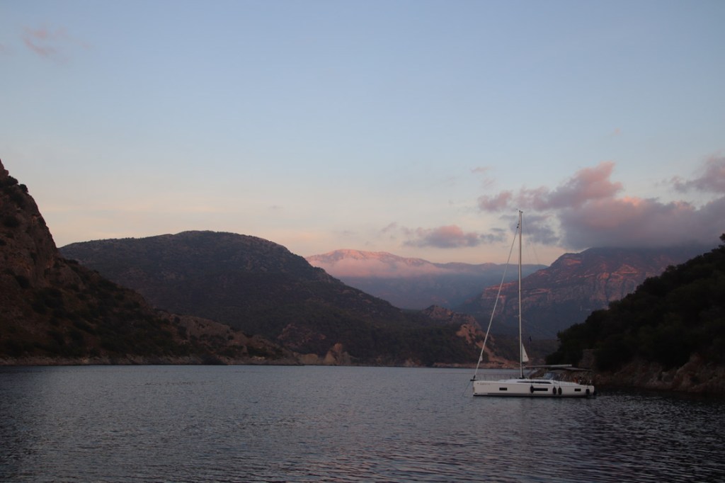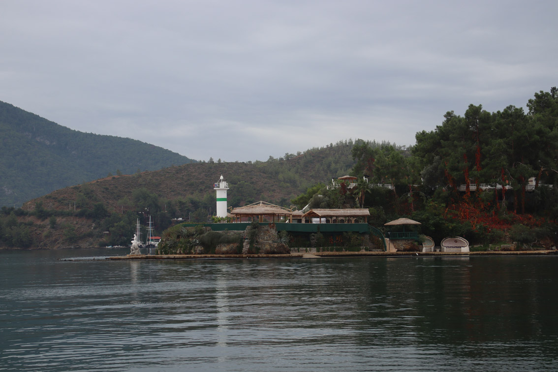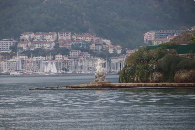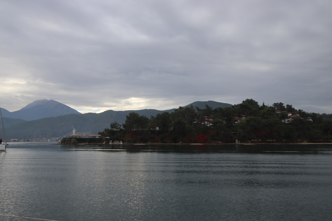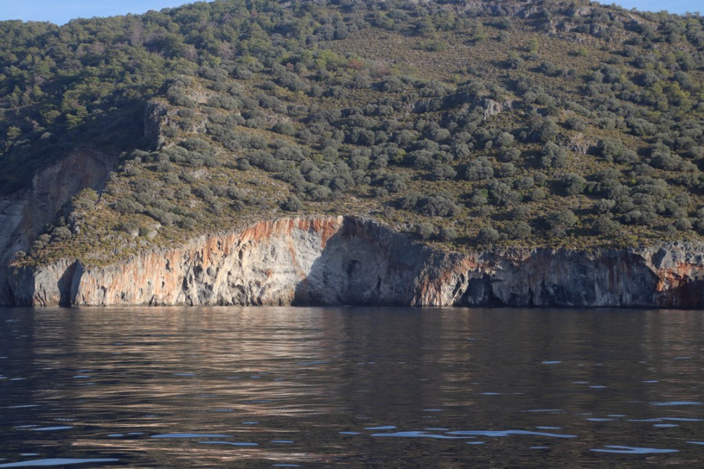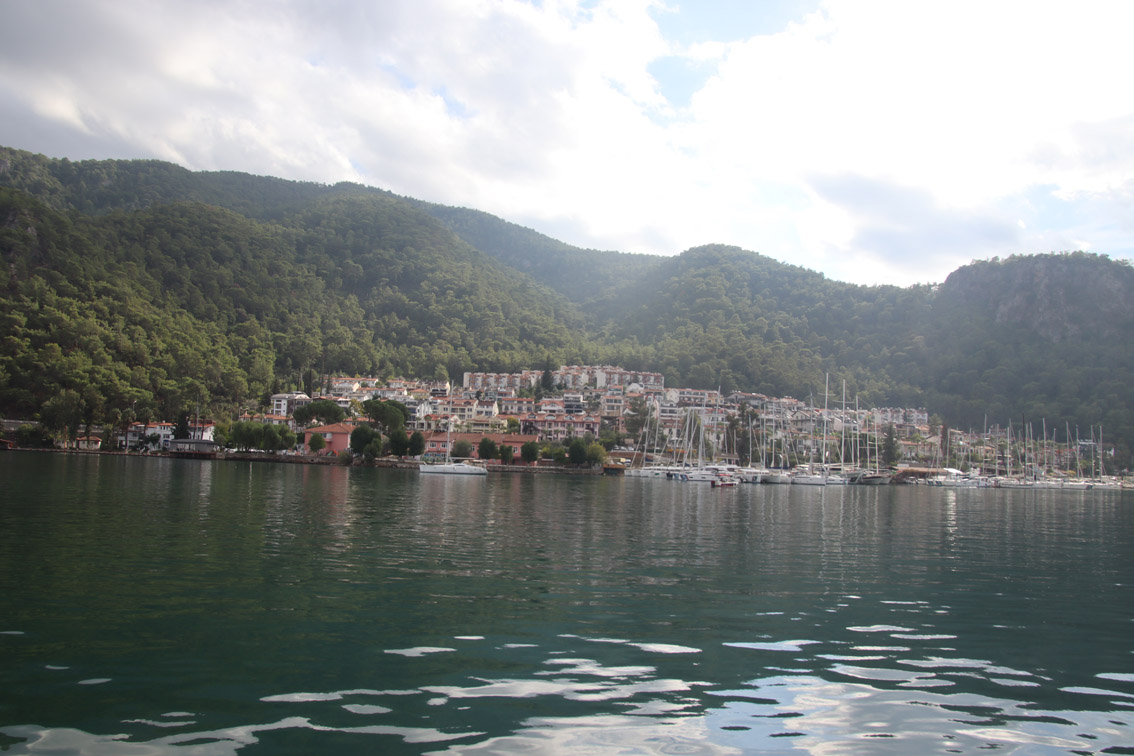 Une fois passé les falaises effondrées des imposants caps Dödukkbasi et Burn, le paysage change du tout au tout. Les pentes arides ou poussent quelques rares buissons épineux, font place à d’autres pentes toujours aussi escarpées mais couvertes d’une forêt de conifères assez dense. En pénétrant dans la baie proprement dite le contraste est encore plus fort. La rive sud est bordée d’hôtels et de résidence de luxe et quand on passe la pointe de Paçariz et sa statue de sirène, le paysage prend un peu des allures de lac Italien.