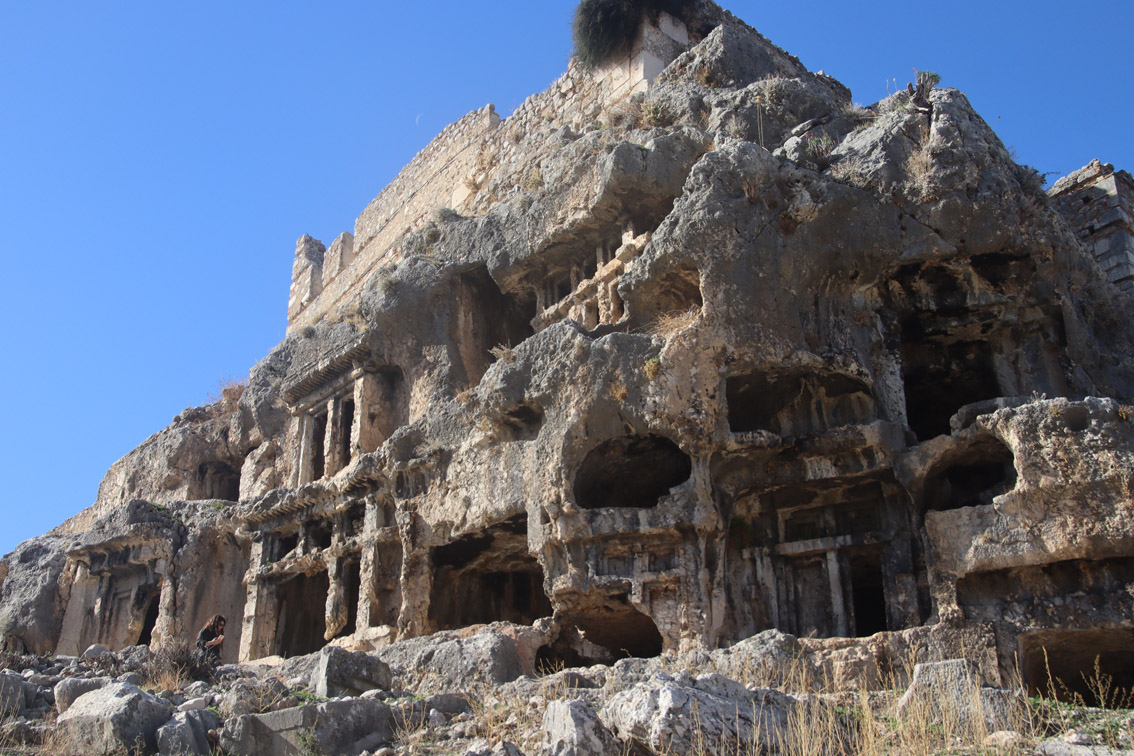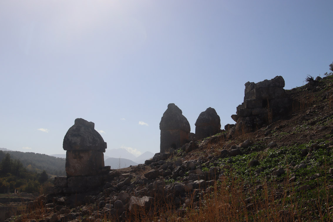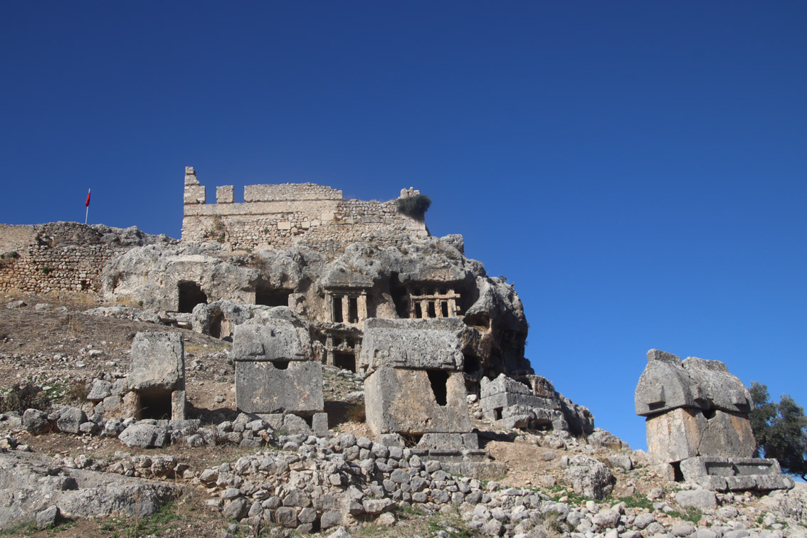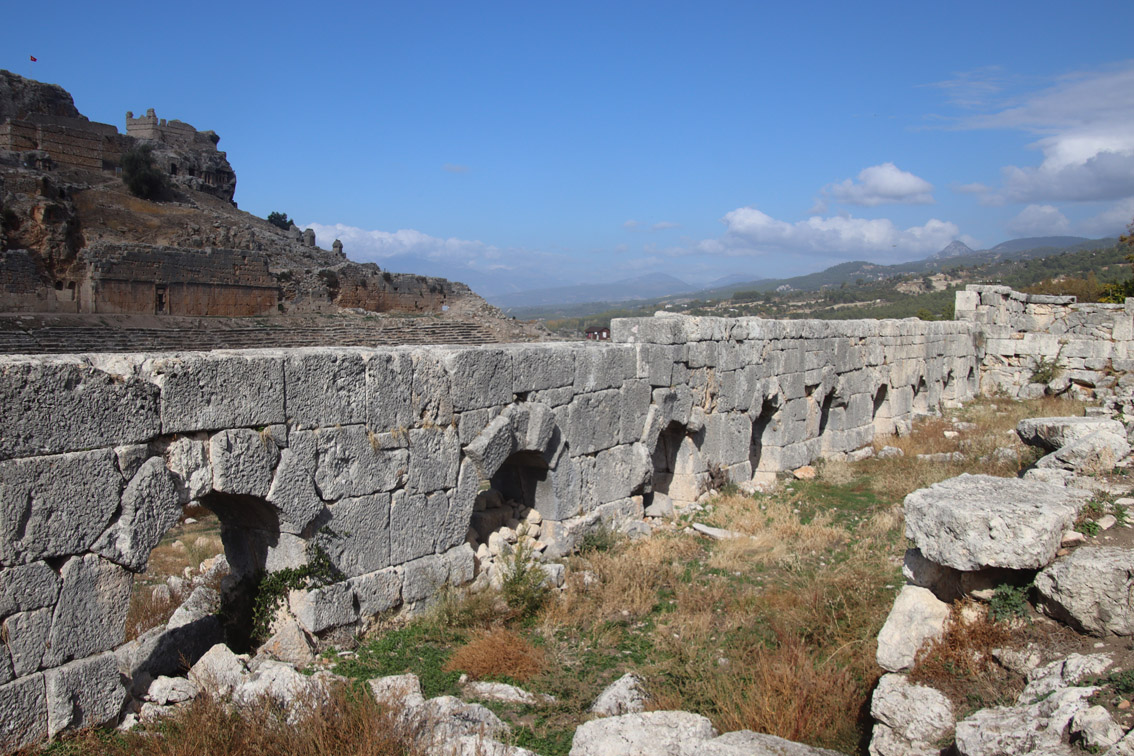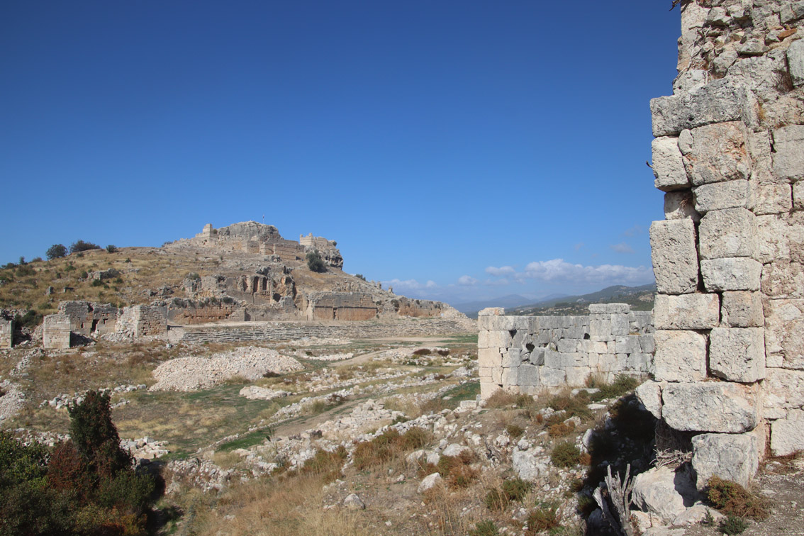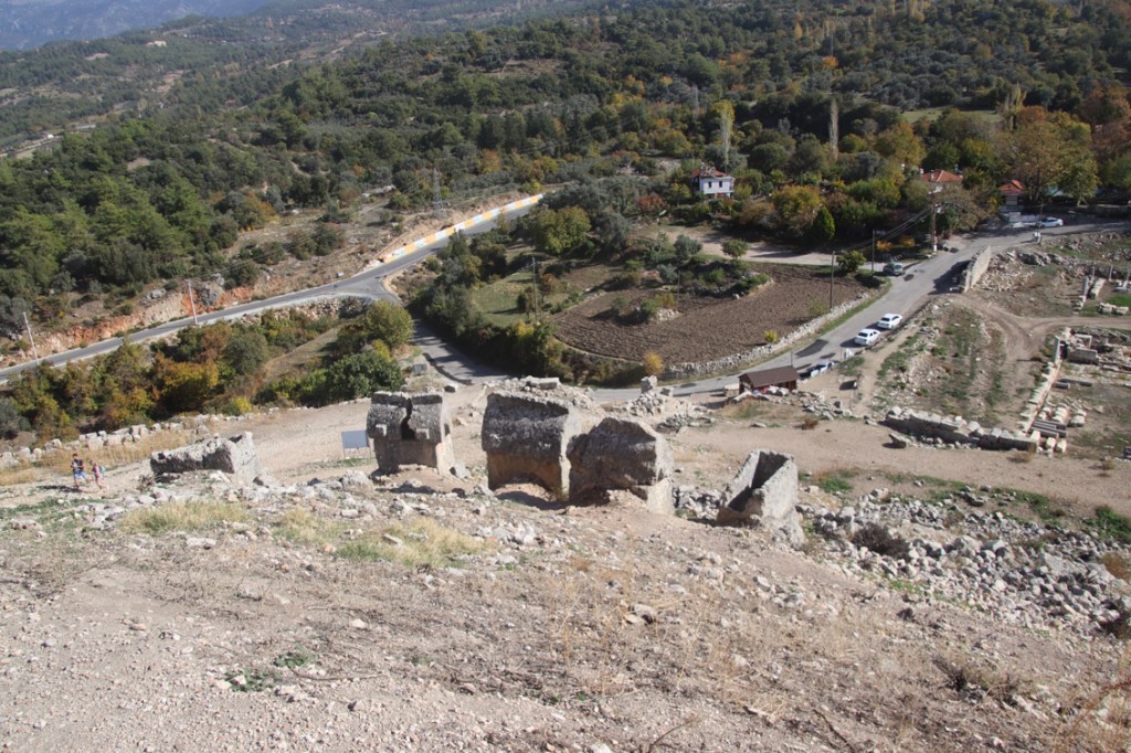 Comme le temps au large ne semble pas vouloir s’améliorer pour les prochains jours (on comprend pourquoi ici la saison se termine au 15 Novembre) nous avons décidé de louer une voiture et d’aller voir un peu l’intérieur du pays. Notre but: les ruines de l’antique cité Lycienne de Tlos.