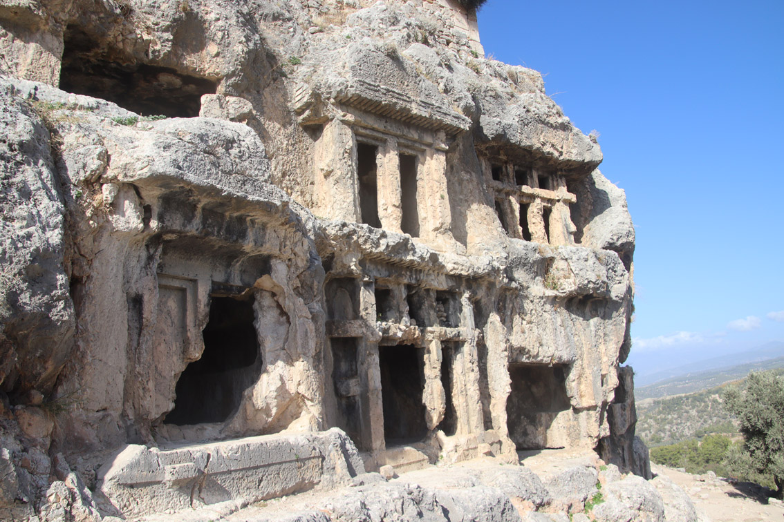 Les origines de la ville remonte à plus de 4000 ans. Au 15ème siècle av. JC elle était déjà l’une des plus importantes métropoles de la région. La nécropole dont les tombes sont creusées à même le piton rocheux serait dédié à Bellérophon le cavalier du fameux cheval ailé Pégase. Envahie par les Perses en 540 av. JC, c’est sous leur domination qu’elle connu son apogée. Elle fut ensuite Grecque (beaucoup des construction encore visibles aujourd’hui datent de cette époque) puis Romaine . Les Romains en firent le chef lieu d’une province autonome au premier siècle, ils ont aussi beaucoup contribué à l’architecture de la ville avec notamment le théâtre. Pendant l’époque Byzantine elle est devenue chrétienne avec le statut d’évêché.
