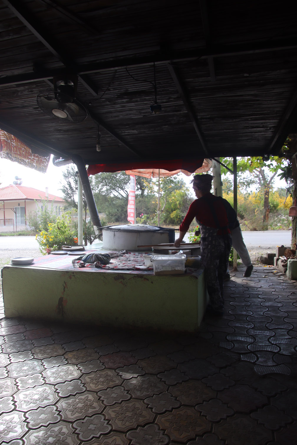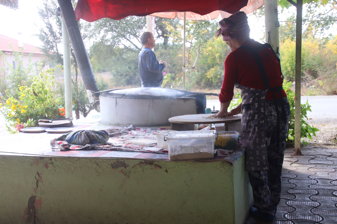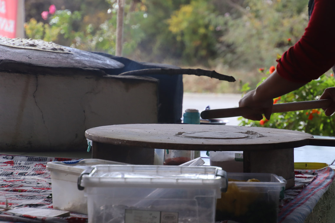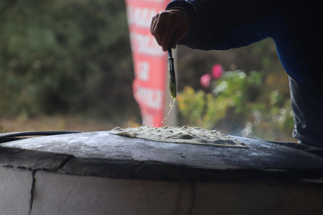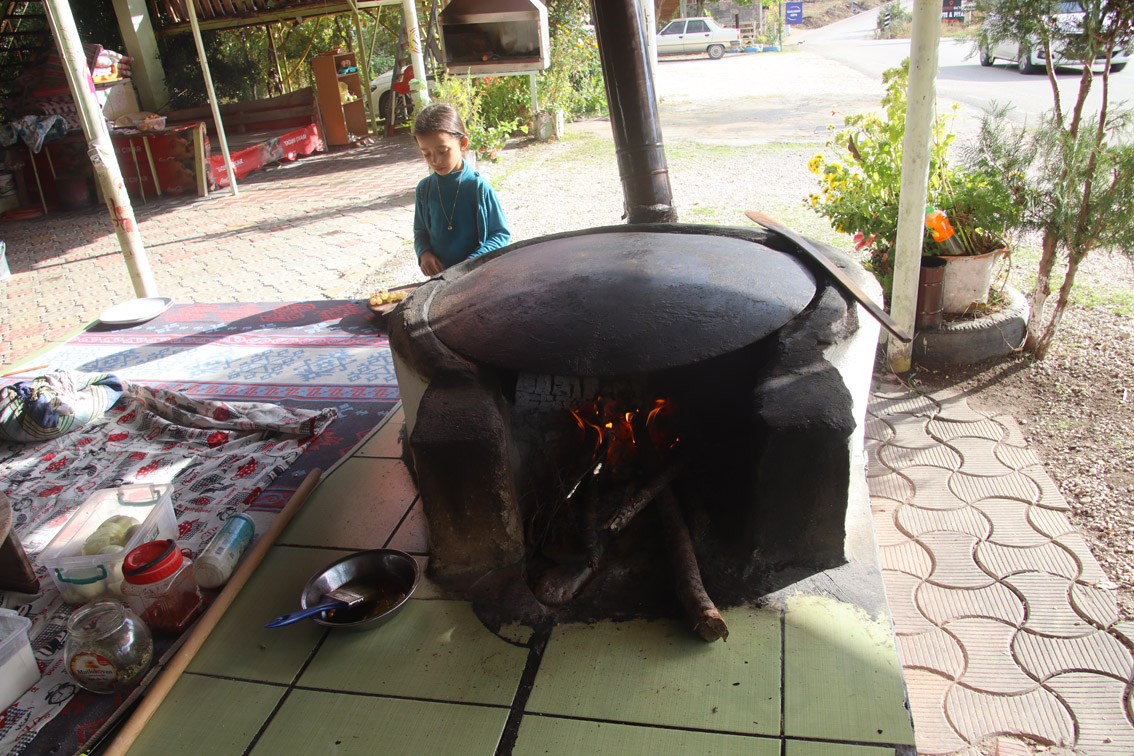 Après une bonne matinée passée à arpenter ses ruines spectaculaires, la faim se fait sentir. La saison étant finie, beaucoup de resto sont fermés heureusement sur le bord de la route on en trouve un qui est encore ouvert! Et on est bien tombé, c’est un restaurant traditionnel la cuisine est délicieuse et les hôtes fort sympatiques. On assistera en direct à la confection des sufkas les fameuses crêpes Turques plus fines que du papier.