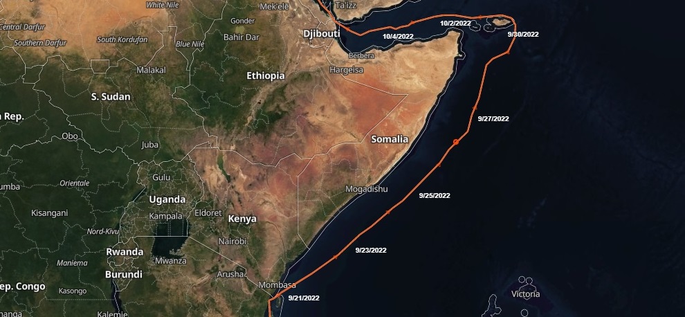 Nous avons atteint Ras Darisha, la pointe la plus Est de Socotra le 29/09/2022 couvrant les 1500 milles depuis Tanga en 9 jours: une première partie de traversée rapide et agréable. Par contre, le contournement de Socotra a été plus compliqué. Le relief de l’île étant très escarpé l’alizé est très perturbé sous son vent. Même à 20 ou 30 milles au large de l’île et on a tout eu, du calme plat jusqu’à des rafales soudaines à 20 nœuds ou plus plusieurs fois par heure : pas de tout repos… Une fois passé la point Ouest de Socotra on a retrouvé un bon 15 à 20 de nœuds de travers bien établi avec un peu de mer.