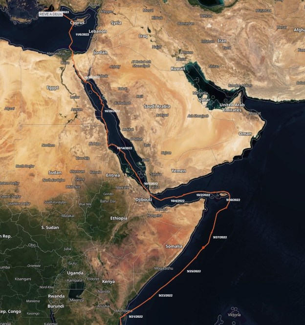 Et bien sûr, la plus grande partie du parcours se fait dans la zone dite à haut risque (High Risk Area: HRA). C’est là qu’au cours des 2 dernières décennies ont eu lieu de nombreuses attaques de pirates, jusqu’à 2020 principalement d’origine Somalienne mais plus récemment Yéménite. La plus grande prudence et une vigilance de tous les instants sont donc très fortement recommandées. Il est aussi vivement conseillé de s’inscrire auprès des organismes responsables de la sécurité dans la région et de suivre leur recommandations: UKMTO, MSCHOA (opération Atalante) et pour les navigateurs Français, notre Marine Nationale (MICA Center et ALINDIEN). L’inscription se fait très facilement sur leurs sites respectifs quelques jours où même quelques semaines avant le départ, c’est entièrement gratuit.