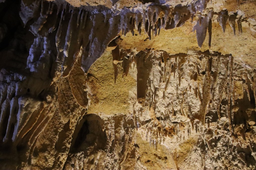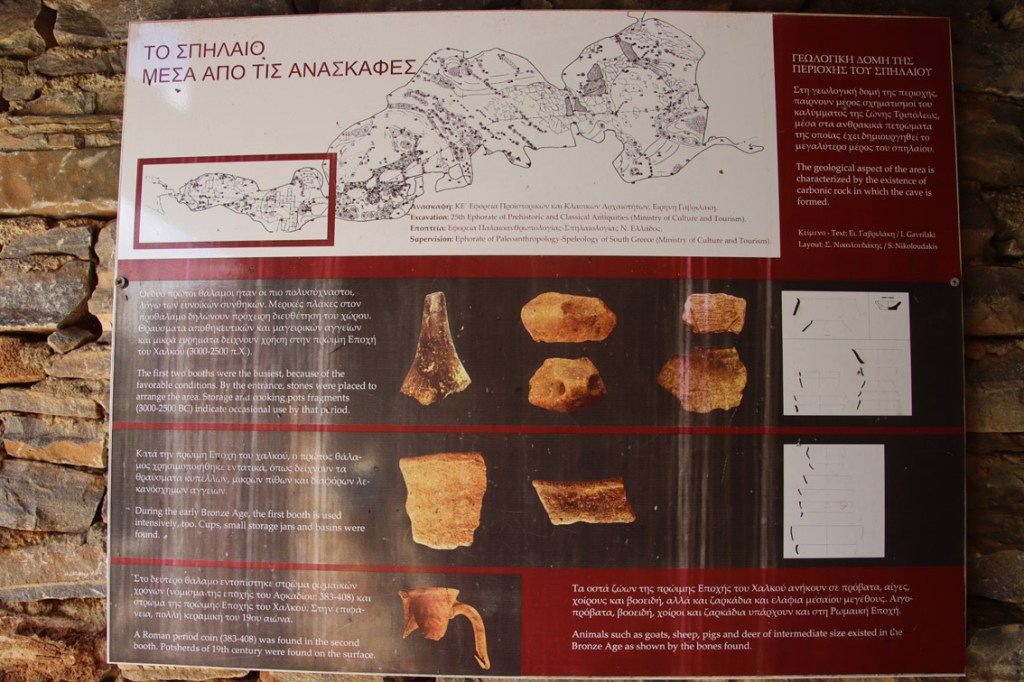 Le grottes de Sfendoni sont à mi-pente d’une colline escarpée, on peut y arriver en voiture. Ce n’est pas le gouffre de Padirac ni les grottes de Han mais les 3 ou 4 salles ouvertes à la visite sont très belles, avec des concrétions remarquables.