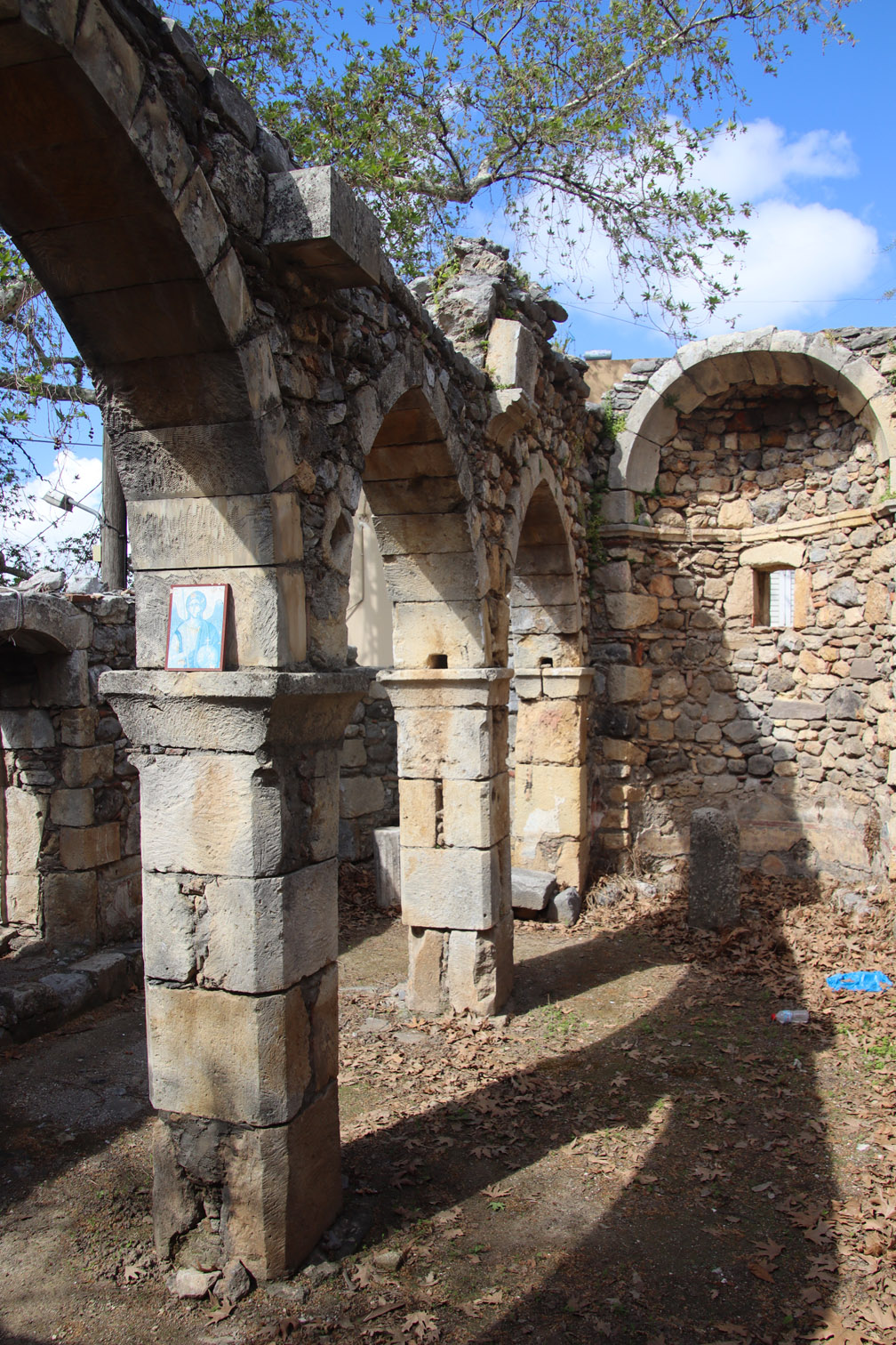 Lors de la phase la plus sanglante de la répression Turque, les résistants et leurs familles s’étaient naturellement réfugiées là et se sont retrouvées assiégées par les troupes Turques. Après plusieurs jours de combats acharnées les canons turcs ont finalement eu raison de la porte d’entrée et les femmes et enfants enfermés à l’intérieur se sont fait sauter plutôt que de tomber entre les mains de l’ennemi. Cette épisode a beaucoup ému l’opinion internationale et a contribué à renforcer la détermination de la résistance Crétoise tout en affaiblissant fortement la position des Turcs (pour plus de détails, voir cette page).