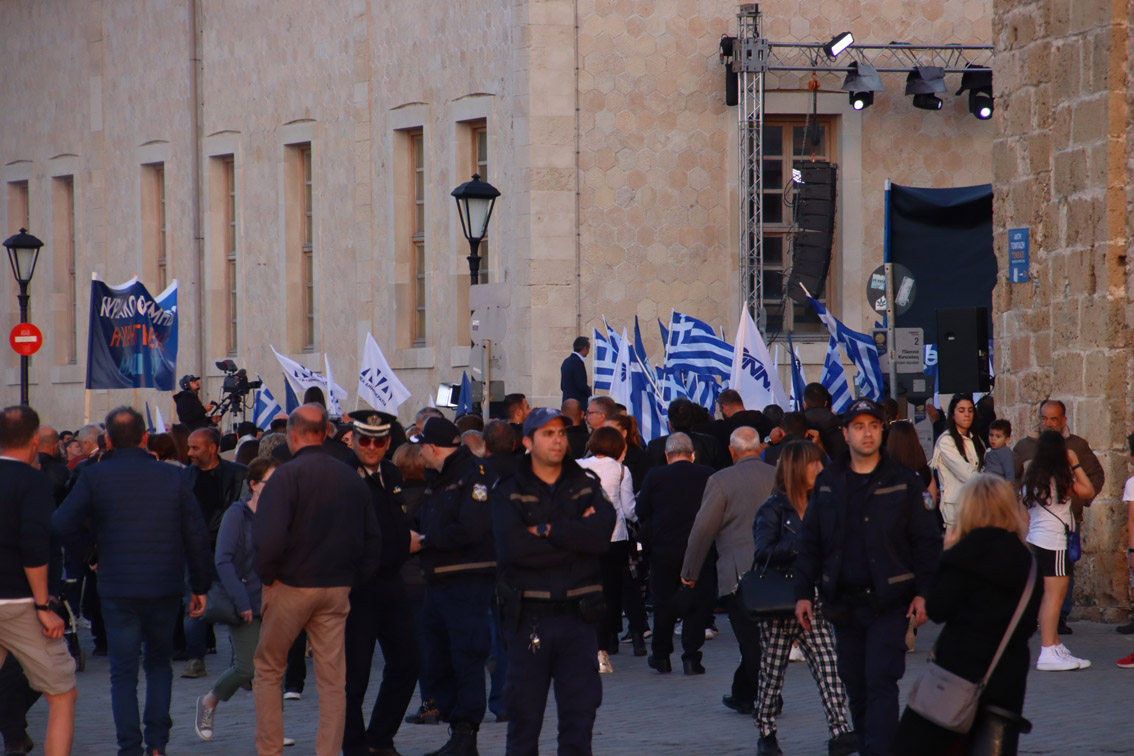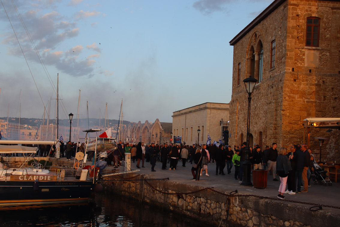 Samedi soir, le premier ministre fait une allocution sur un podium dressé sur la place de la mairie à 2 pas d’où nous sommes amarrés. Depuis le matin la police quadrille le quartier, les pelotons des forces anti émeute (l’équivalent de nos CRS) se planquent dans les ruelles adjacentes, les hommes des services spéciaux en treillis camouflés et lunettes de soleil fument près de leurs véhicules, on voit même des chiens renifleurs à la recherche d’éventuels explosifs. A l’heure prévue il y a beaucoup de monde sur la place, un peu de musique techno pour patienter et finalement le premier ministre arrive, applaudissements, quelques feux à main brûlent sur la jetée et l’homme fait un court speech, ré-applaudissements et il est parti. Pas de concert de casseroles, pas de casseur ni de gilet jaunes : y savent pas y faire les Grecs…