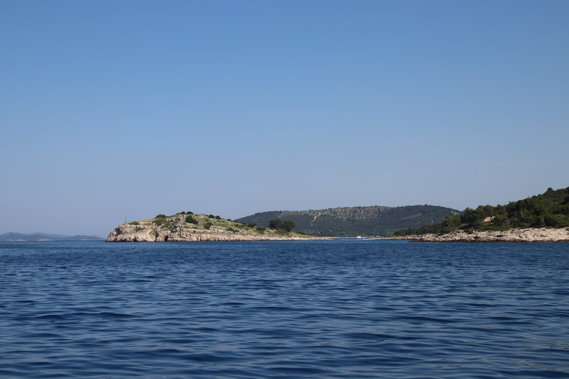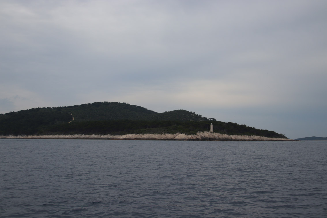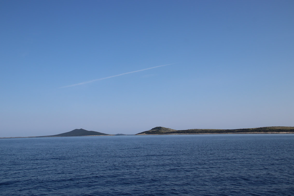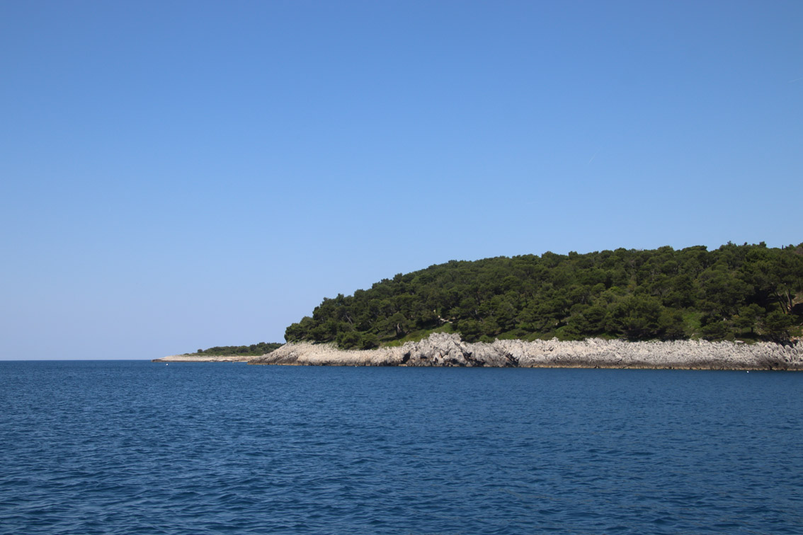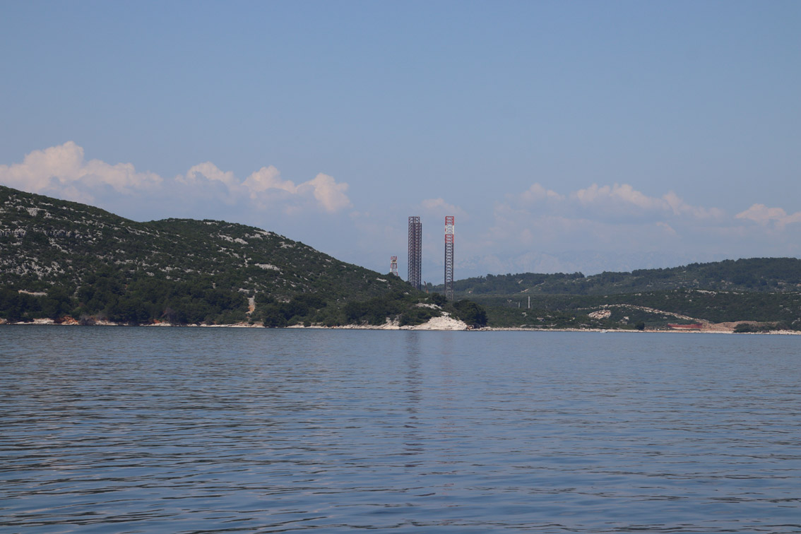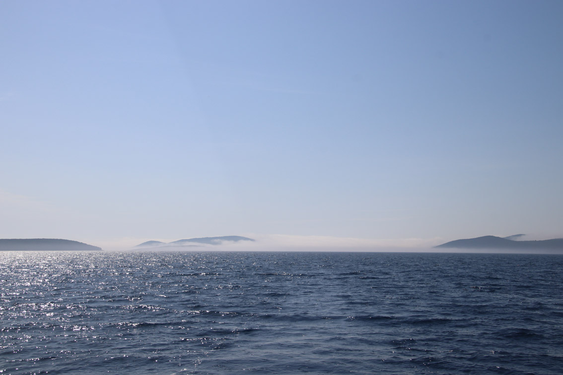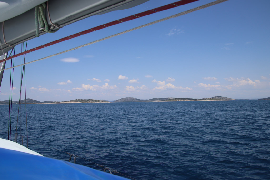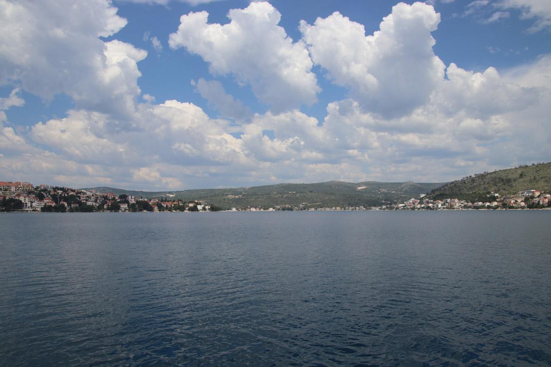 Et ce fut en effet un passage éclair, mer plate, vent d’est 15 à 18 nœuds, c’est à 8 nœuds que nous traversons le canal Kvarner. Nous avons levé l’ancre de Sunfarni à 07:10, à 12:10 nous la mouillons dans l’anse de Paltana (Banjole) en Istrie (quelques km au Sud de Pula. Cette baie aurait pu être très jolie si elle n’avait pas été défigurée par un hôtel en béton aux couleurs criardes d’un côté et d’un lotissement de luxe mais pas plus joli de l’autre. Mais l’abri est bon sauf du plein Ouest et le fond de très bonne tenue.