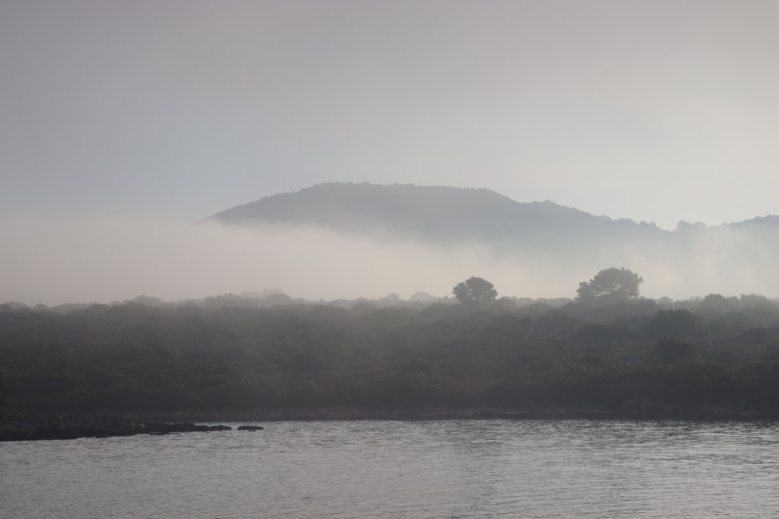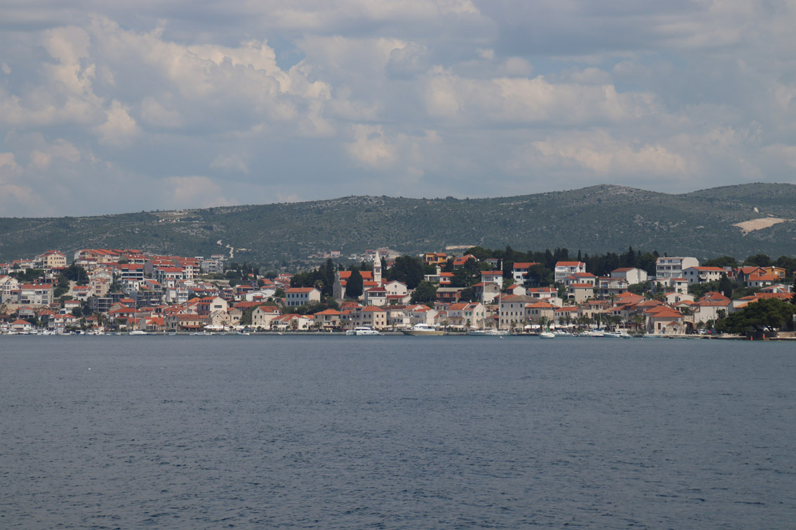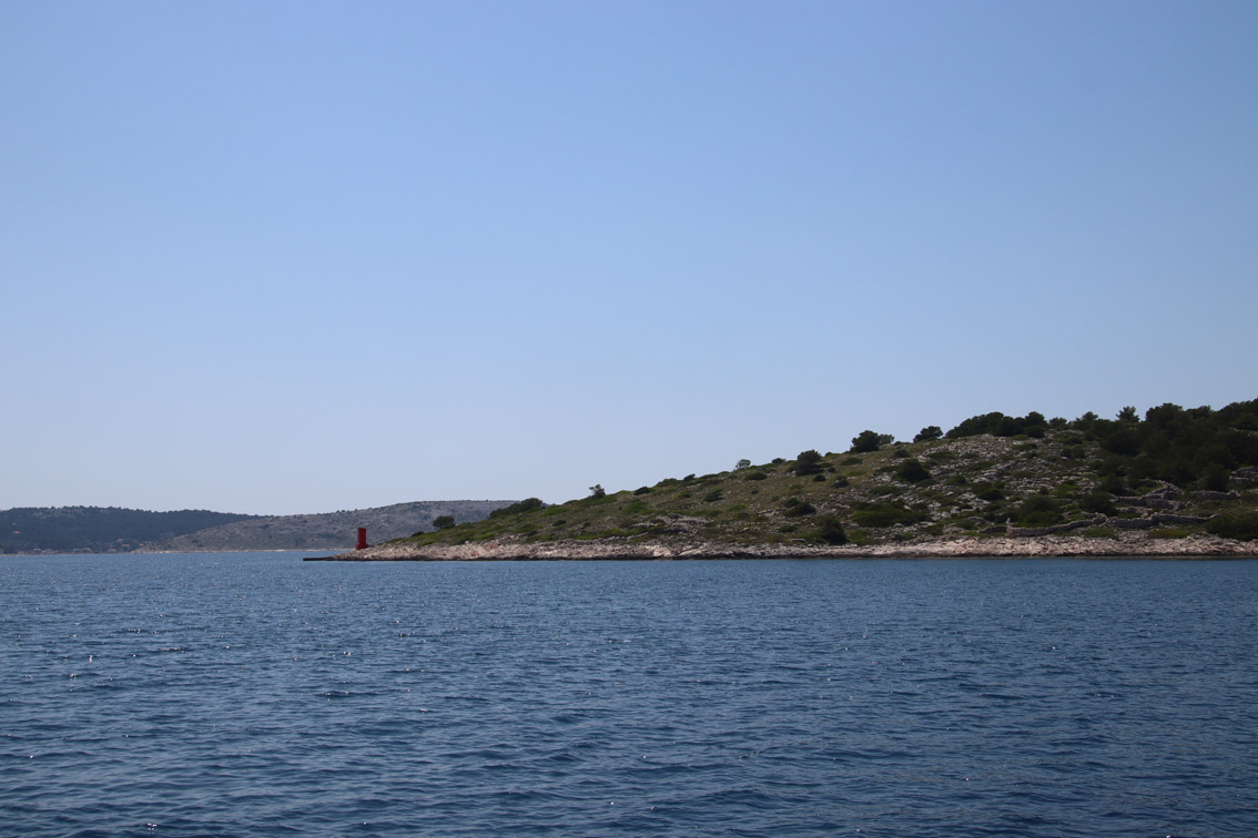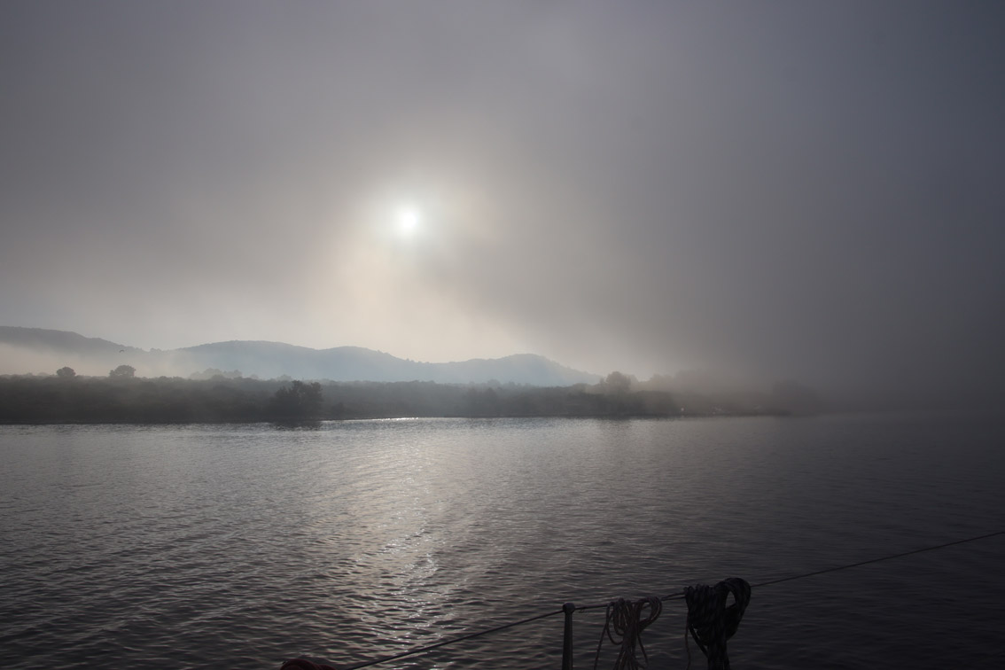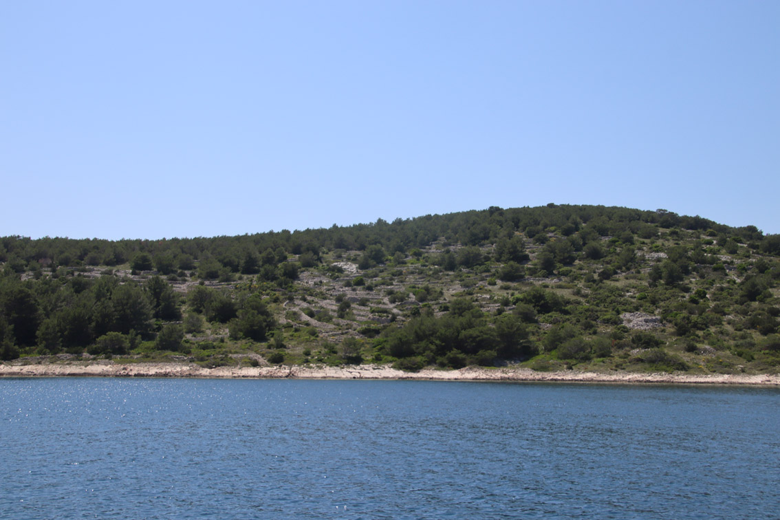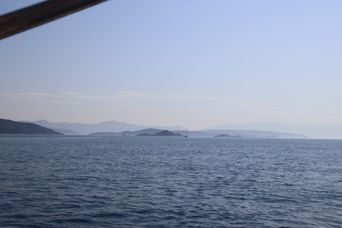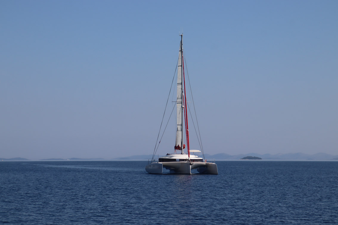 Et ce fut en effet un passage éclair, mer plate, vent d’est 15 à 18 nœuds, c’est à 8 nœuds que nous traversons le canal Kvarner. Nous avons levé l’ancre de Sunfarni à 07:10, à 12:10 nous la mouillons dans l’anse de Paltana (Banjole) en Istrie (quelques km au Sud de Pula. Cette baie aurait pu être très jolie si elle n’avait pas été défigurée par un hôtel en béton aux couleurs criardes d’un côté et d’un lotissement de luxe mais pas plus joli de l’autre. Mais l’abri est bon sauf du plein Ouest et le fond de très bonne tenue.