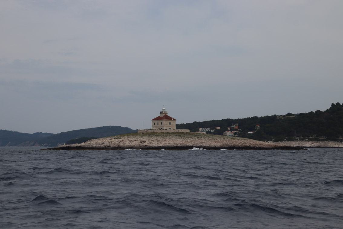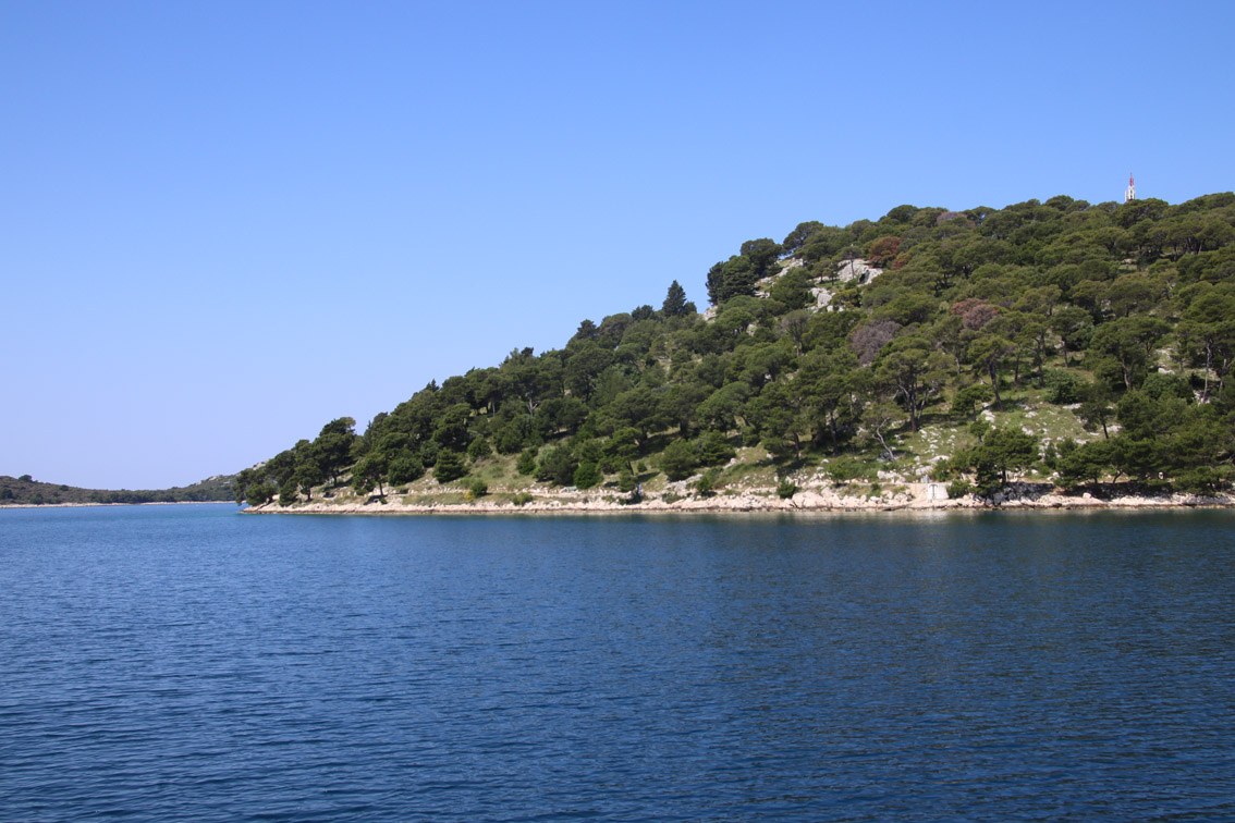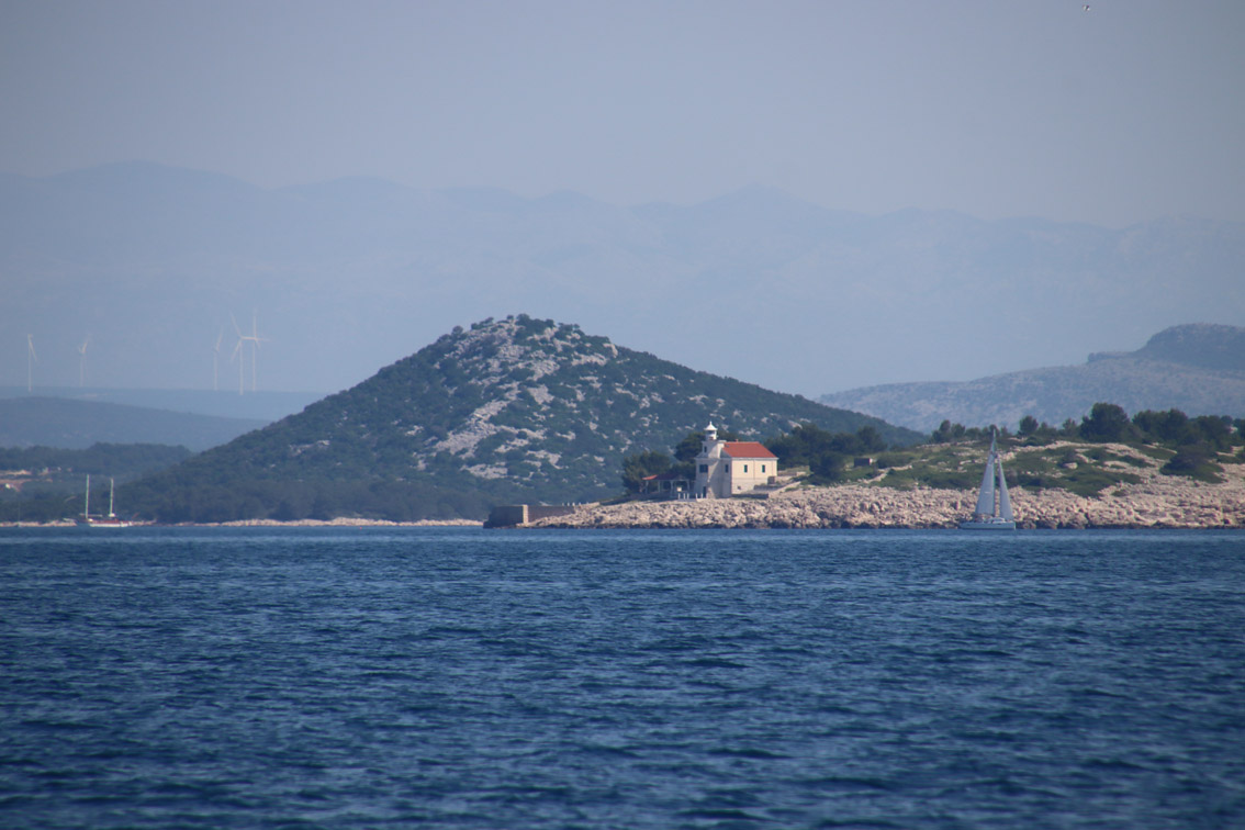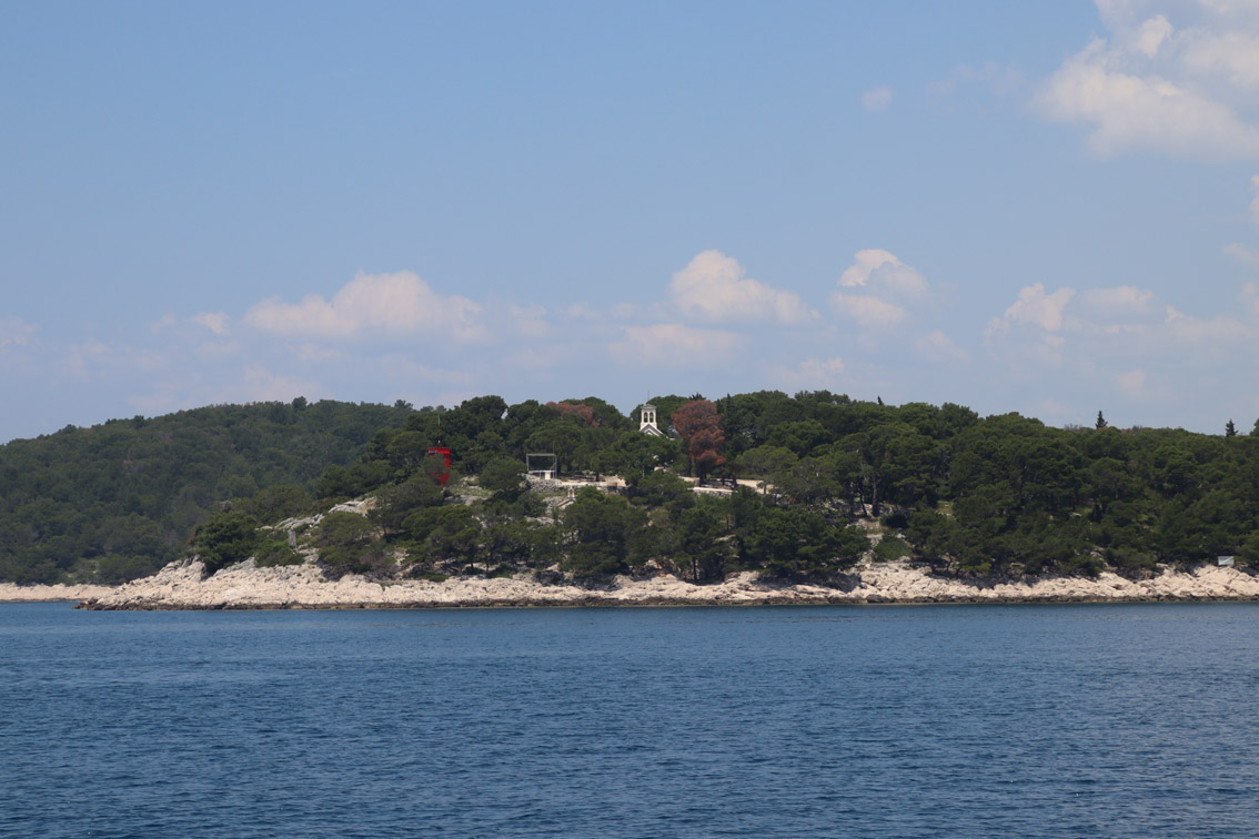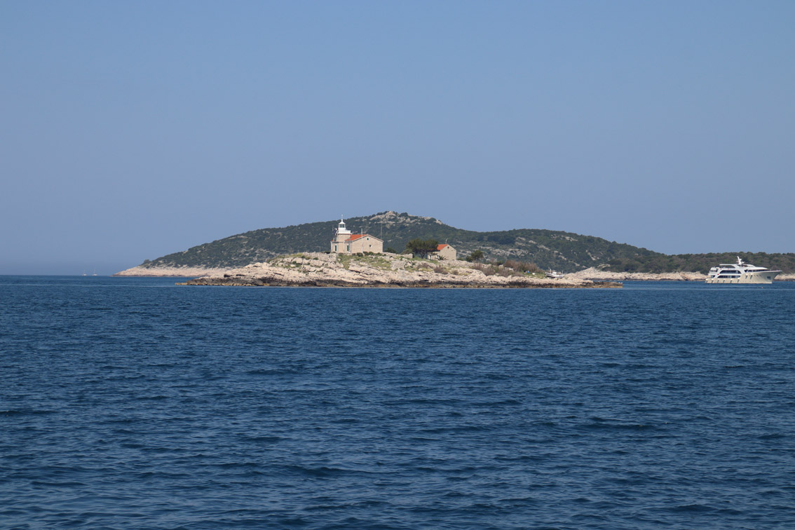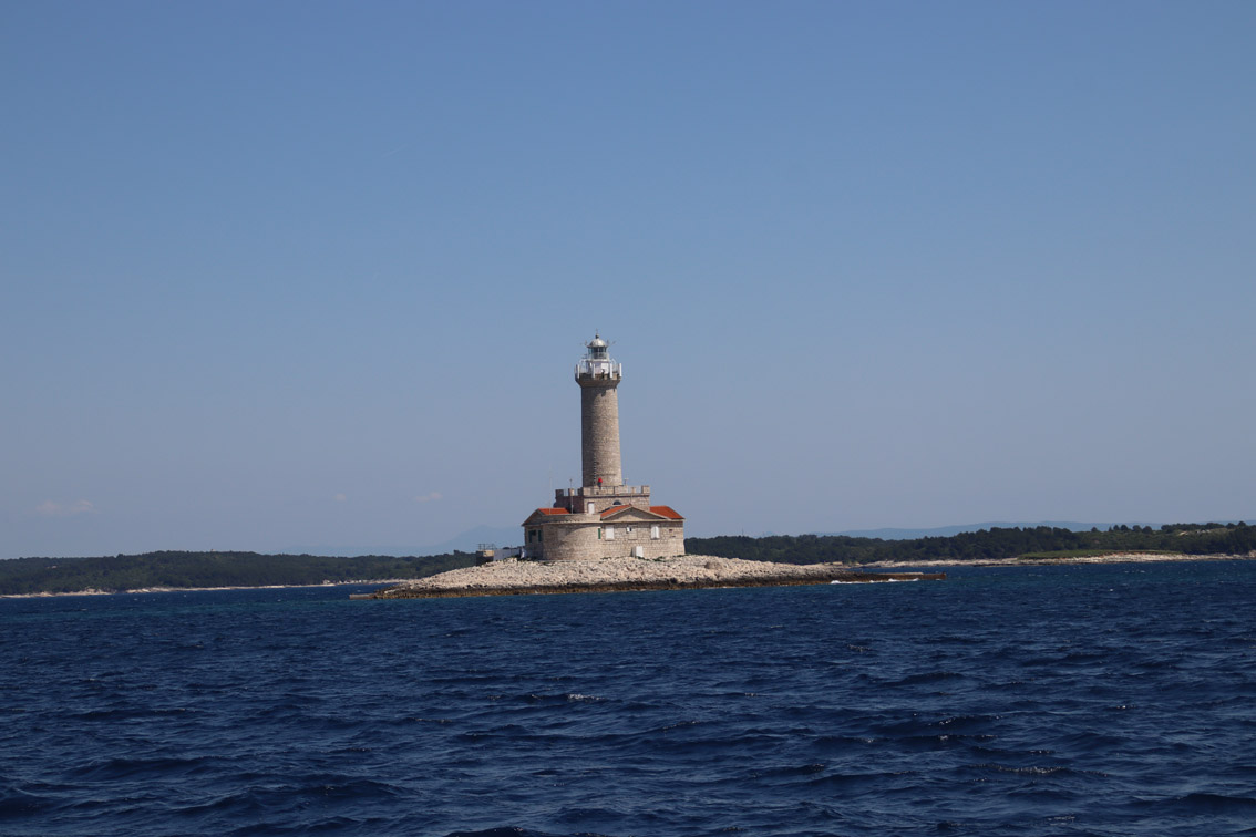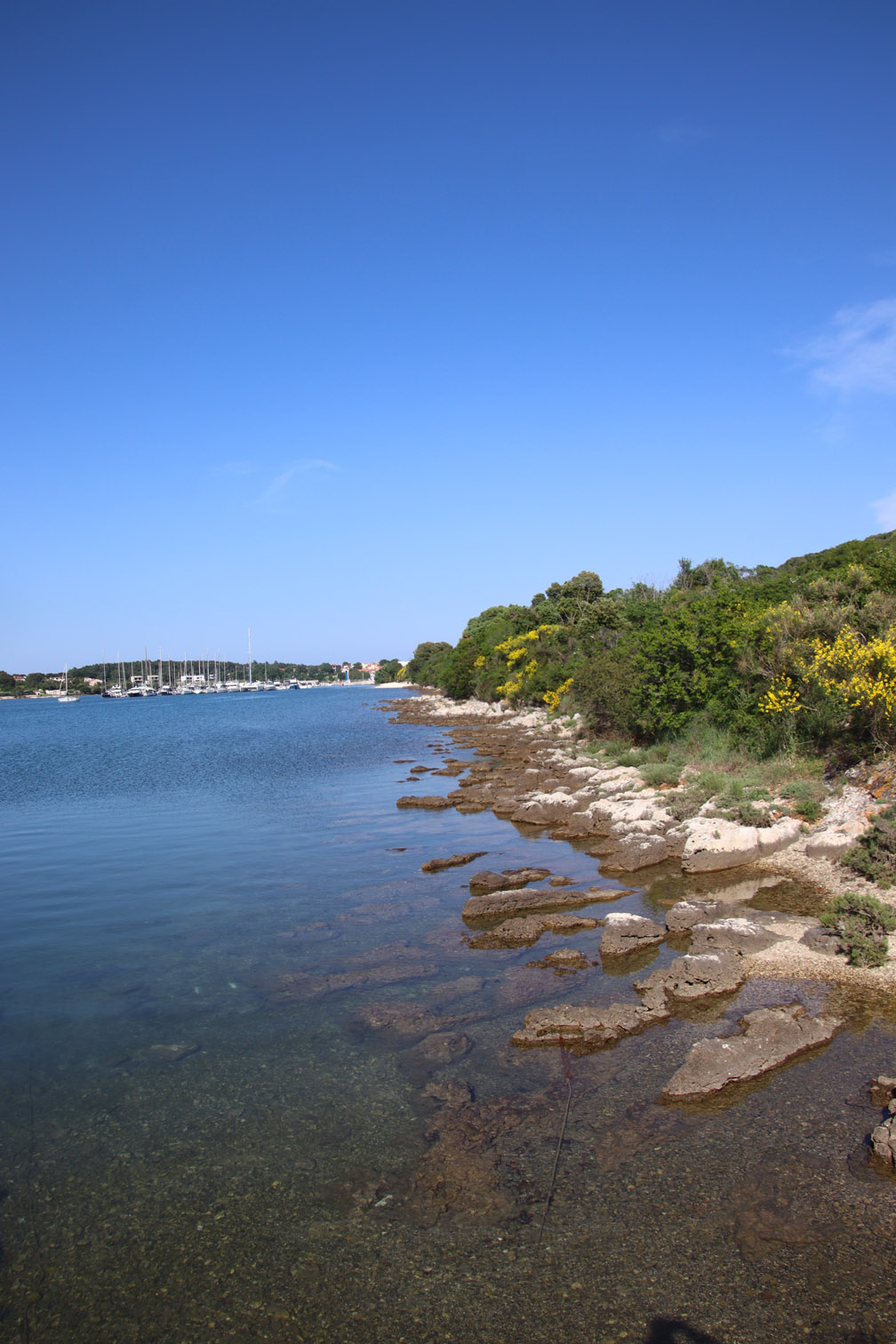 Et ce fut en effet un passage éclair, mer plate, vent d’est 15 à 18 nœuds, c’est à 8 nœuds que nous traversons le canal Kvarner. Nous avons levé l’ancre de Sunfarni à 07:10, à 12:10 nous la mouillons dans l’anse de Paltana (Banjole) en Istrie (quelques km au Sud de Pula. Cette baie aurait pu être très jolie si elle n’avait pas été défigurée par un hôtel en béton aux couleurs criardes d’un côté et d’un lotissement de luxe mais pas plus joli de l’autre. Mais l’abri est bon sauf du plein Ouest et le fond de très bonne tenue.