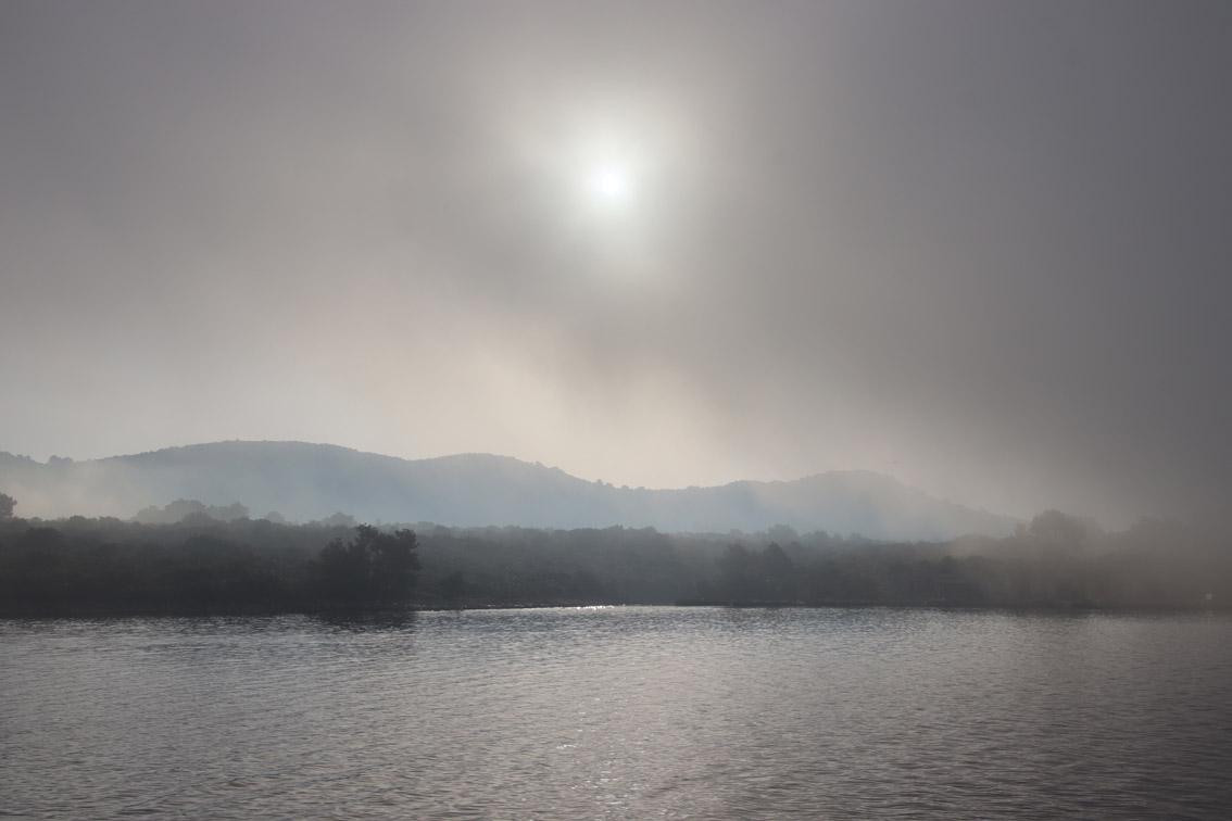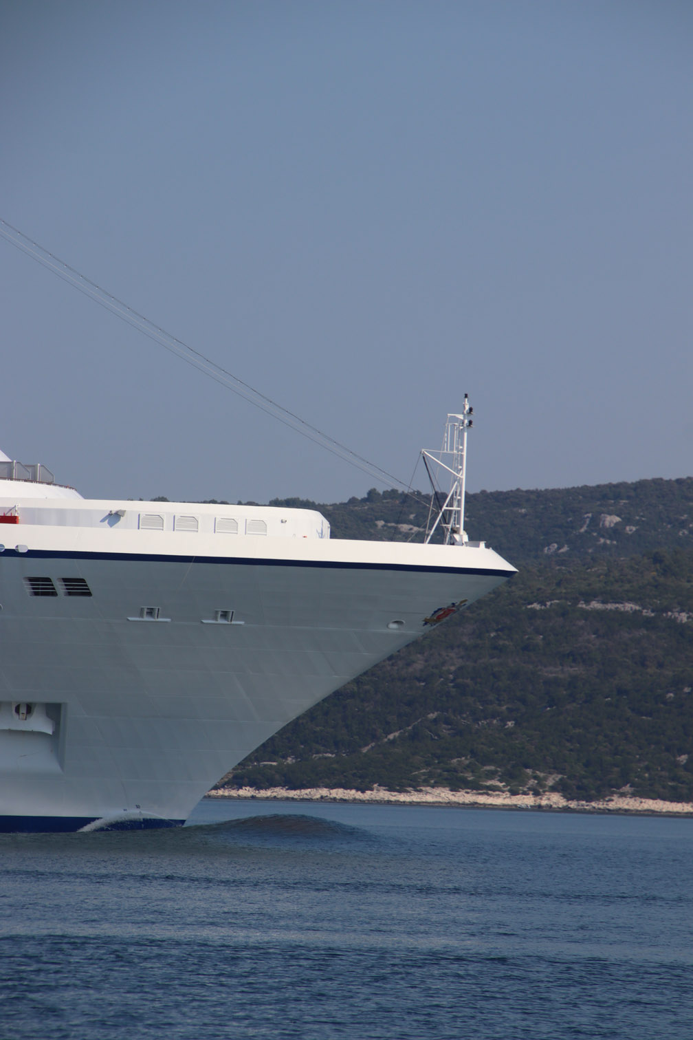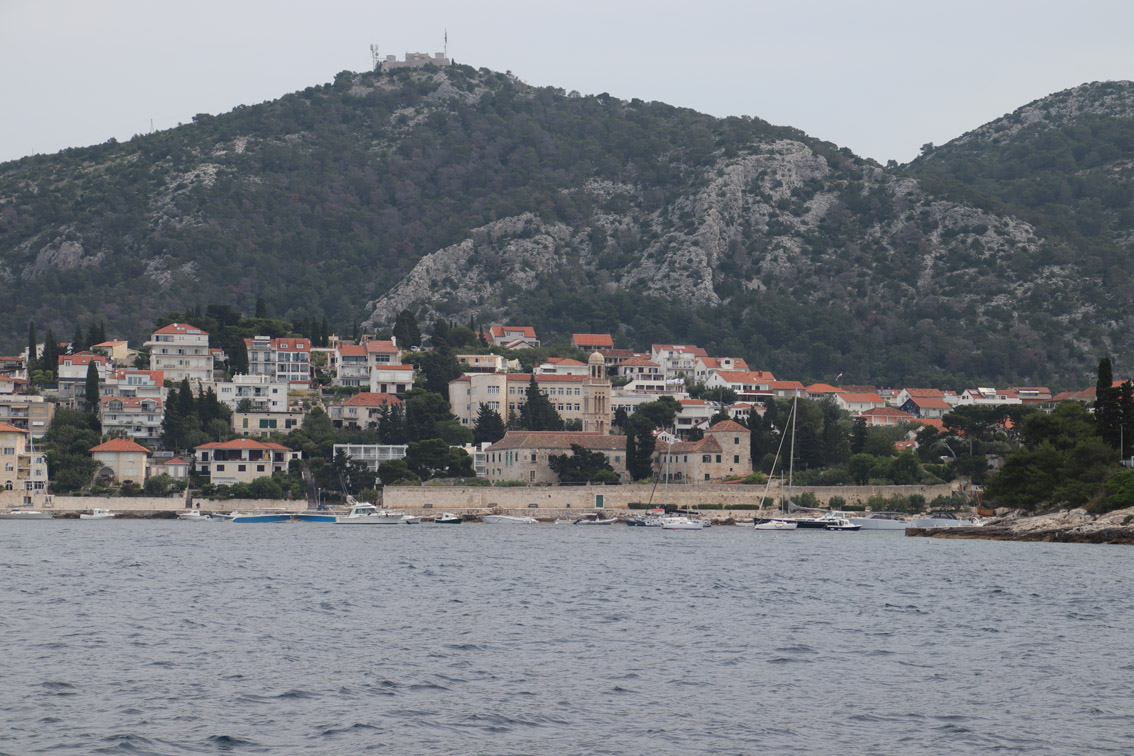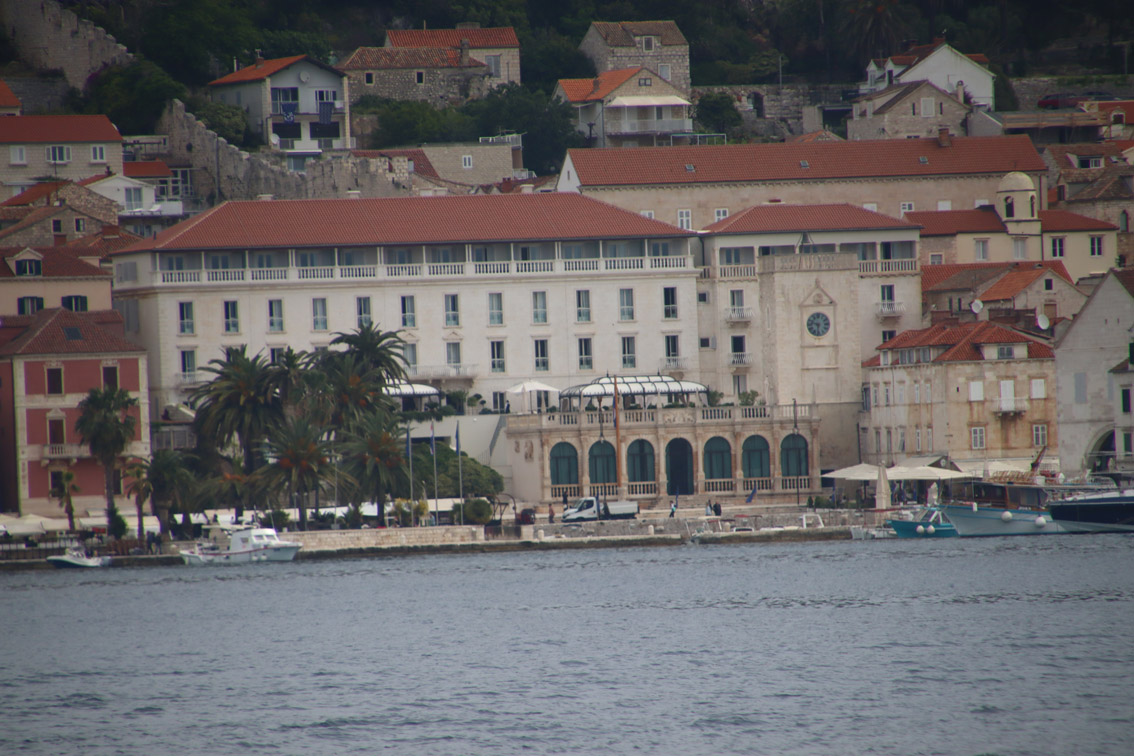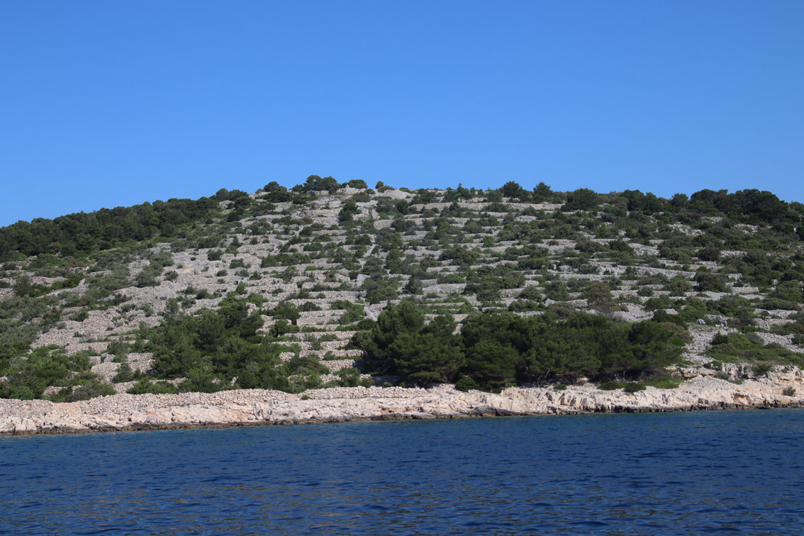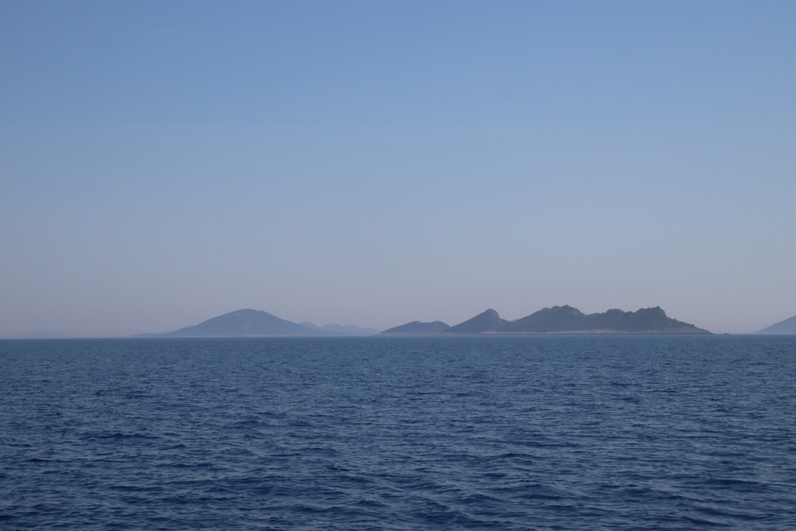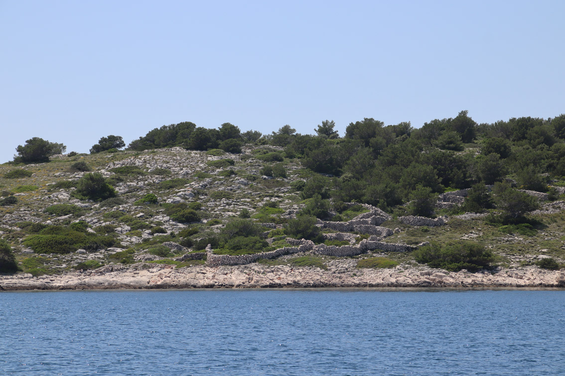 Et ce fut en effet un passage éclair, mer plate, vent d’est 15 à 18 nœuds, c’est à 8 nœuds que nous traversons le canal Kvarner. Nous avons levé l’ancre de Sunfarni à 07:10, à 12:10 nous la mouillons dans l’anse de Paltana (Banjole) en Istrie (quelques km au Sud de Pula. Cette baie aurait pu être très jolie si elle n’avait pas été défigurée par un hôtel en béton aux couleurs criardes d’un côté et d’un lotissement de luxe mais pas plus joli de l’autre. Mais l’abri est bon sauf du plein Ouest et le fond de très bonne tenue.