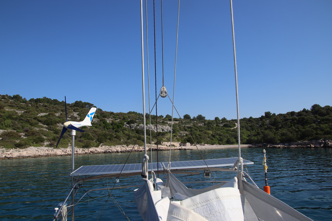 Pourquoi remonter si vite ? La date buttoir pour arriver au bout n’est que le 2 Juin. Certes mais le passage le plus délicat du parcours est la traversée du canal Kvarner. Ce bras de mer qui baigne la côte sur de l’Istrie et donne accès au port Rijeka a assez mauvaise réputation (sans toutefois être aussi dangereux que le canal Velebitski) et peu générer des vents forts. Et c’est justement ce qui est prévu pour ce week-end et le début de la semaine. On préfère donc le passer aussi vite que possible tant que le temps est maniable.
