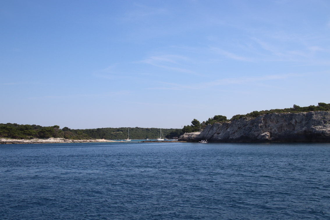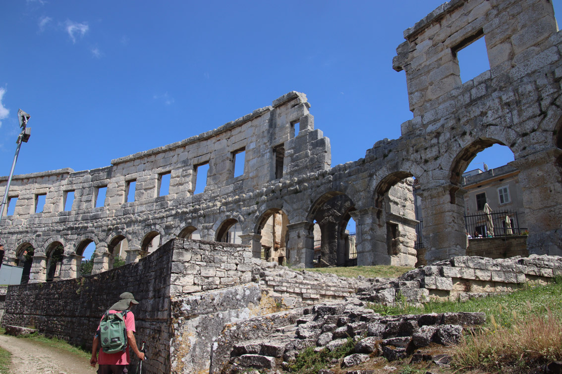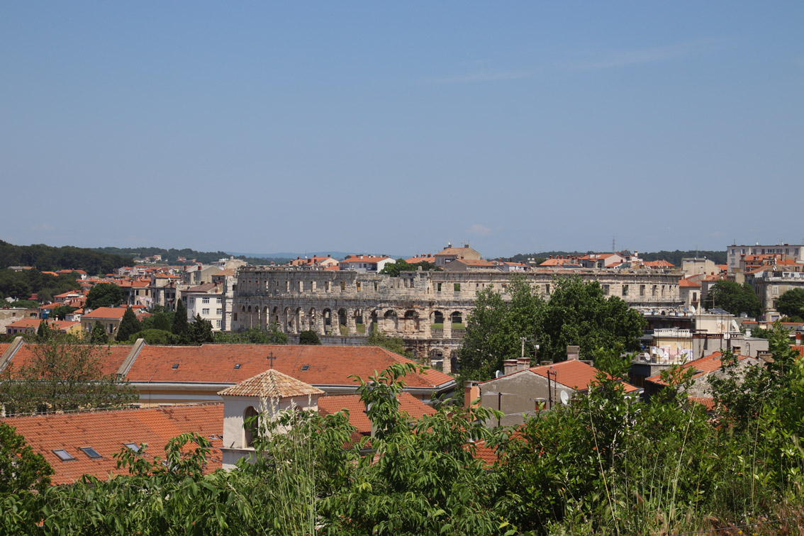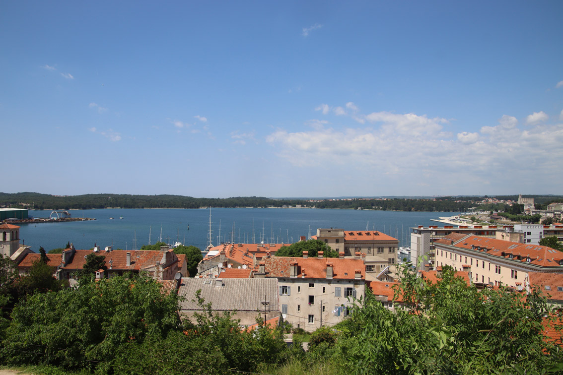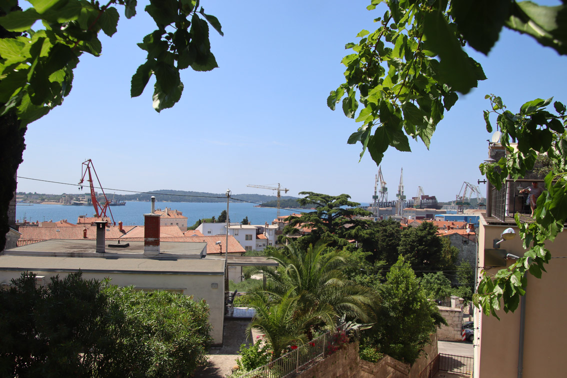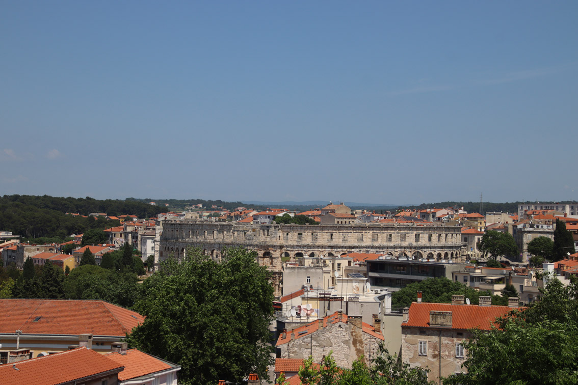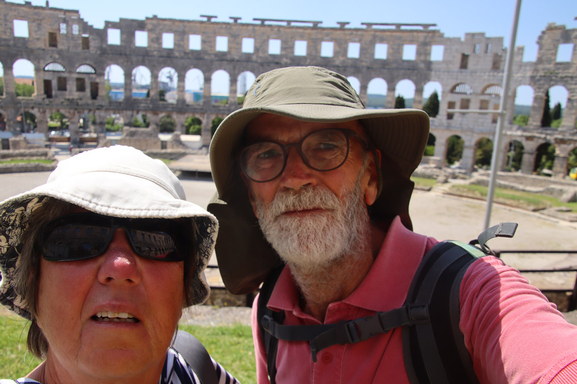 Vendredi matin nous nous déplaçons de quelques milles pour aller ancrer dans la baie de Stoja entourée de plages et de camping et qui a l’énorme avantage d’être à quelques minutes du centre ville de Pula par le bus qui part du font de la baie toutes les 20 minutes.