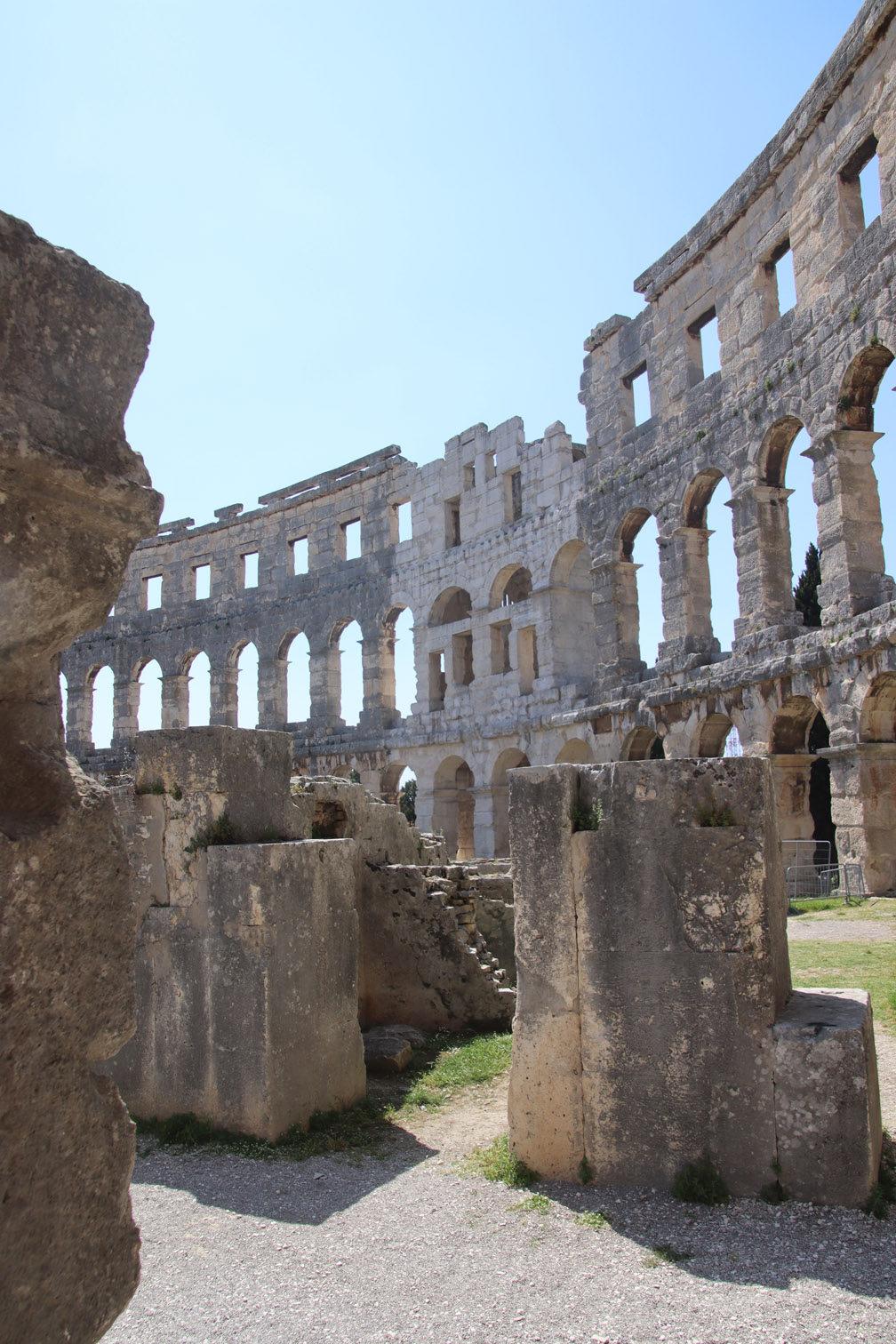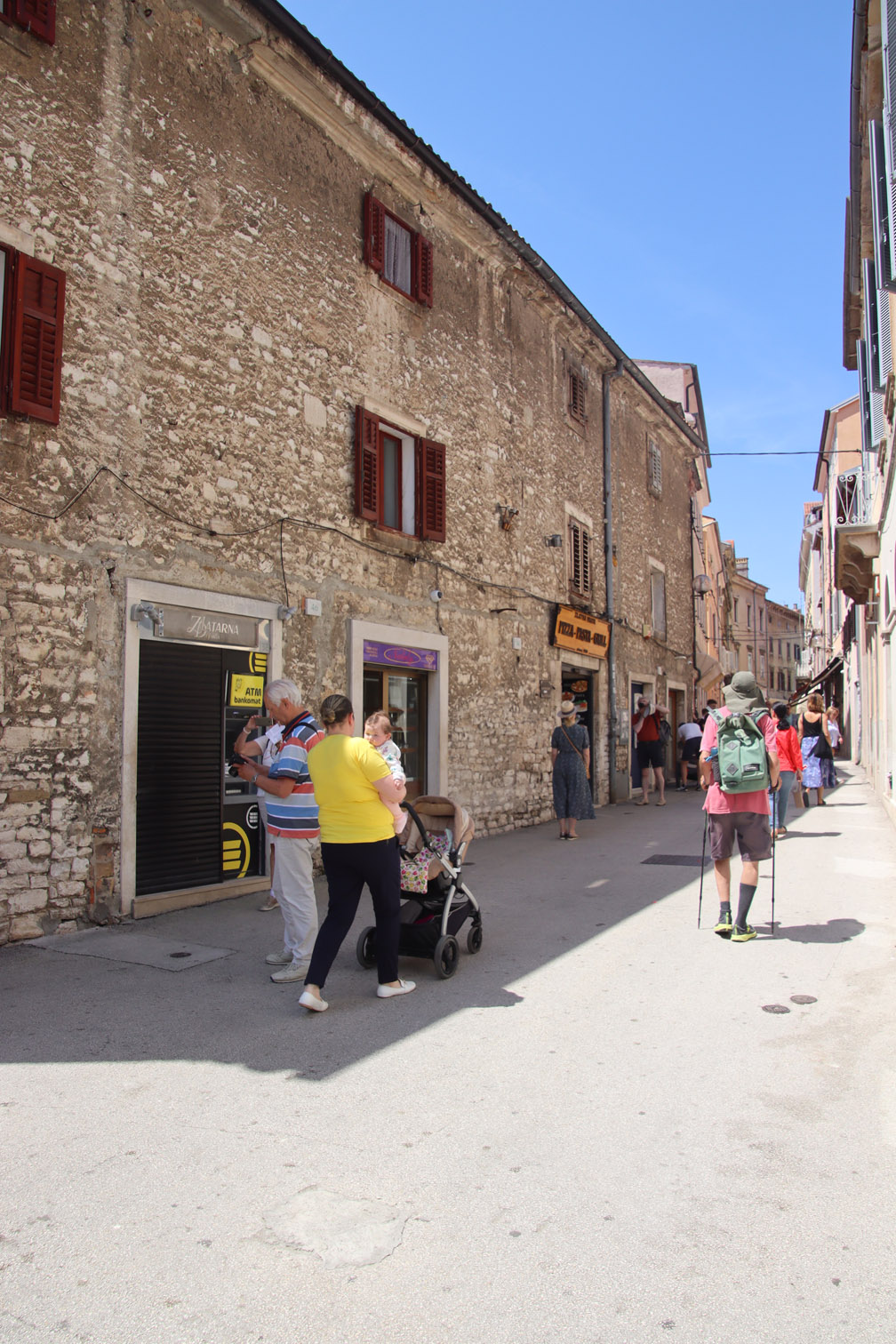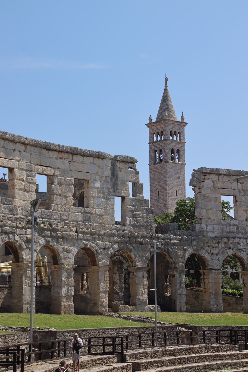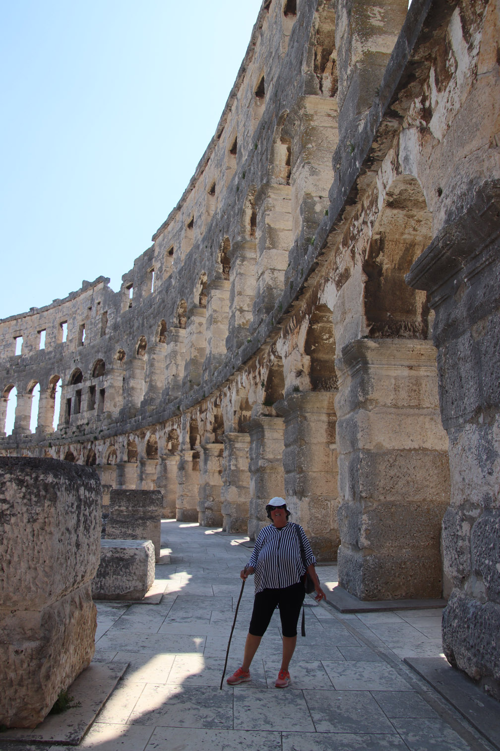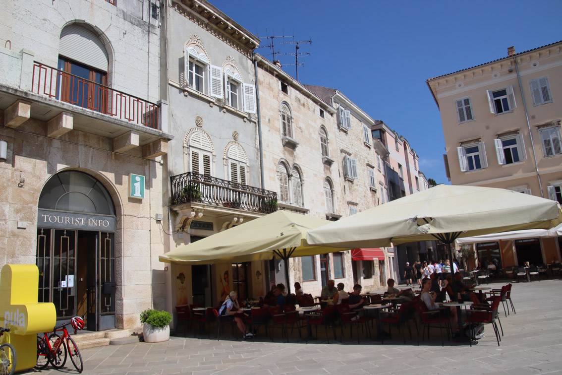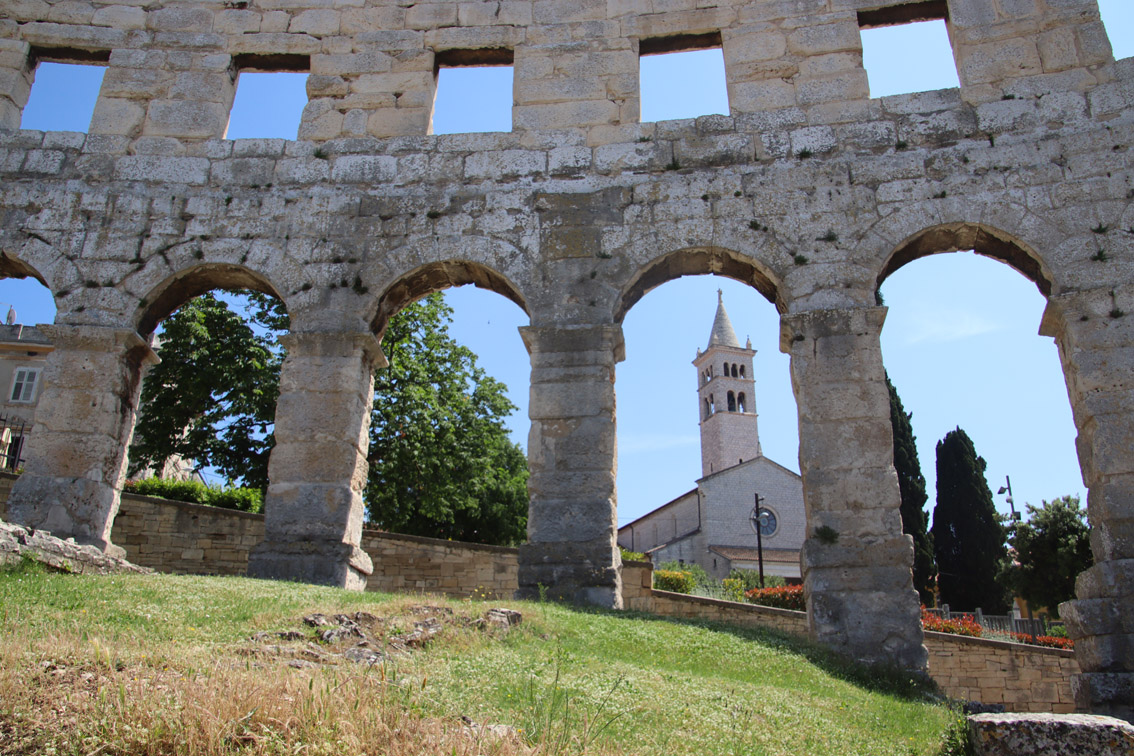Vendredi matin nous nous déplaçons de quelques milles pour aller ancrer dans la baie de Stoja entourée de plages et de camping et qui a l’énorme avantage d’être à quelques minutes du centre ville de Pula par le bus qui part du font de la baie toutes les 20 minutes.