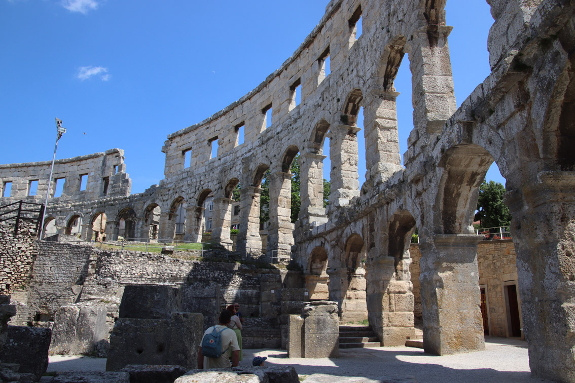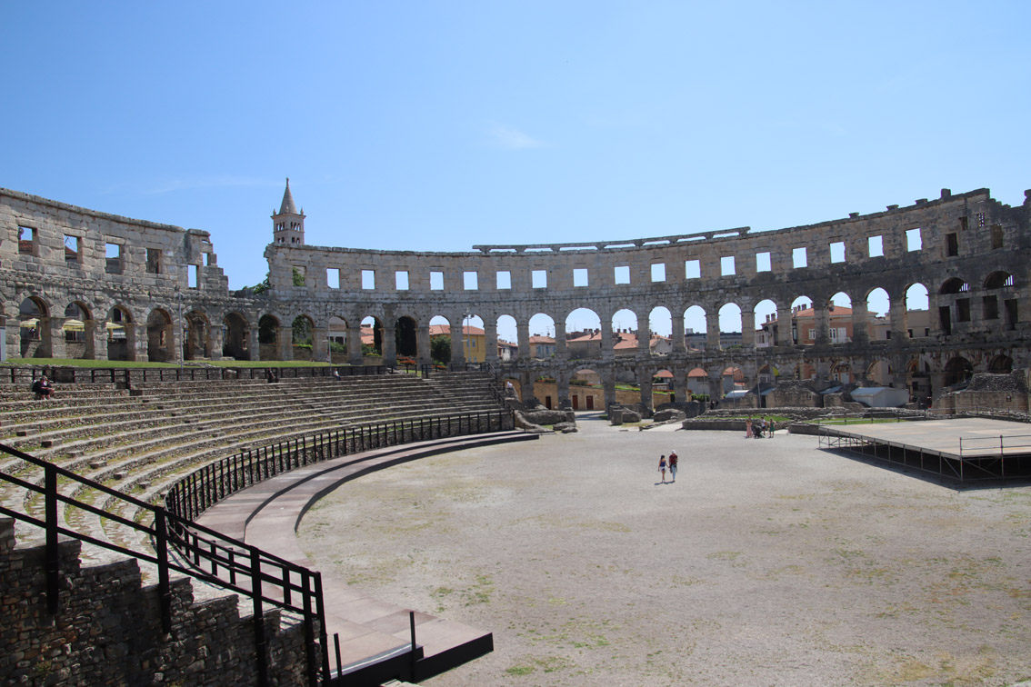 Ceux-ci firent de la ville la plaque tournante pour l’approvisionnement de l’empire en vin et en huile, développant du même coup l’agriculture de la région ainsi que l’industrialisation (déjà à cette époque) de la production d’huile et la fabrication des amphores. Ce sont eux qui construisirent les fameuses arènes et le temple d’Auguste au début de notre ère. La seconde phase de prospérité commença en 1150 quand Pula fit allégeance à la République de Venise. C’est aux Vénitiens que l’on doit la citadelle et l’architecture de la vieille ville qu’elle surplombe.