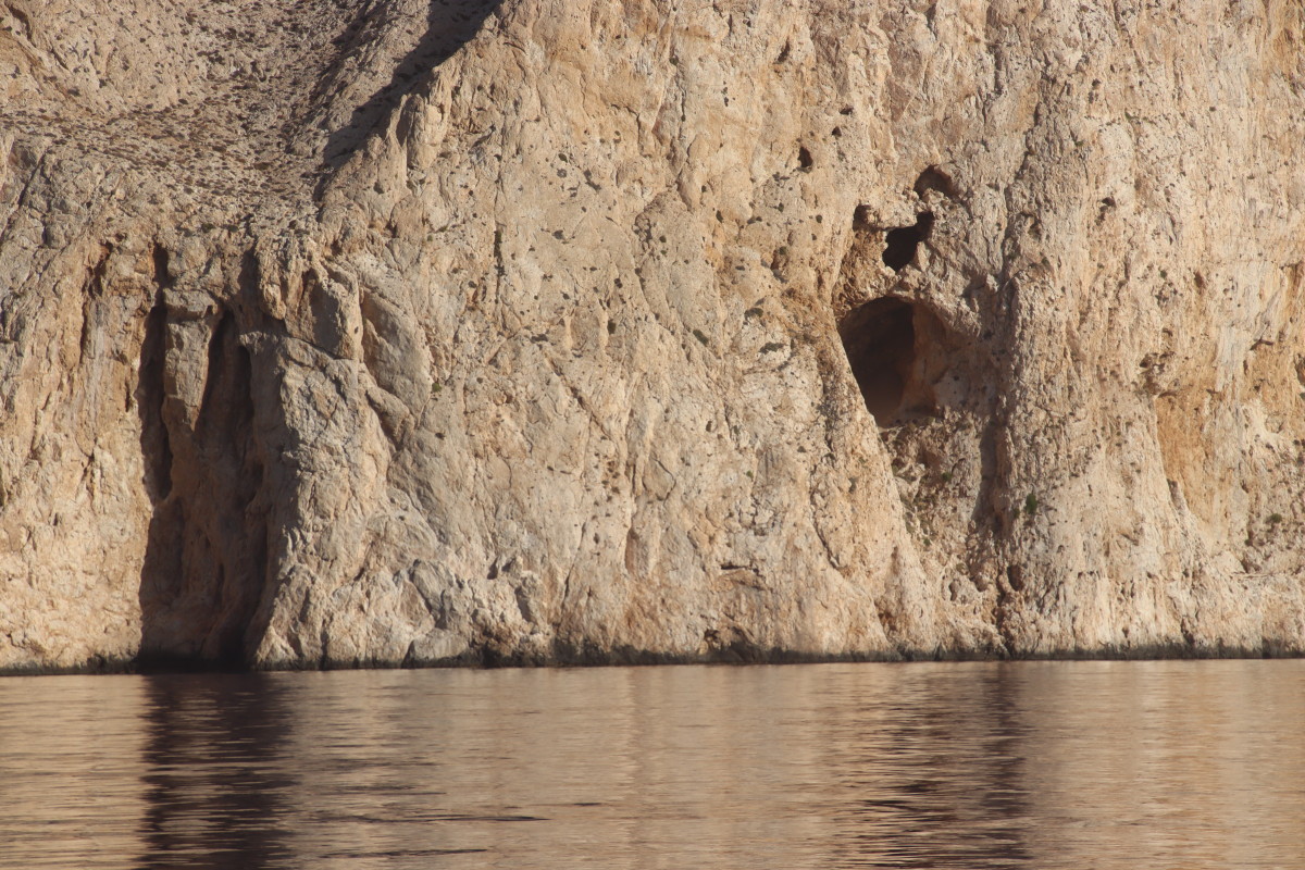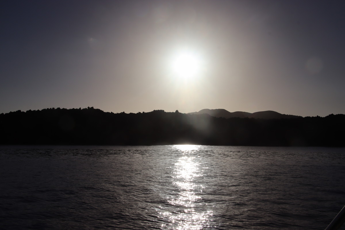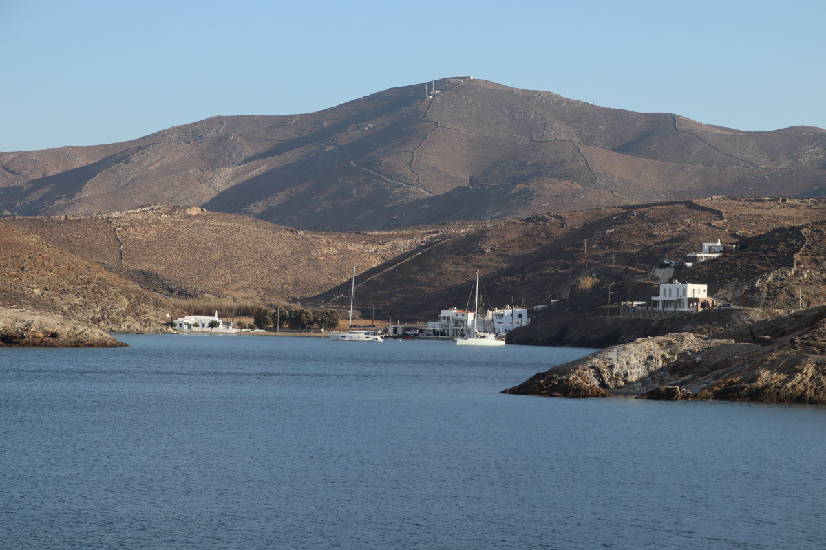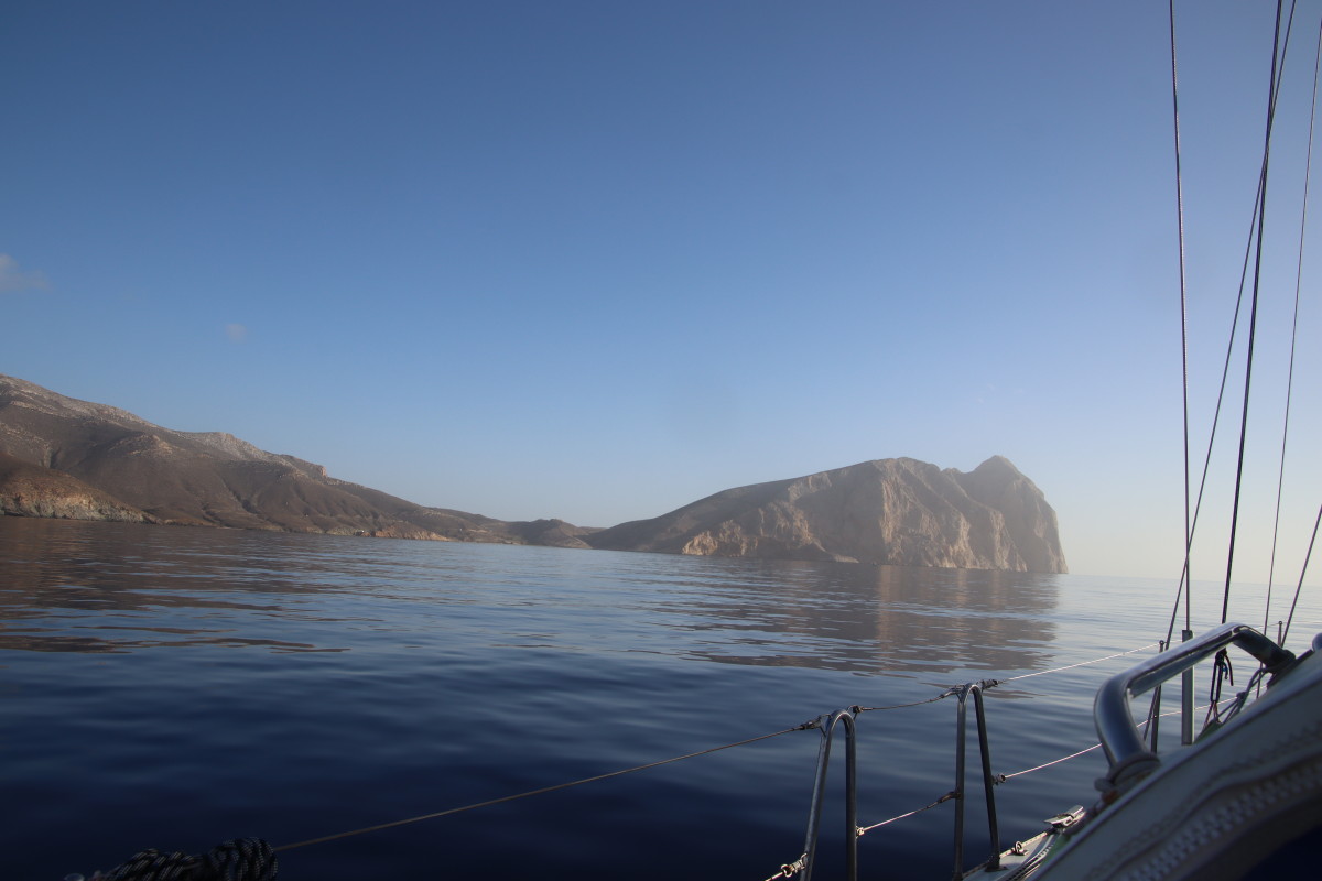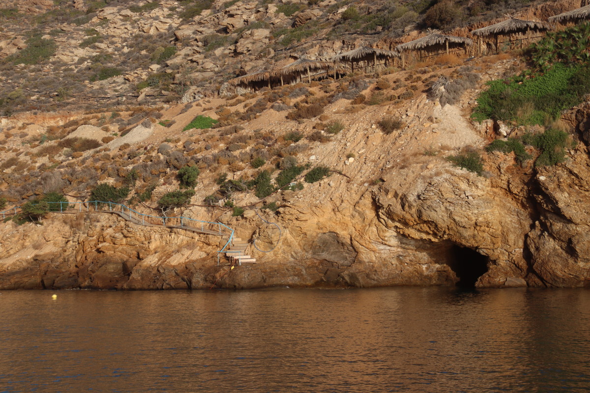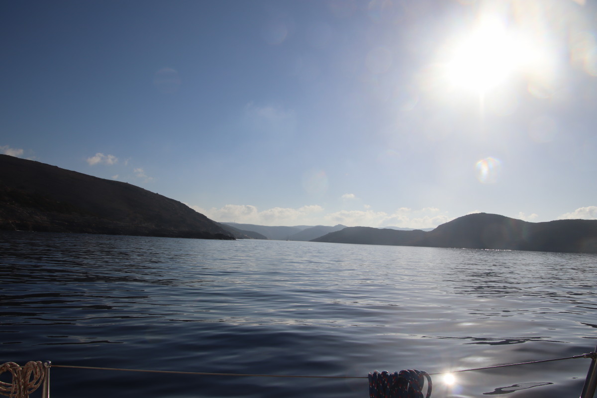 Vendredi on continue notre programme d’entretien sur le bateau vidange moteur pour Domi, nettoyage, rangement et ponçage de l’hélice pour moi . Dans l’après midi on part pour un nouveau raid d’exploration de l’île. Notre objectif : le coucher du soleil à la pointe Lakki en faisant le tour de la péninsule par le nord. On commence par rendre visite à Saint Isidore (Agios Isidorus) dont la petite chapelle à été consstruite sur un rocher relié au rivage par une petite digue d’un mètre de large et surplombant le niveau de la mer de seulement quelques cm. Puis on fait le tour de la baie et c’est là que le mot raid commence à prendre tout son sens: à peine passé le hameau de Drymon la route sinueuse et très étroite mais goudronnée, fait place à une piste de graviers qui devient de plus en plus difficile avec des ornières profondes et des pentes très raides. Mais difficile de faire demi-tour, surtout que le paysage est vraiment superbe. Notre petite citadine Coréenne se défend vaillamment et surmonte tous les obstacle sans faillir même si les derniers mètres avant de rejoindre l’asphalte sont un peu tirés par les cheveux. (et c’est là qu’on a lu les commentaires de Google maps : piste à n’emprunter qu’à pied ou avec un très bon 4X4. Malheureusement on a eu un problème de réglage d’exposition sur l’appareil et on a pu récupérer seulement quelques photos…