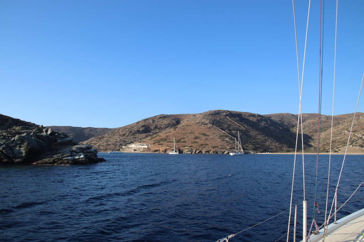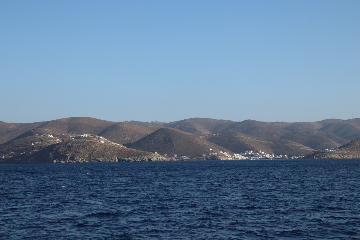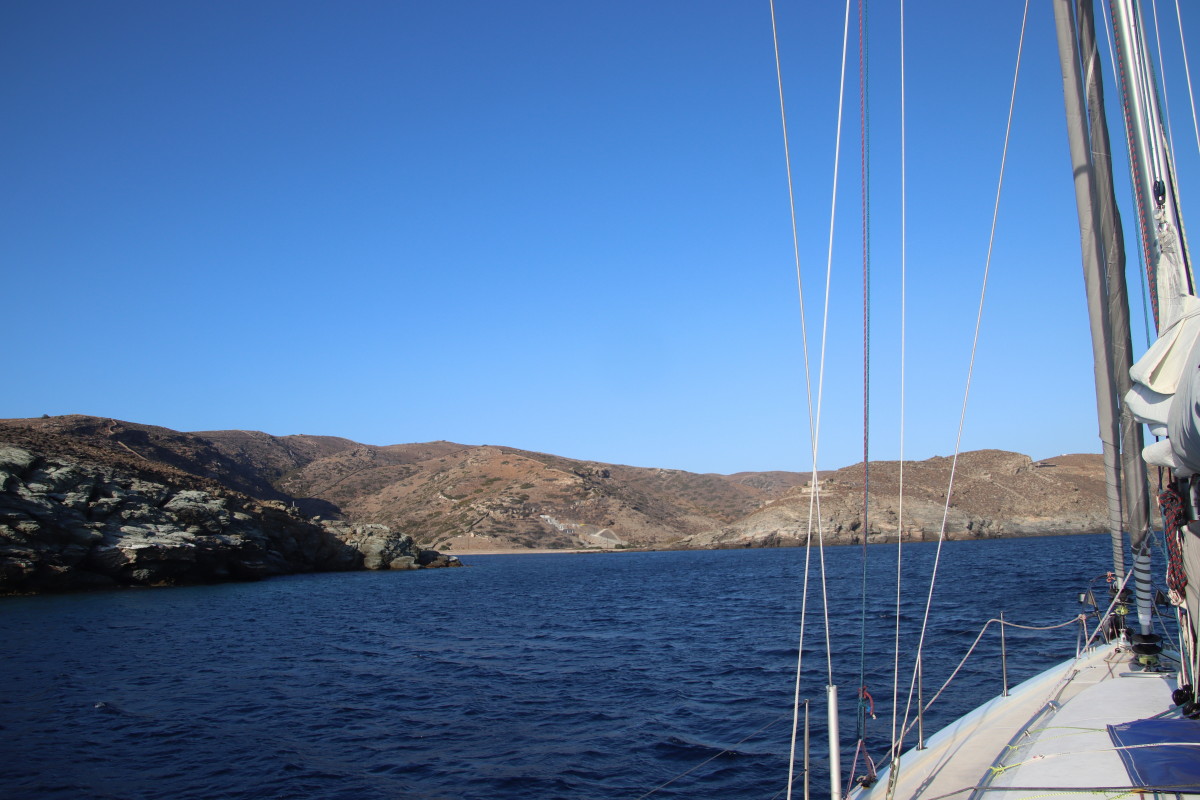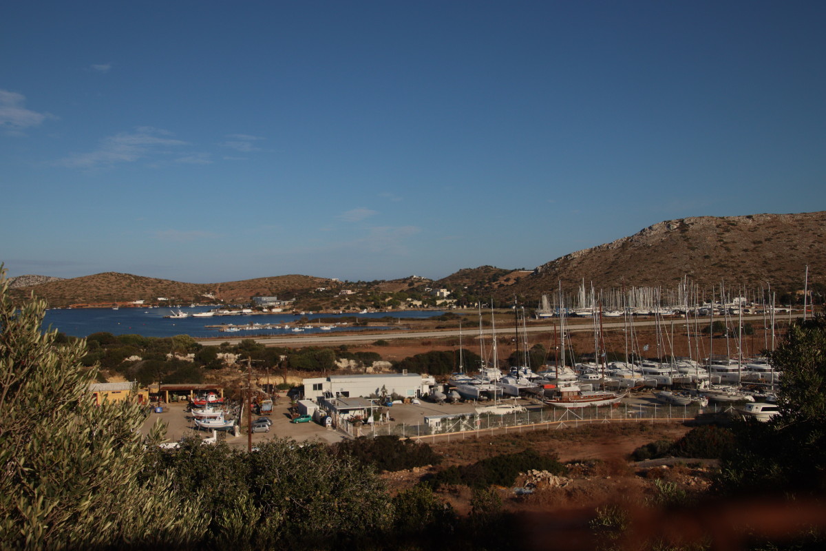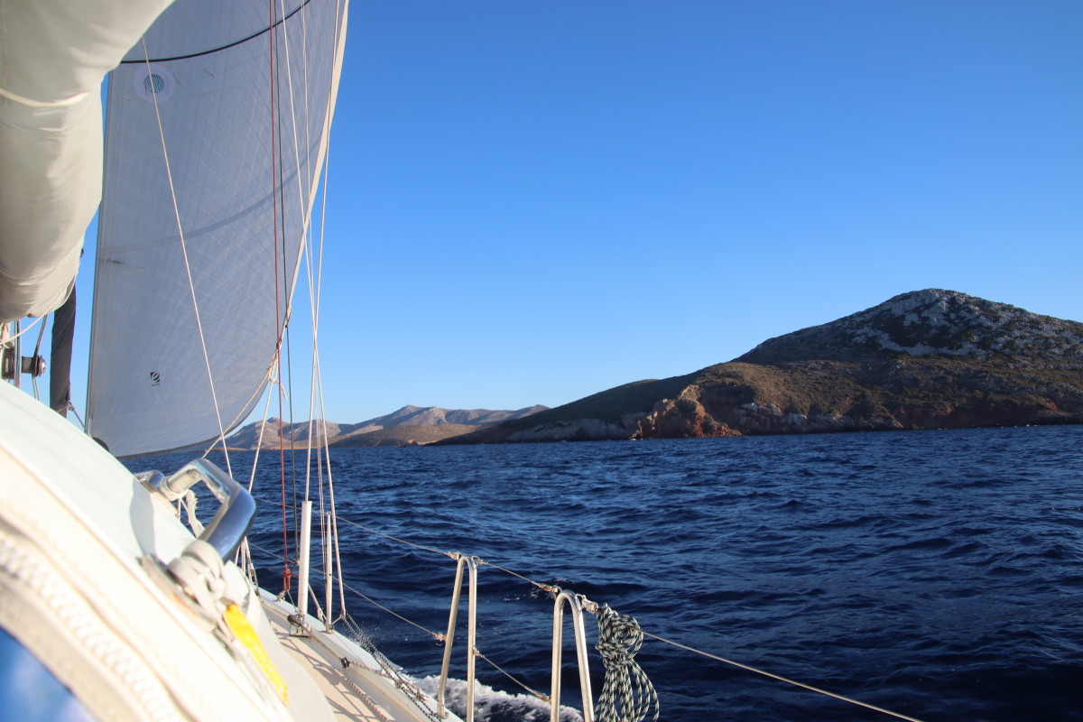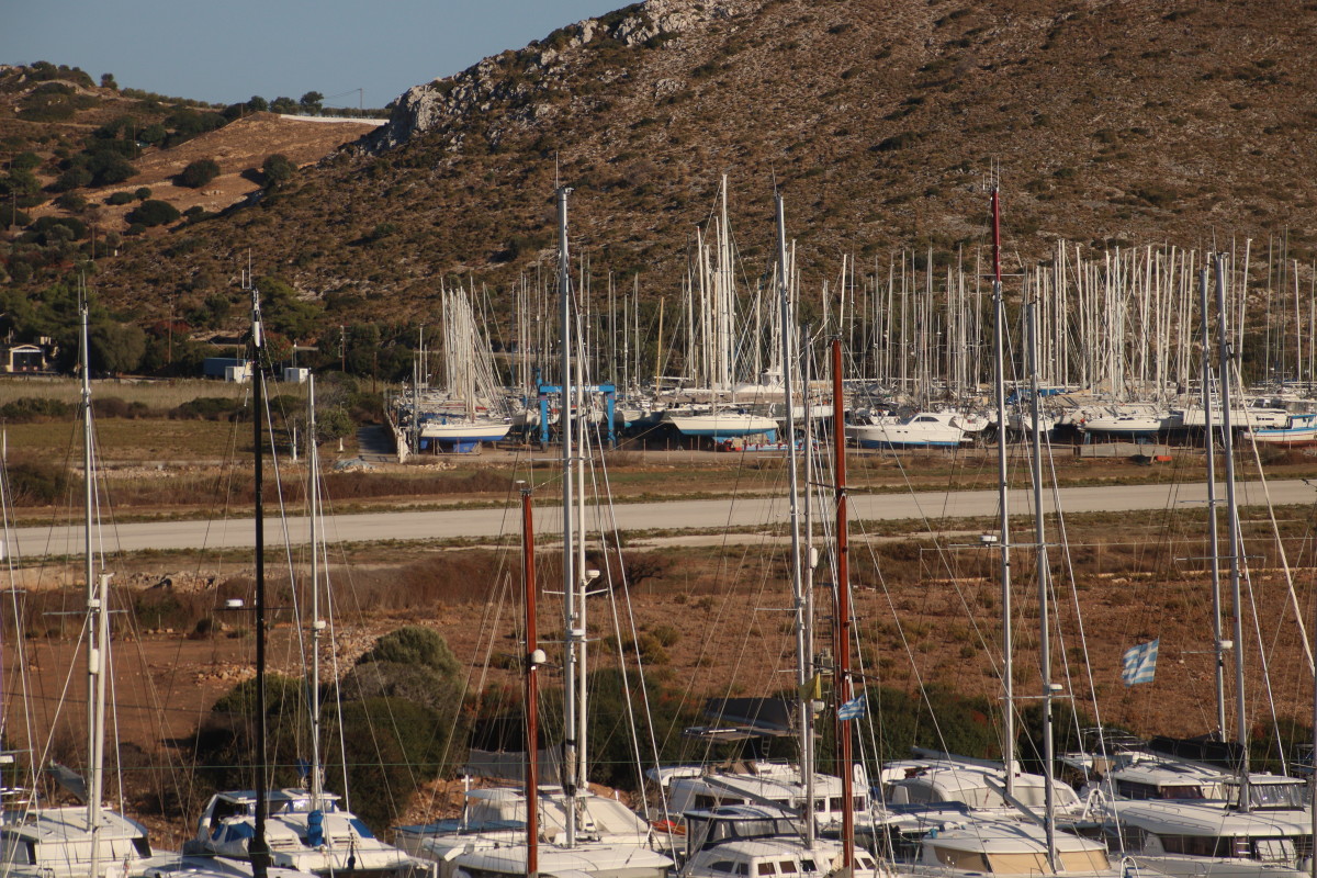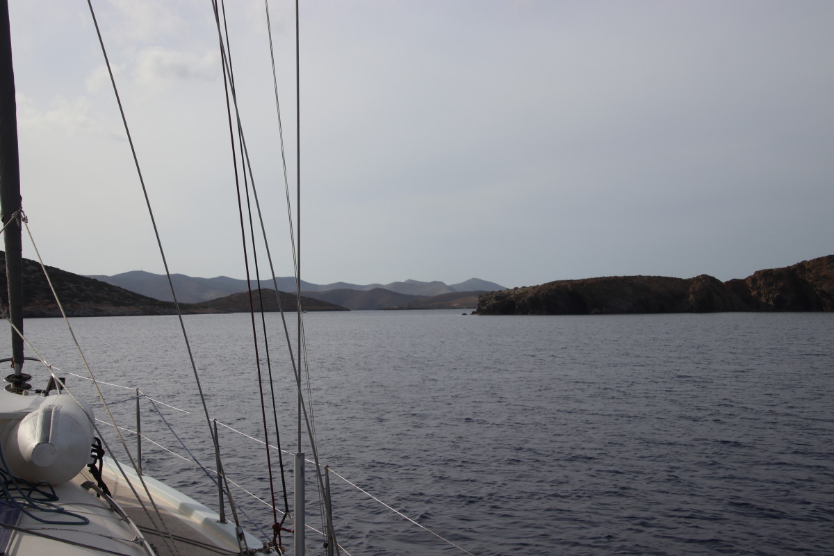 Vendredi on continue notre programme d’entretien sur le bateau vidange moteur pour Domi, nettoyage, rangement et ponçage de l’hélice pour moi . Dans l’après midi on part pour un nouveau raid d’exploration de l’île. Notre objectif : le coucher du soleil à la pointe Lakki en faisant le tour de la péninsule par le nord. On commence par rendre visite à Saint Isidore (Agios Isidorus) dont la petite chapelle à été consstruite sur un rocher relié au rivage par une petite digue d’un mètre de large et surplombant le niveau de la mer de seulement quelques cm. Puis on fait le tour de la baie et c’est là que le mot raid commence à prendre tout son sens: à peine passé le hameau de Drymon la route sinueuse et très étroite mais goudronnée, fait place à une piste de graviers qui devient de plus en plus difficile avec des ornières profondes et des pentes très raides. Mais difficile de faire demi-tour, surtout que le paysage est vraiment superbe. Notre petite citadine Coréenne se défend vaillamment et surmonte tous les obstacle sans faillir même si les derniers mètres avant de rejoindre l’asphalte sont un peu tirés par les cheveux. (et c’est là qu’on a lu les commentaires de Google maps : piste à n’emprunter qu’à pied ou avec un très bon 4X4. Malheureusement on a eu un problème de réglage d’exposition sur l’appareil et on a pu récupérer seulement quelques photos…