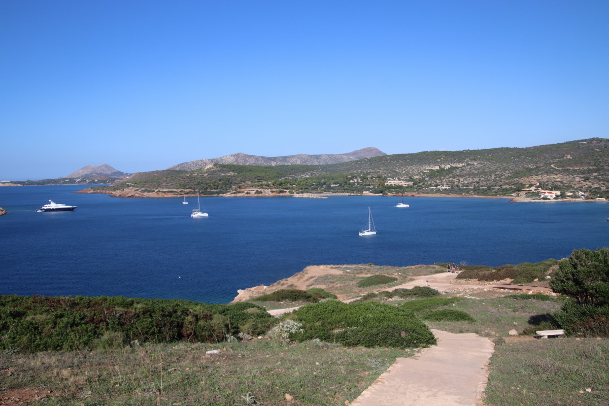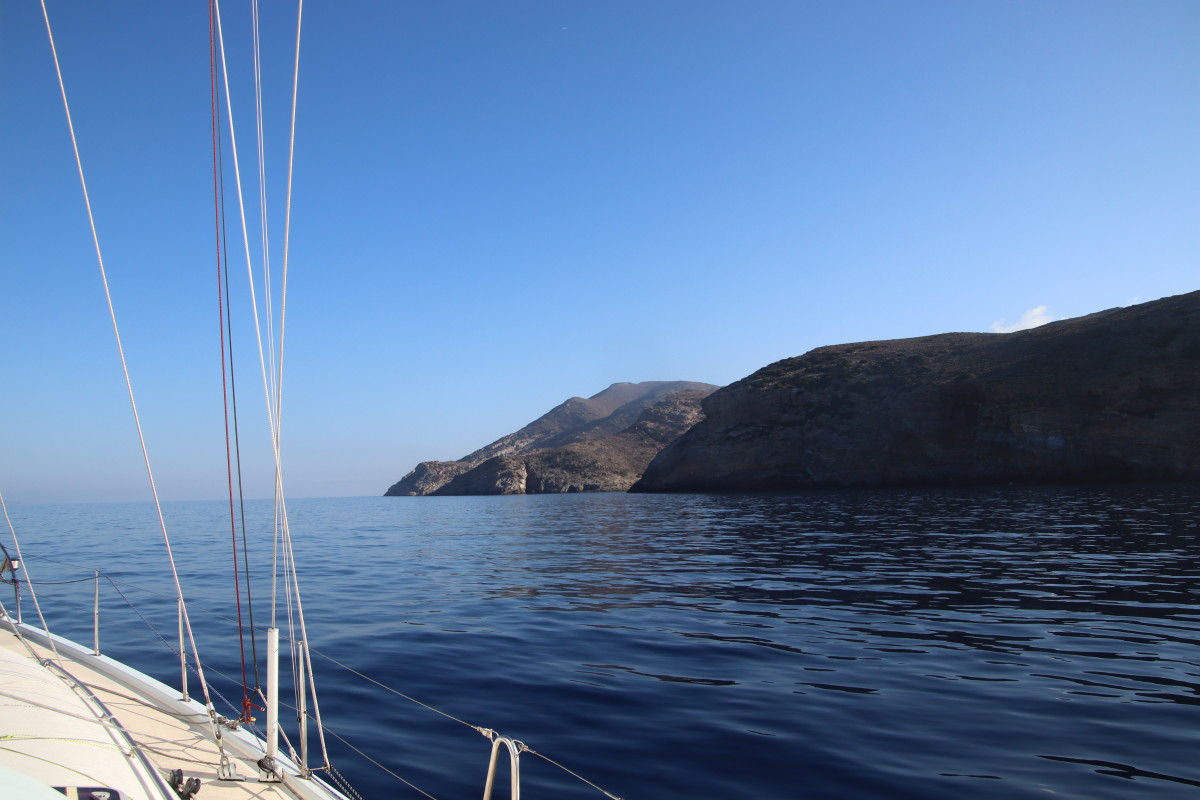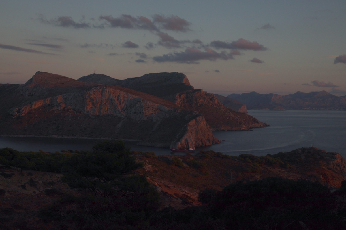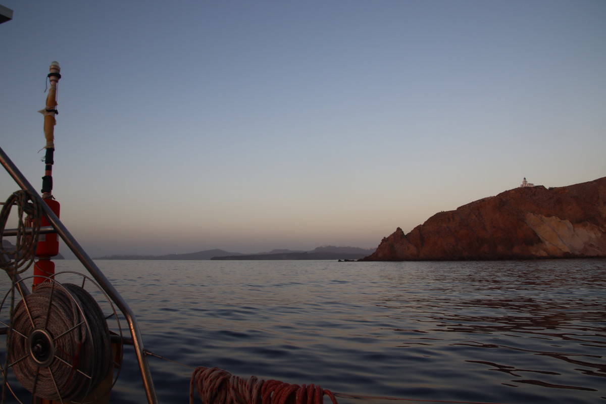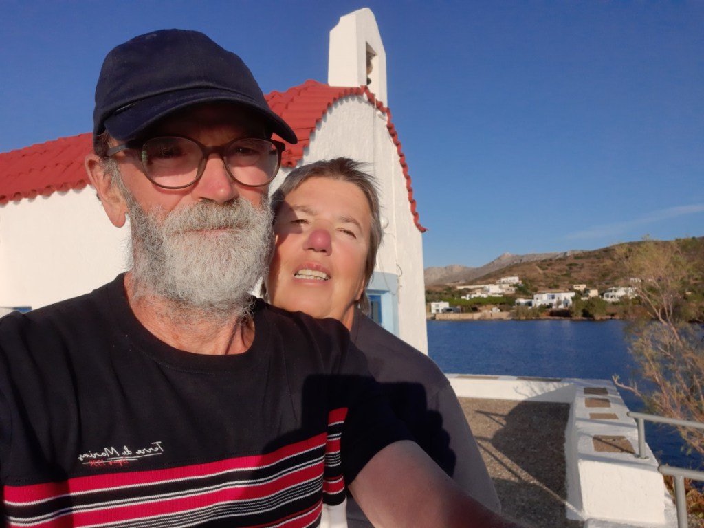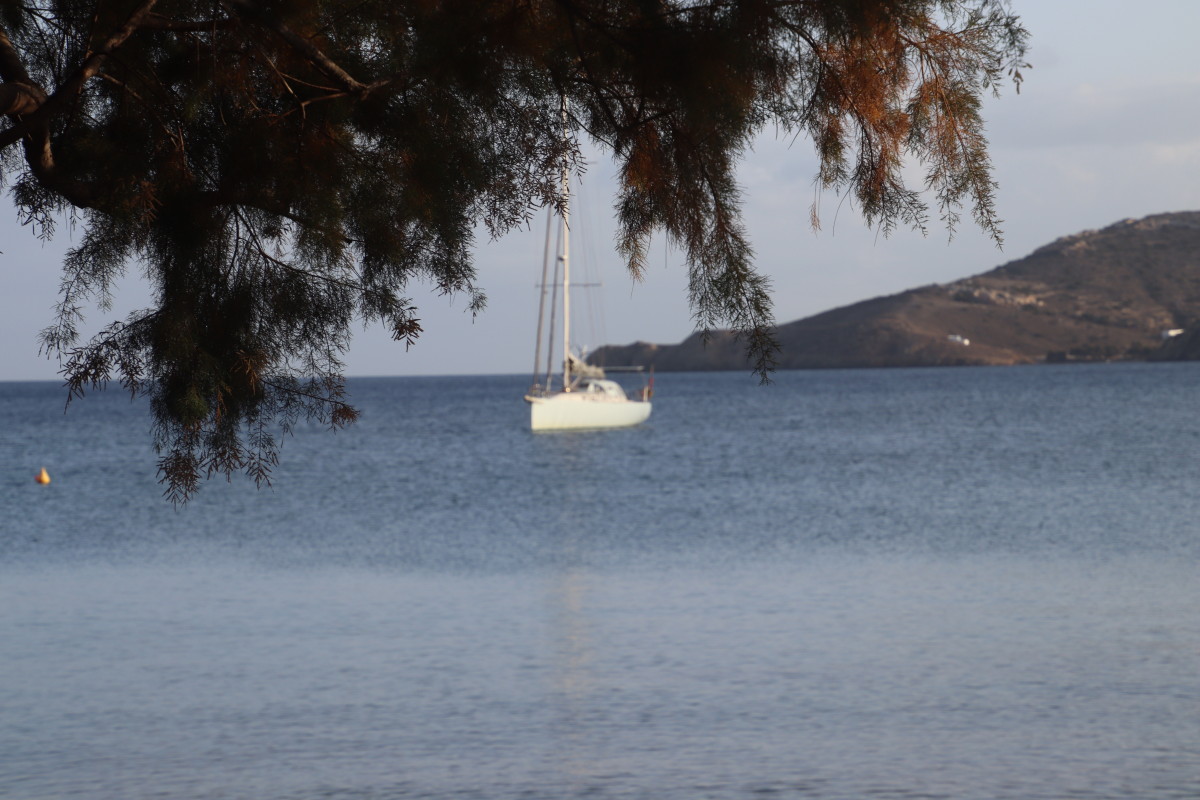 Vendredi on continue notre programme d’entretien sur le bateau vidange moteur pour Domi, nettoyage, rangement et ponçage de l’hélice pour moi . Dans l’après midi on part pour un nouveau raid d’exploration de l’île. Notre objectif : le coucher du soleil à la pointe Lakki en faisant le tour de la péninsule par le nord. On commence par rendre visite à Saint Isidore (Agios Isidorus) dont la petite chapelle à été consstruite sur un rocher relié au rivage par une petite digue d’un mètre de large et surplombant le niveau de la mer de seulement quelques cm. Puis on fait le tour de la baie et c’est là que le mot raid commence à prendre tout son sens: à peine passé le hameau de Drymon la route sinueuse et très étroite mais goudronnée, fait place à une piste de graviers qui devient de plus en plus difficile avec des ornières profondes et des pentes très raides. Mais difficile de faire demi-tour, surtout que le paysage est vraiment superbe. Notre petite citadine Coréenne se défend vaillamment et surmonte tous les obstacle sans faillir même si les derniers mètres avant de rejoindre l’asphalte sont un peu tirés par les cheveux. (et c’est là qu’on a lu les commentaires de Google maps : piste à n’emprunter qu’à pied ou avec un très bon 4X4. Malheureusement on a eu un problème de réglage d’exposition sur l’appareil et on a pu récupérer seulement quelques photos…